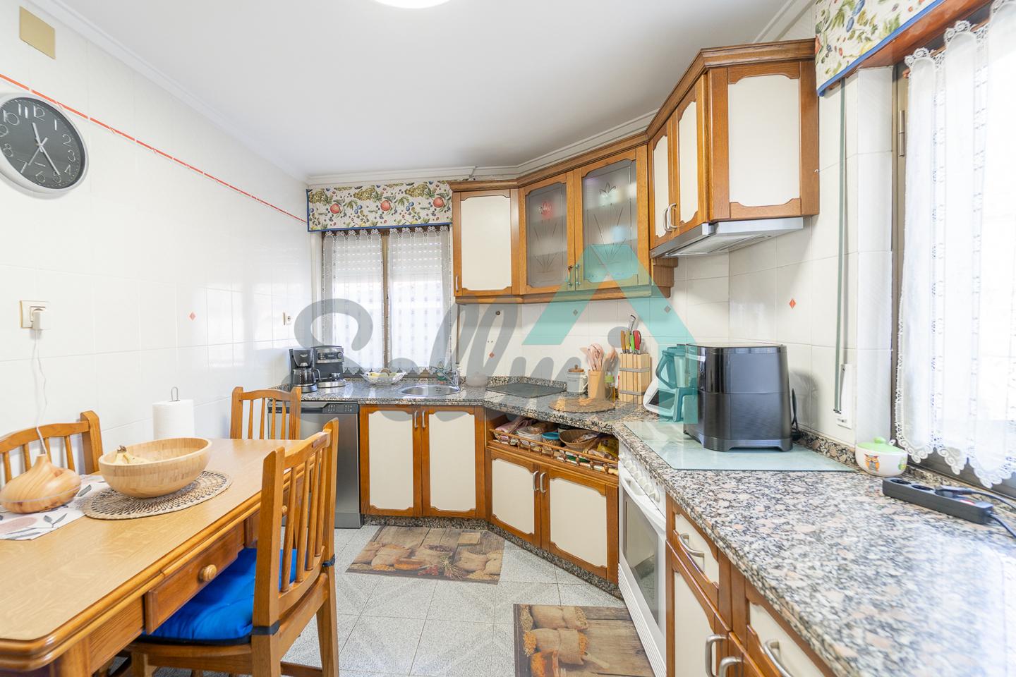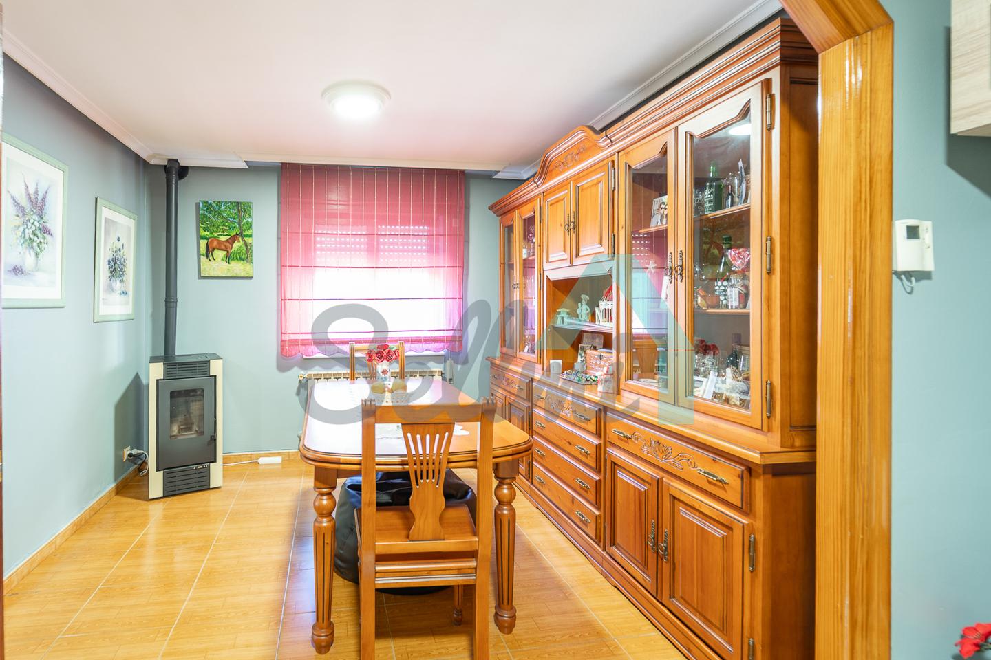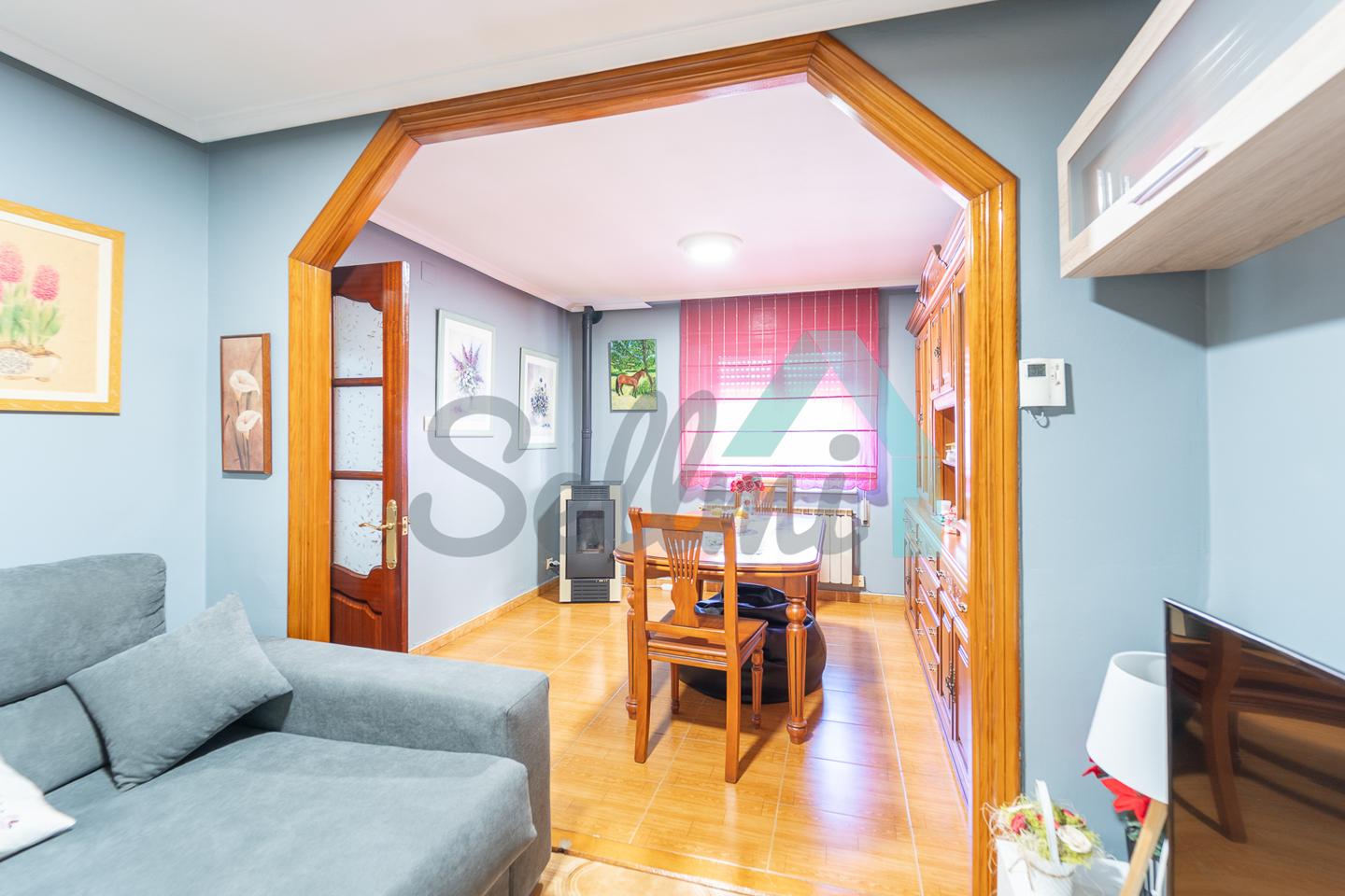 Dispone de suelos de tarima y gres, ventanas de aluminio con doble acristalamiento, calefacción individual de gasoil, etc.