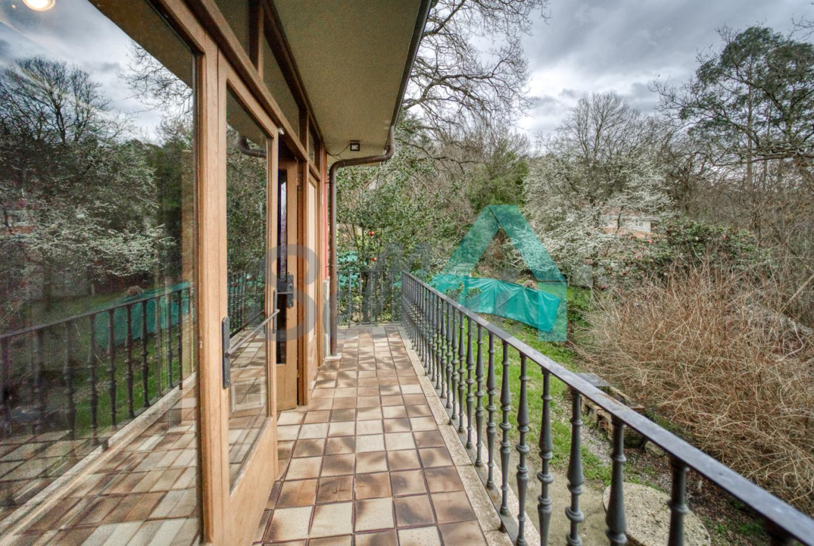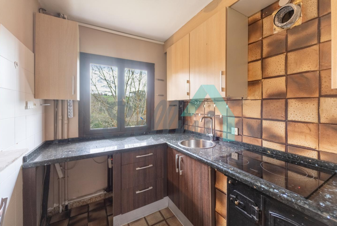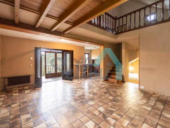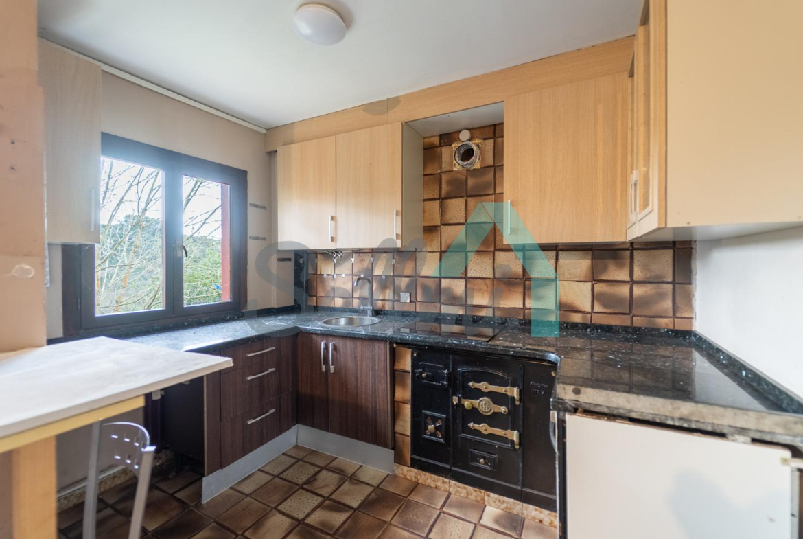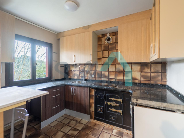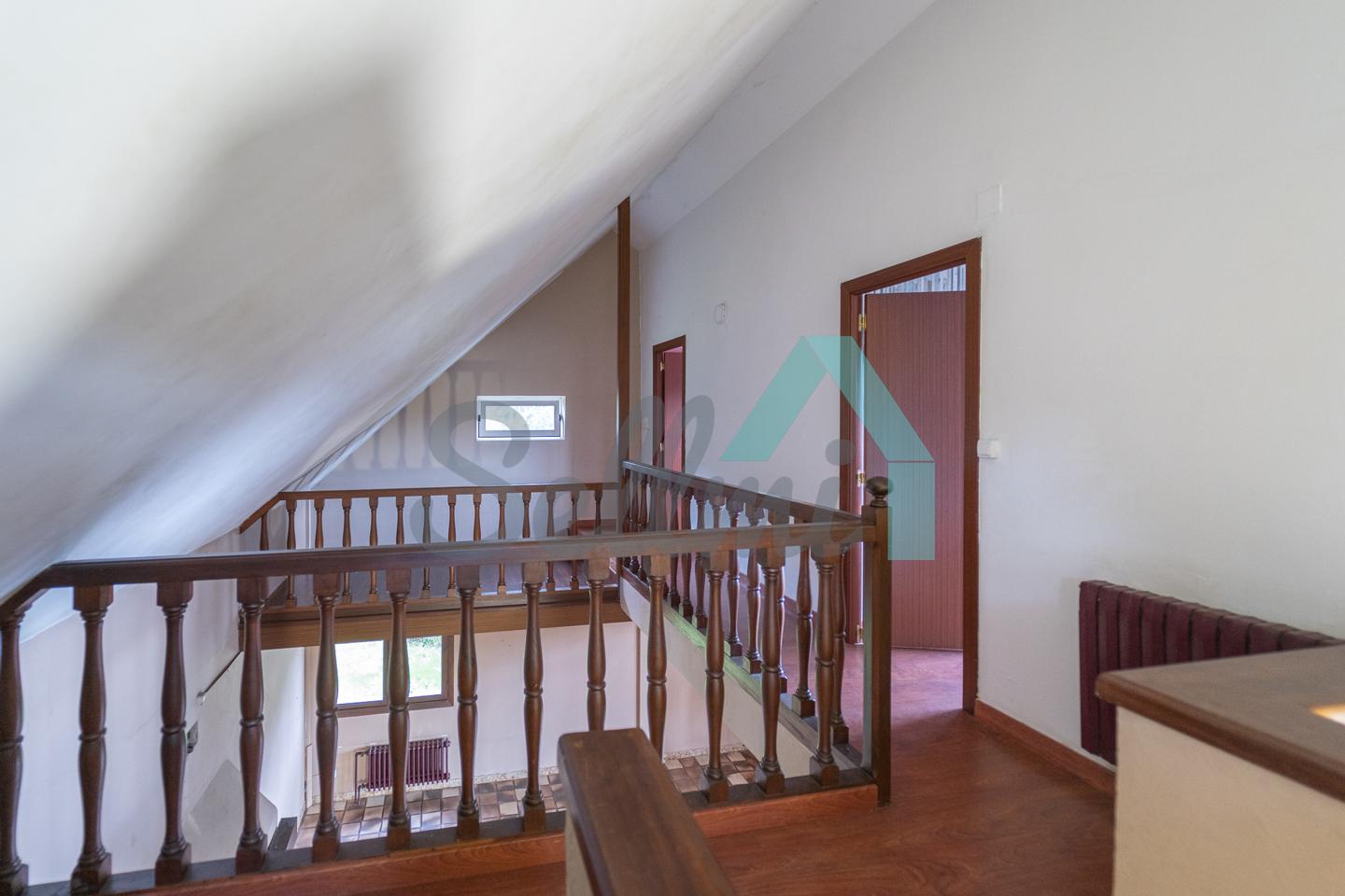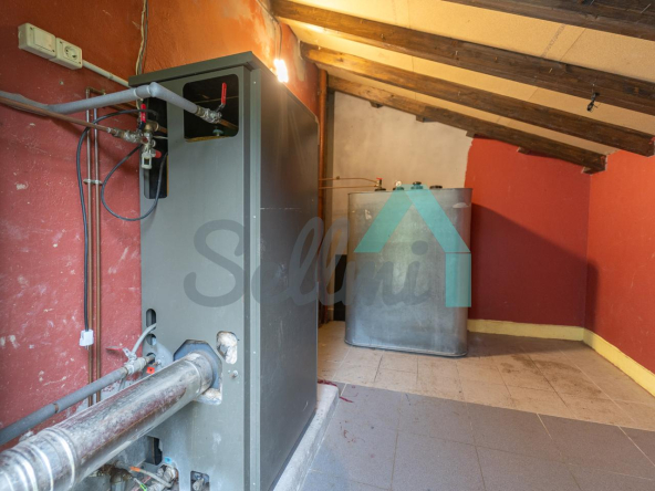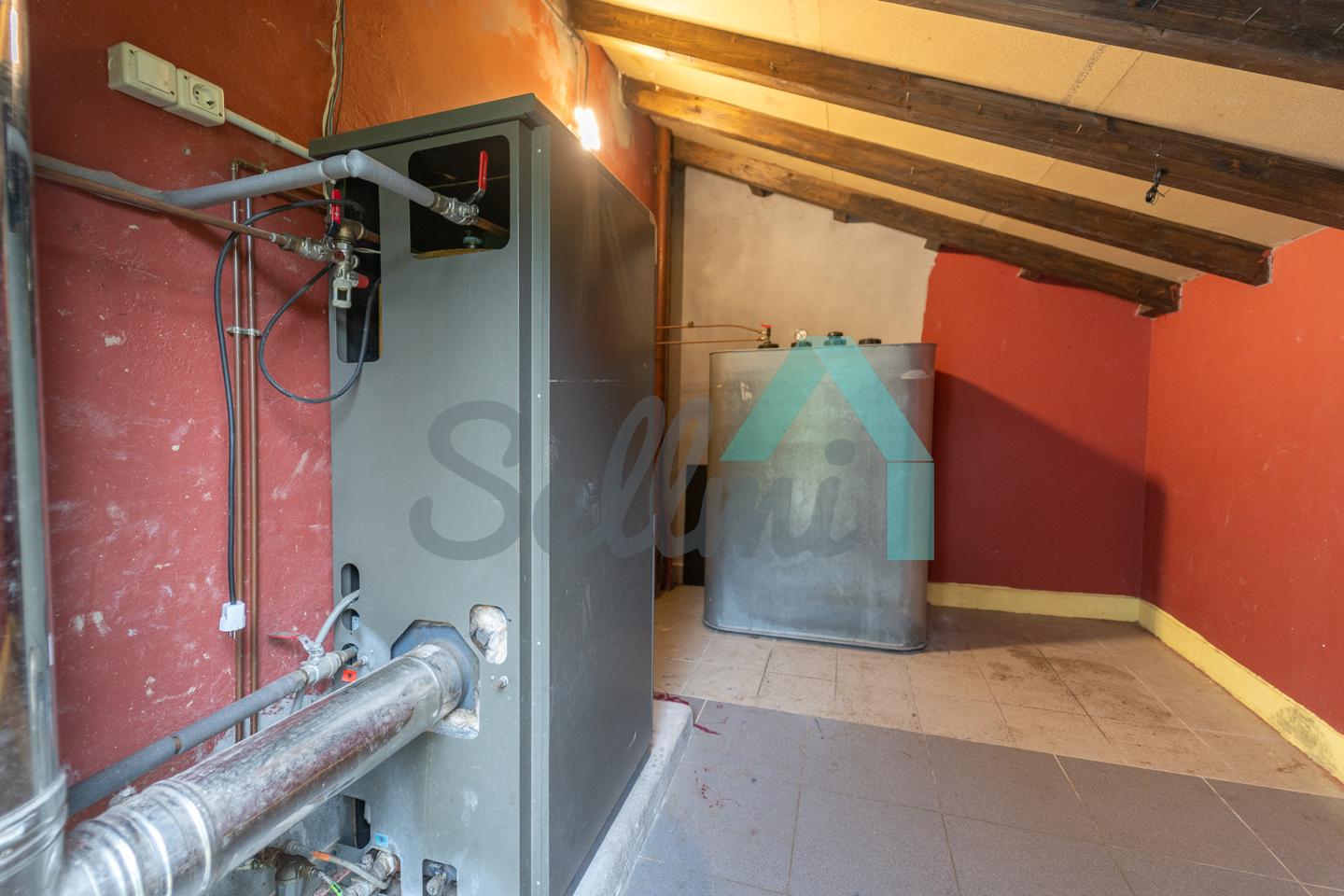 Dispone de suelos de parqué y gres, ventanas de madera y de aluminio con doble acristalamiento, calefacción individual de gasoil (caldera nueva), alarma, etc. El tejado se cambió en el año 2020.