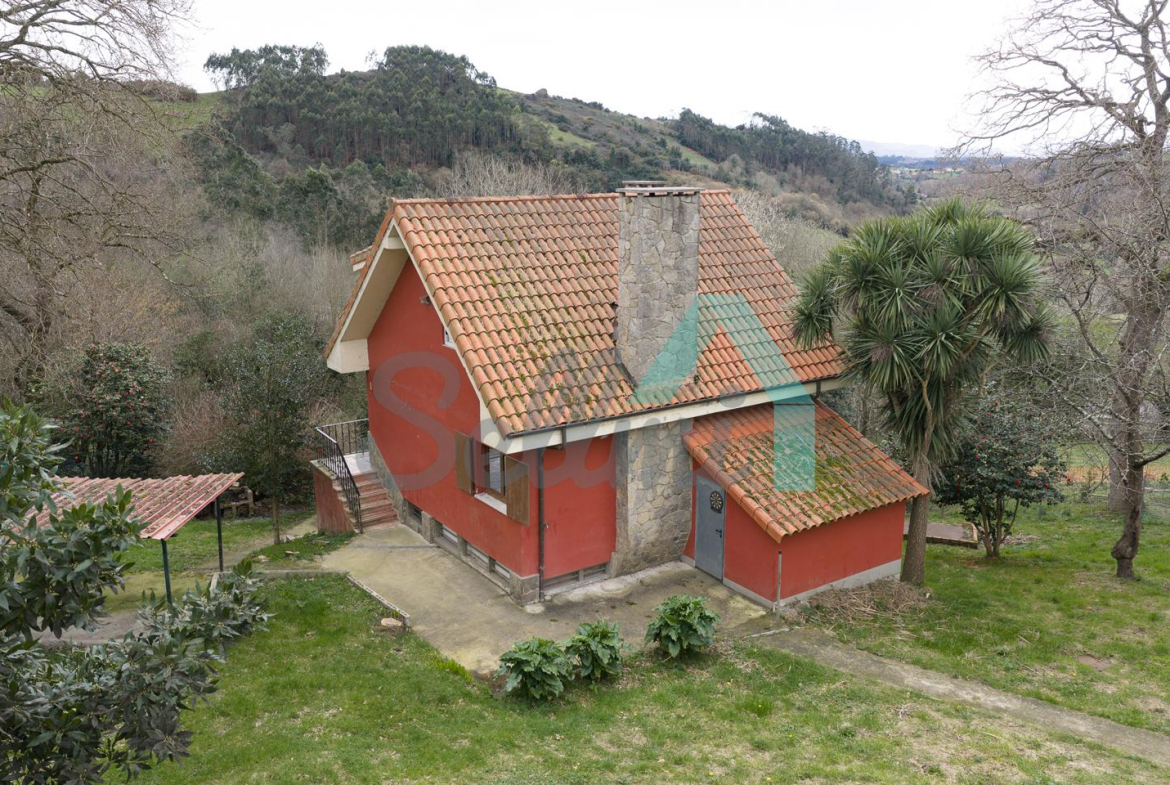 Chalet independiente en venta situada en Noreña. Se ubica sobre una parcela de 1.100 m2, totalmente cerrada y que cuenta con portón automático, acceso asfaltado, amplia zona ajardinada y árboles frutales.