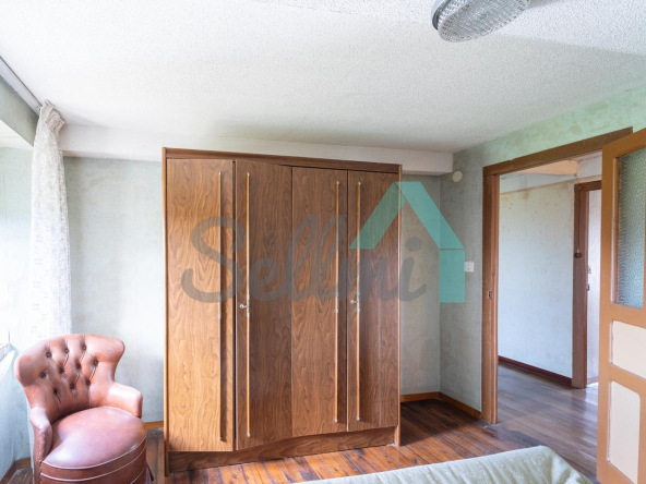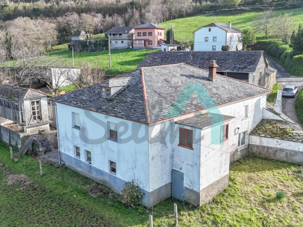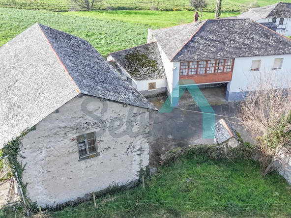 La vivienda, construida en piedra, con tejado de pizarra y vigas de castaño, tiene una superficie de 235 m2 distribuidos en dos plantas más bajo cubierta.