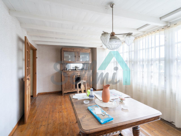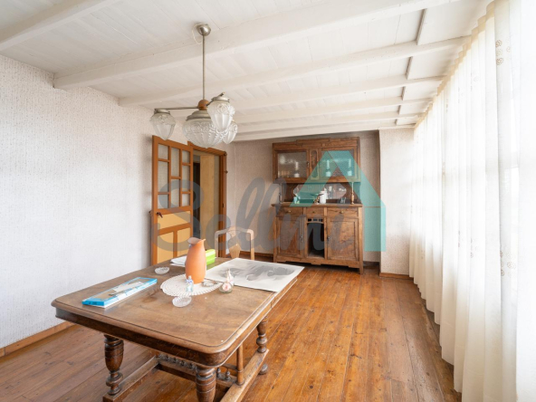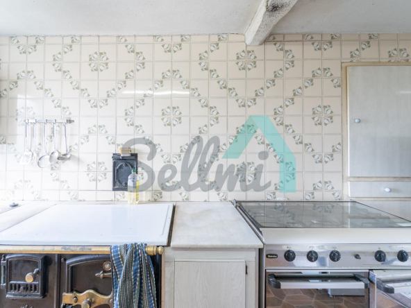 En la planta baja está la cocina, que da acceso por una parte a la cuadra y por otra parte a un adosado destinado a la elaboración de pan, con un horno antiguo de piedra. La cocina tiene suelos de gres, pared de azulejo y una ventana grande de aluminio. También tiene una cocina de carbón funcionando y el calentador de agua y los fuegos funcionan con gas butano. La zona donde está el horno del pan tiene suelo de hormigón y el tejado en mal estado.