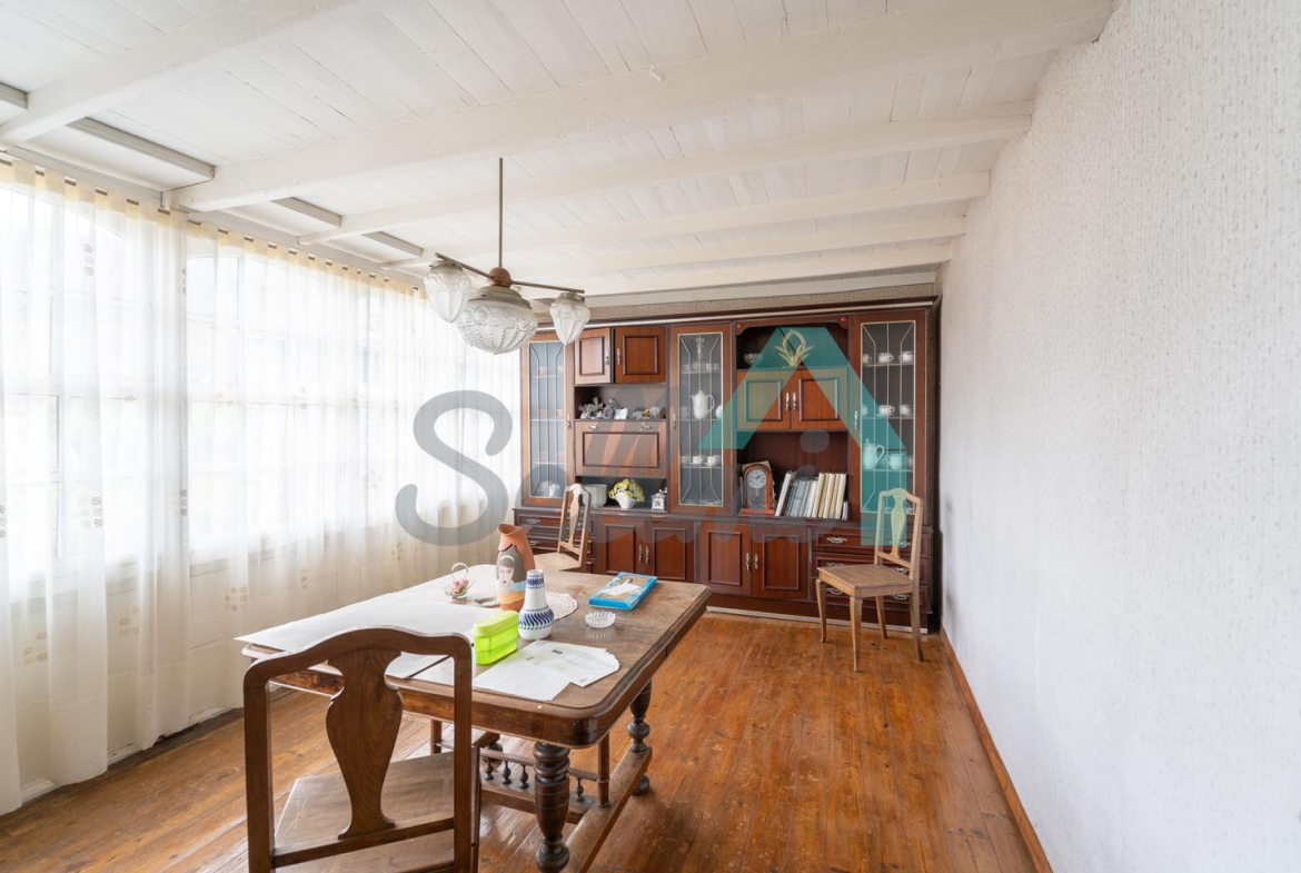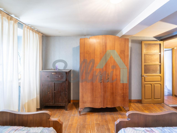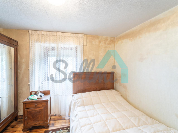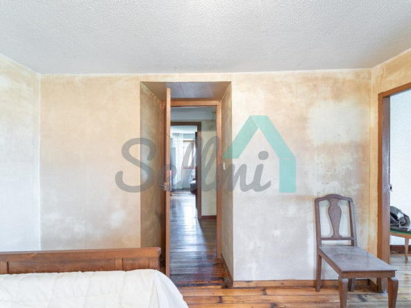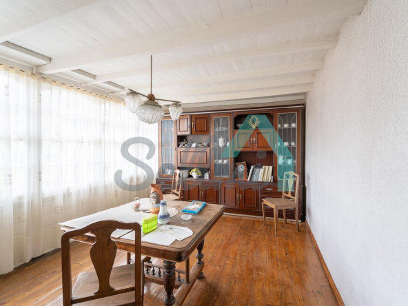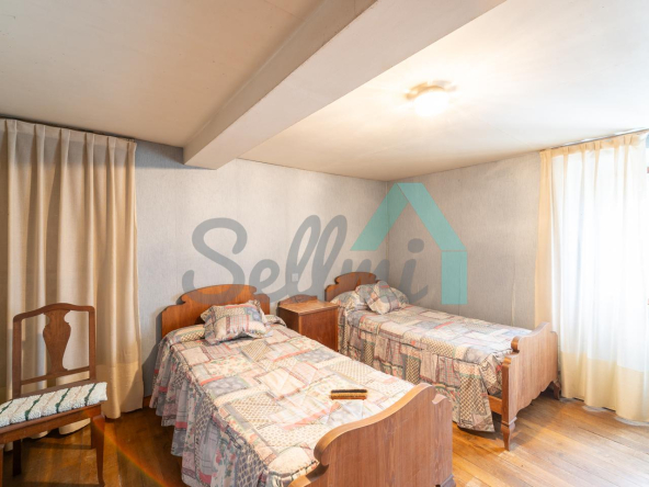La primera planta cuenta con salón, cinco habitaciones y un baño completo. Los suelos son de castaño en muy buen estado. Ventanas y puertas de madera antiguas. Muebles antiguos de castaño. El salón tiene una gran galería acristalada con vistas a la corrada.