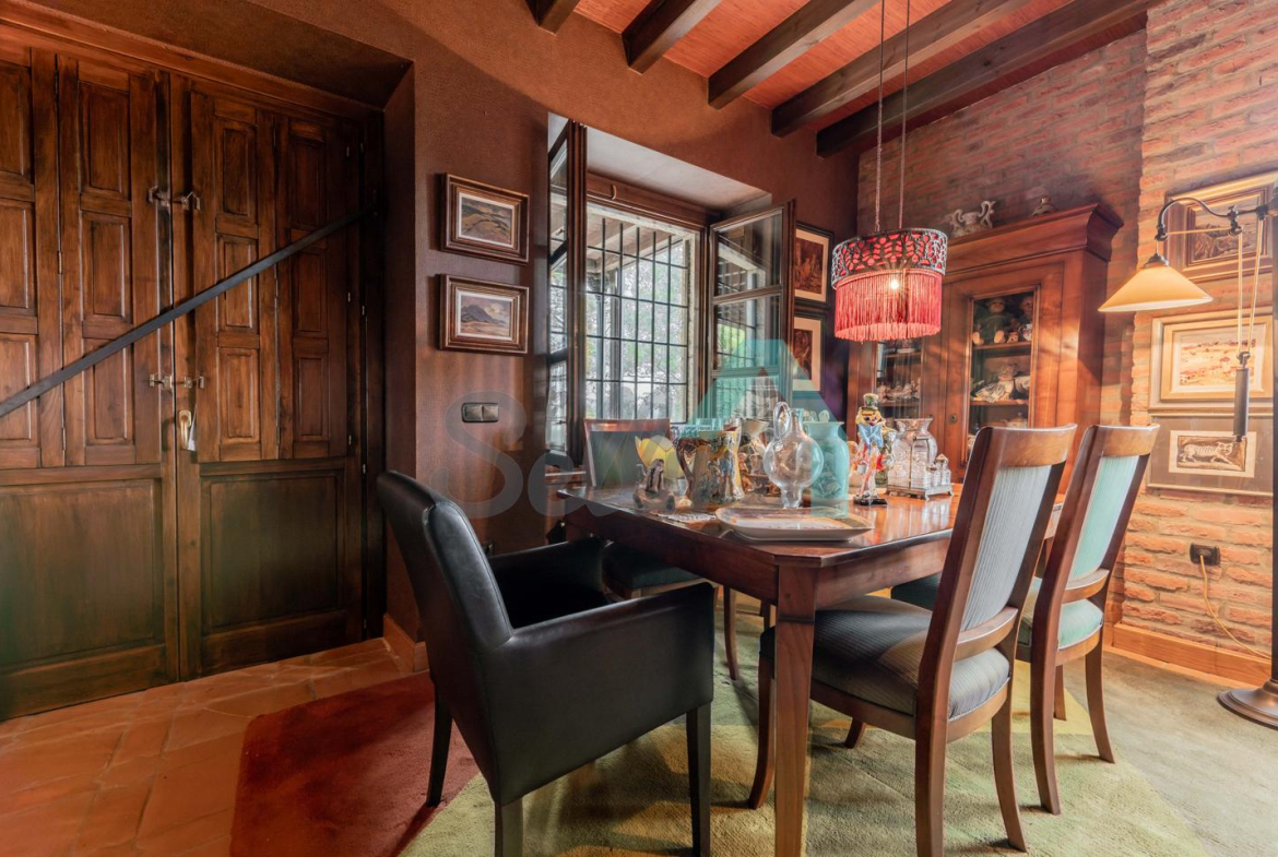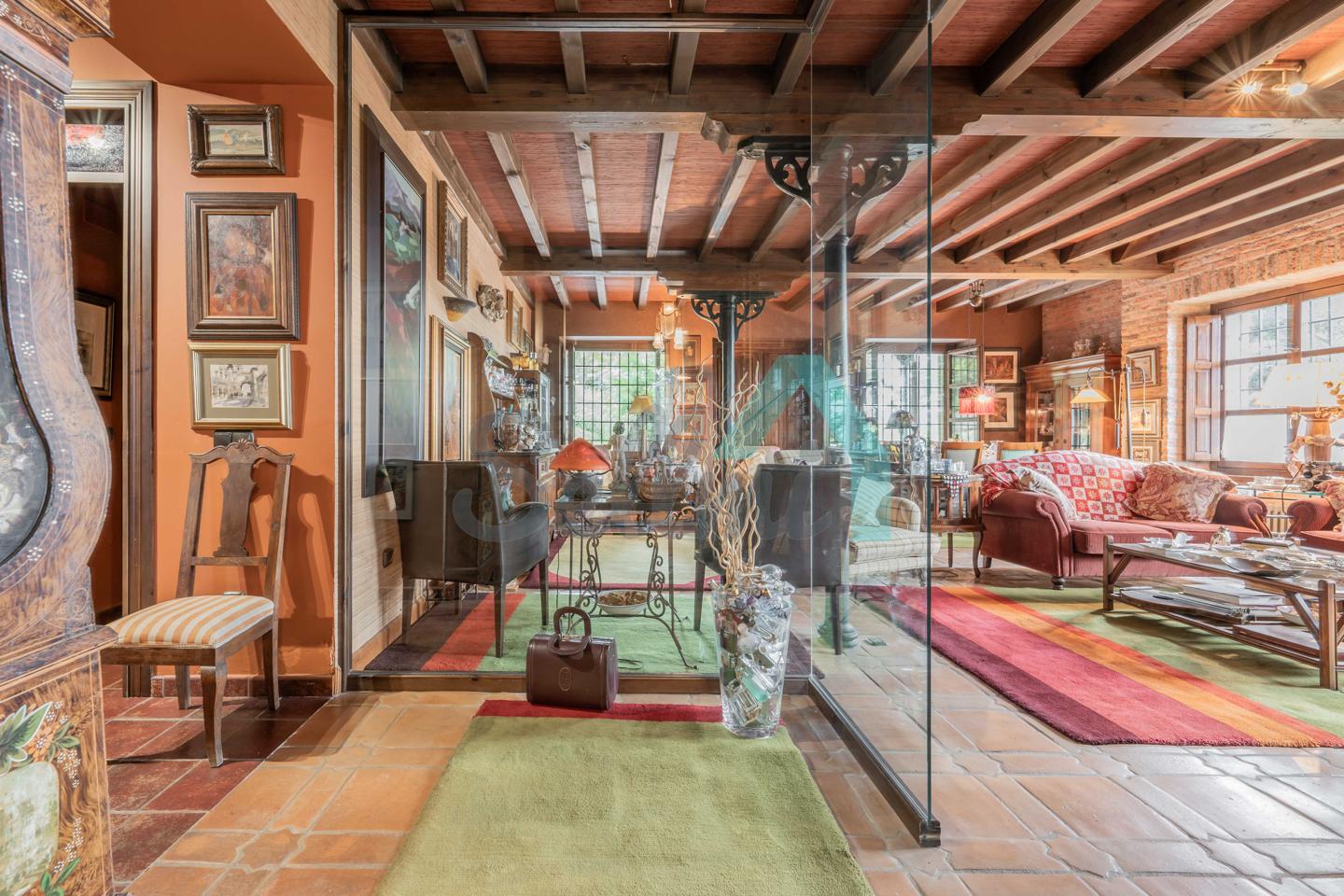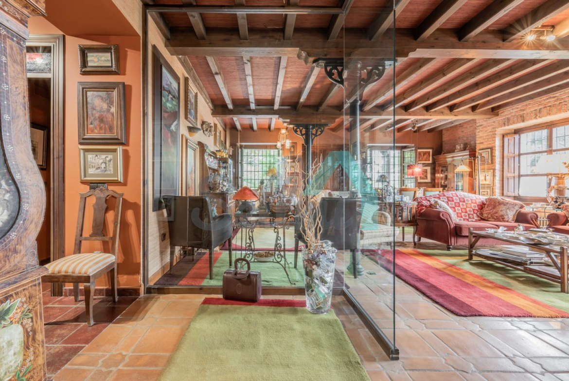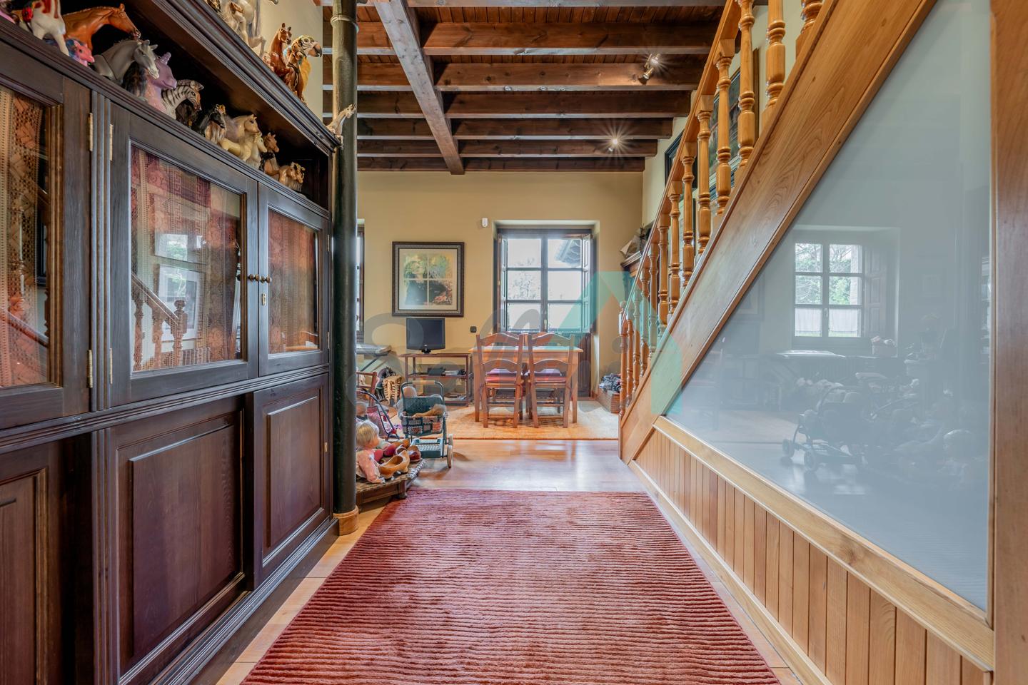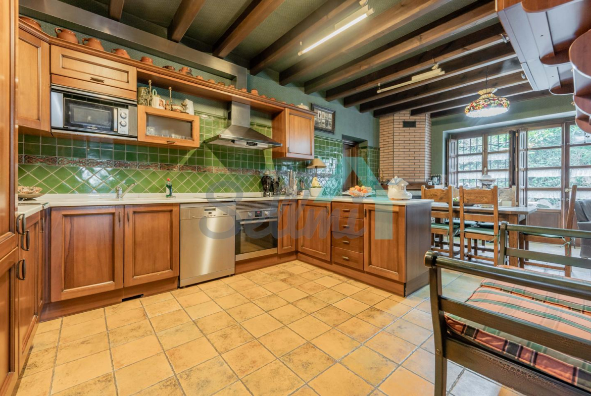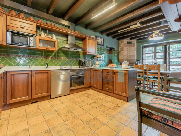 Planta baja: hall de entrada, un enorme salón con chimenea, cocina con zona de comedor con chimenea, office, una habitación, un baño completo y un aseo.