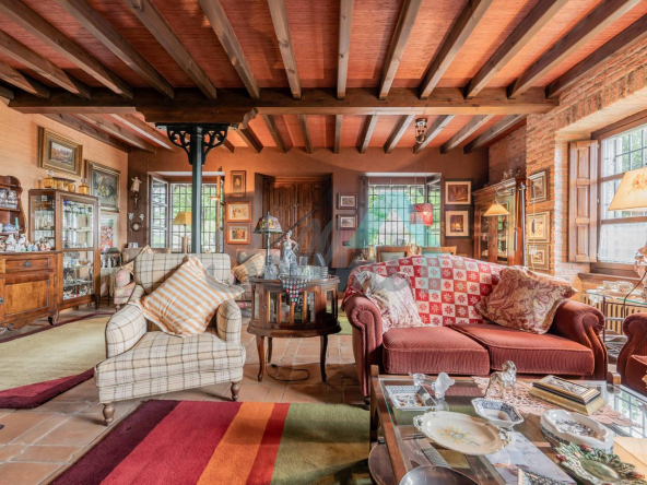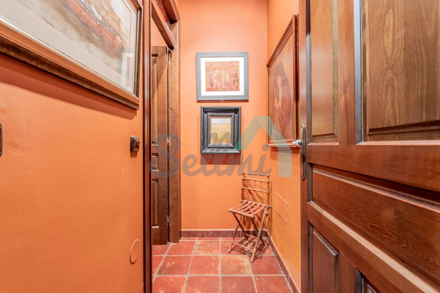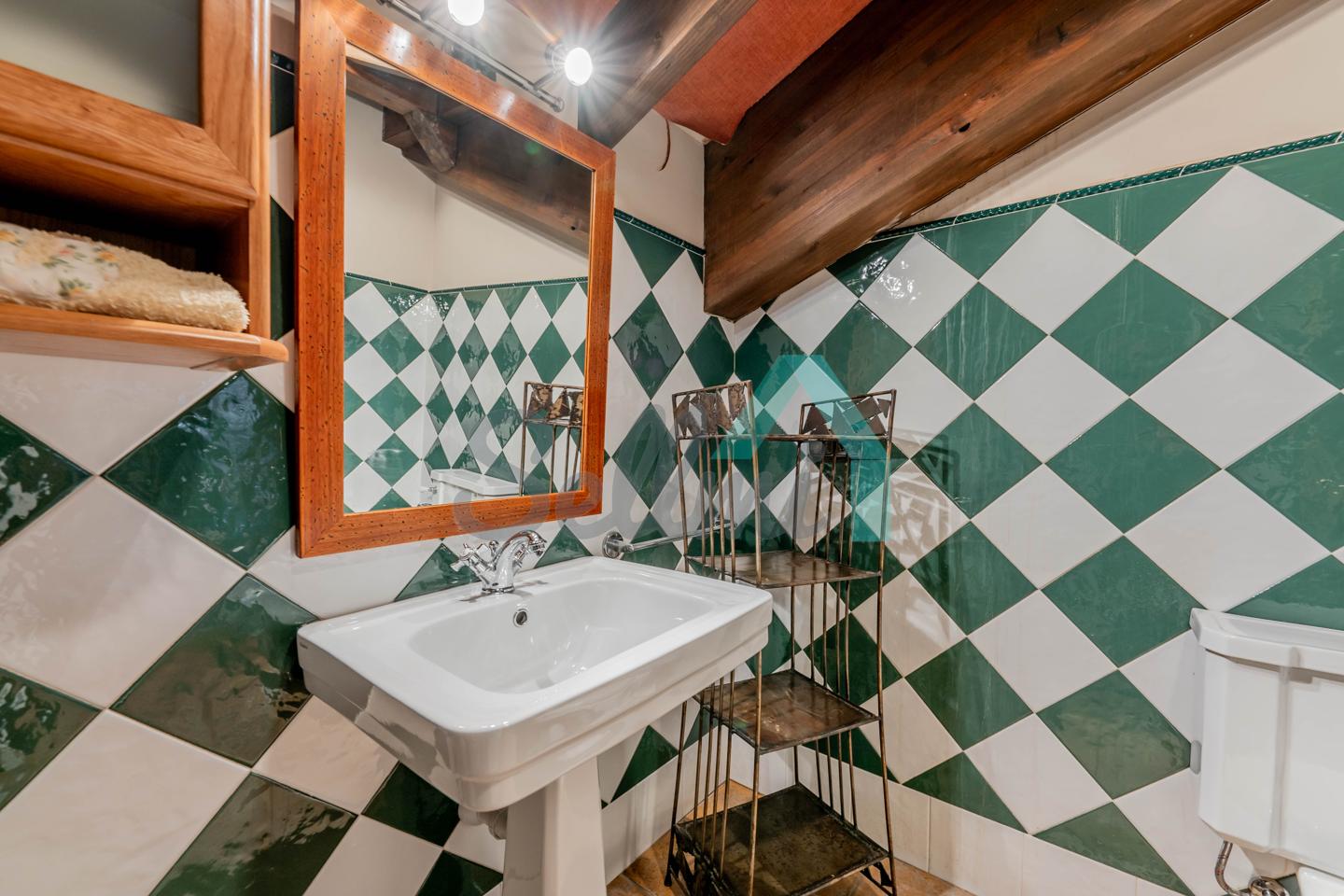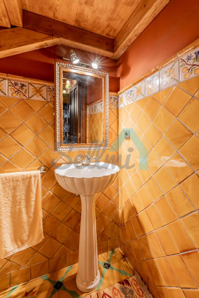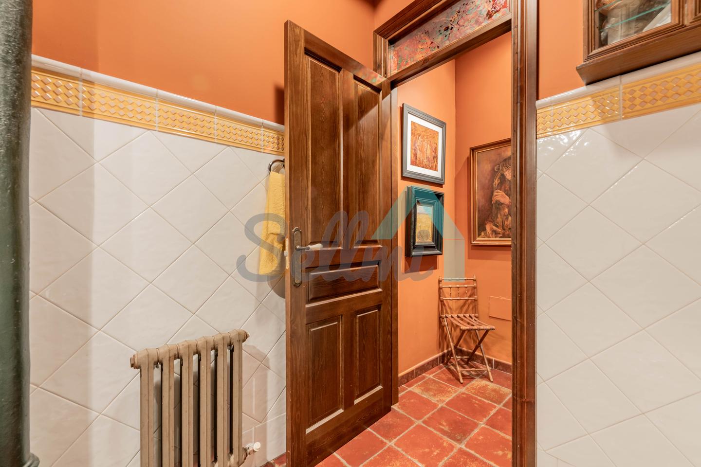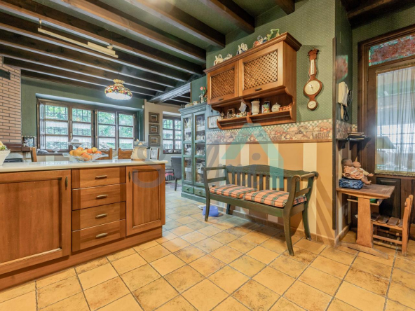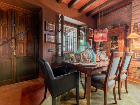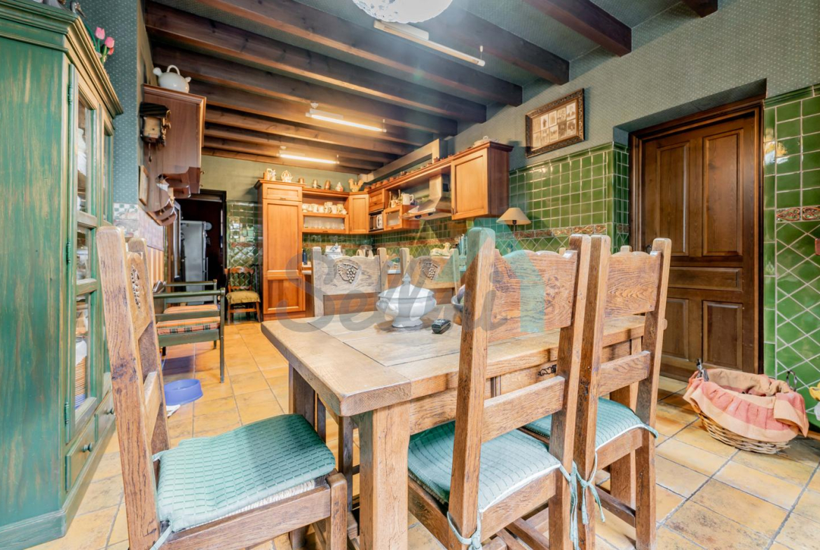 Planta baja: hall de entrada, un enorme salón con chimenea, cocina con zona de comedor con chimenea, office, una habitación, un baño completo y un aseo.