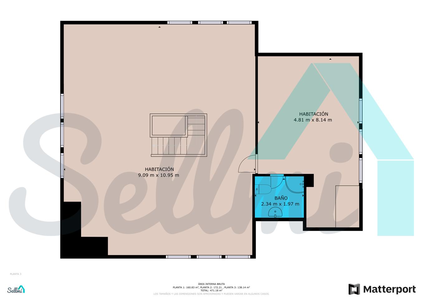 Planta segunda: un gran espacio diáfano para diferentes usos y una estancia con un baño completo.
