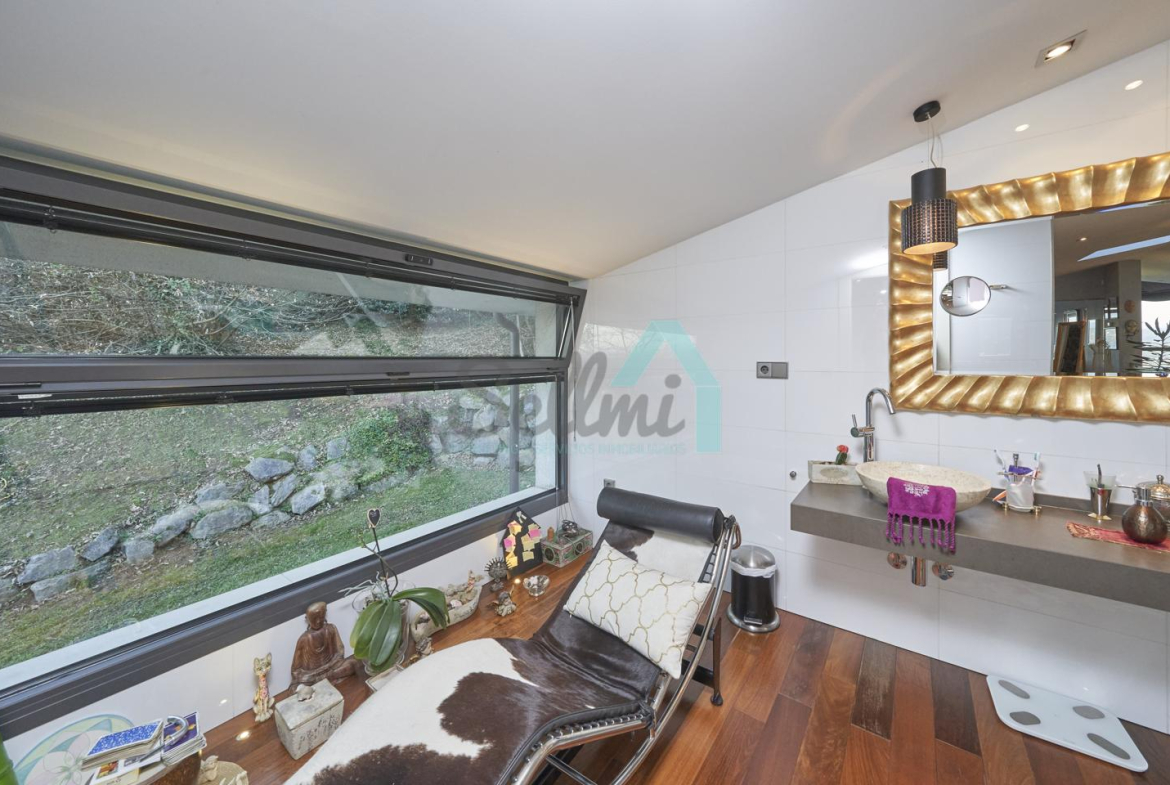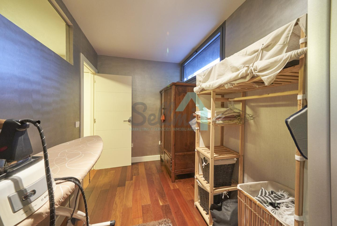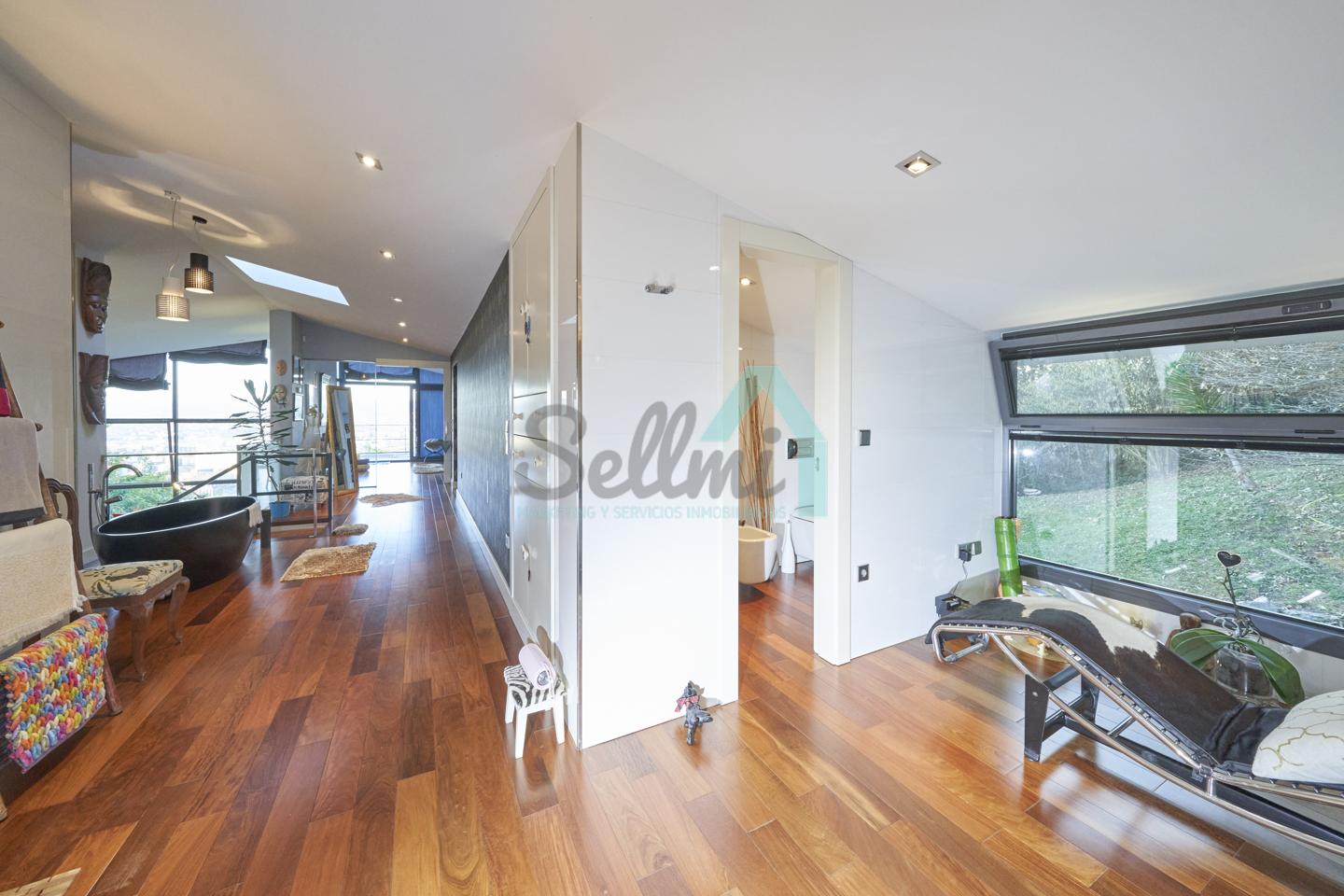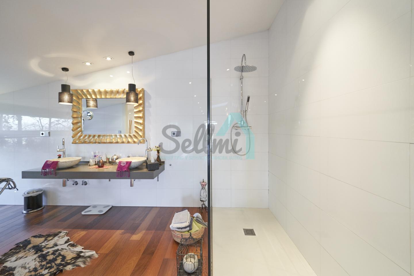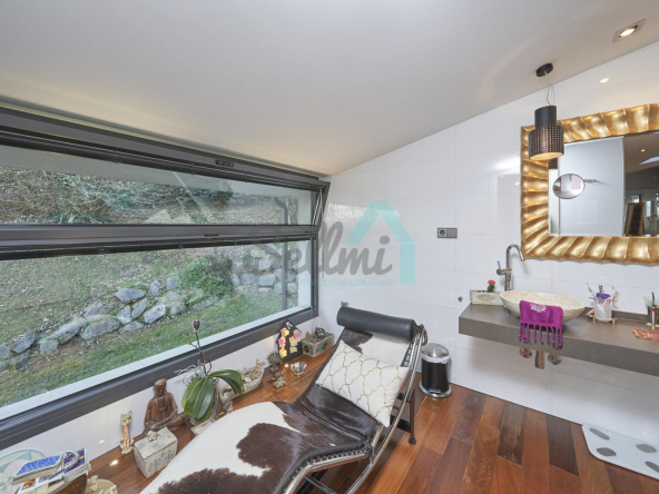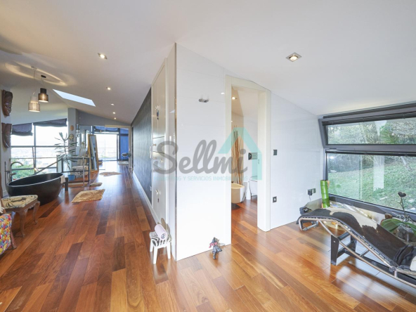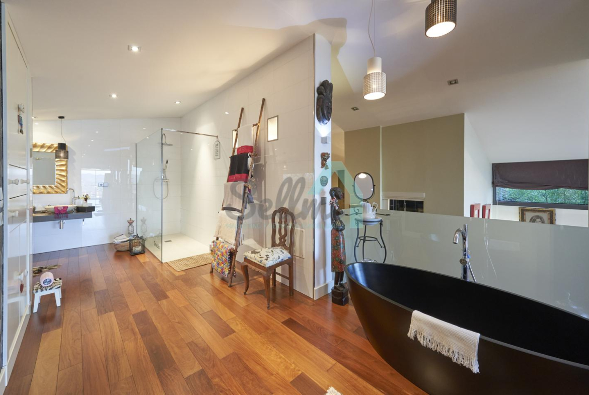 Dispone de aire acondicionado, calefacción individual de gasoil por suelo radiante (con dos depósitos de mil litros cada uno) y actualmente se está haciendo el cambio a aerotermia, suelos de madera de Ipé, baños con azulejos de polvo de mármol y grifería italiana, ventanas Technal de aluminio con cristales de seguridad y manillas ocultas antirrobo, persianas automáticas, armarios empotrados, puerta de seguridad, aspiración centralizada, etc.