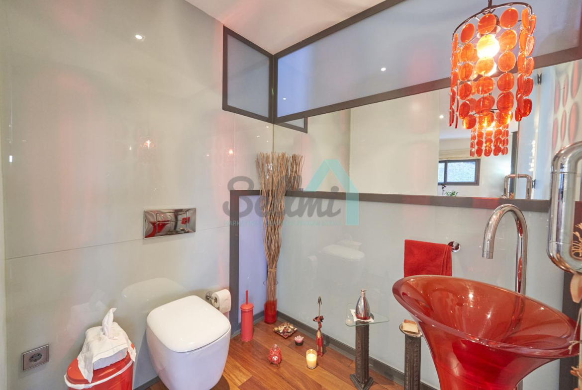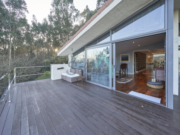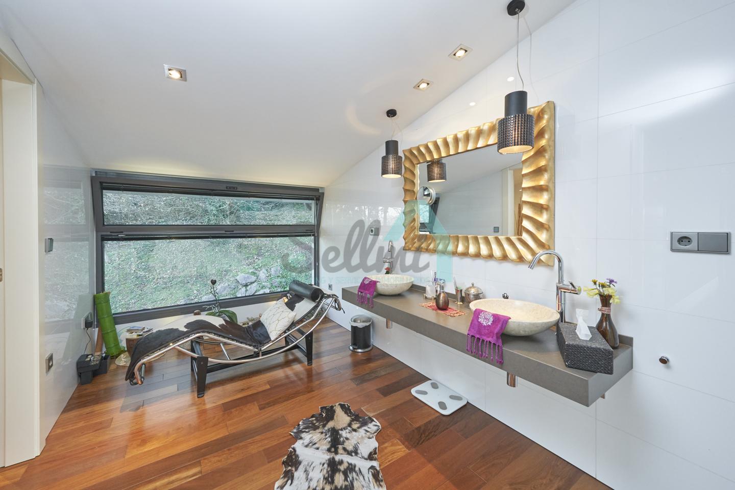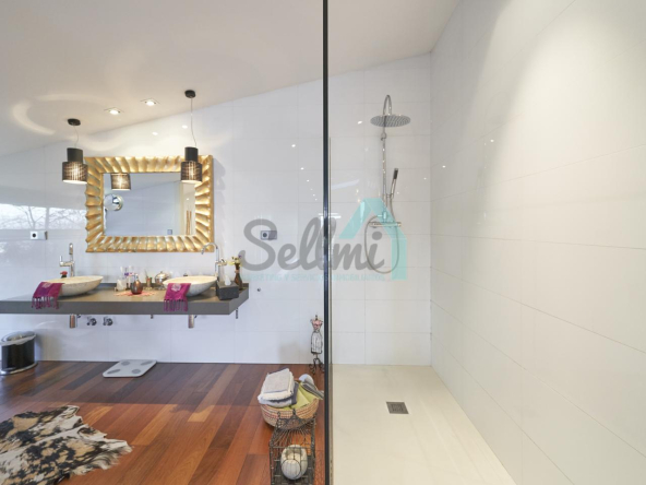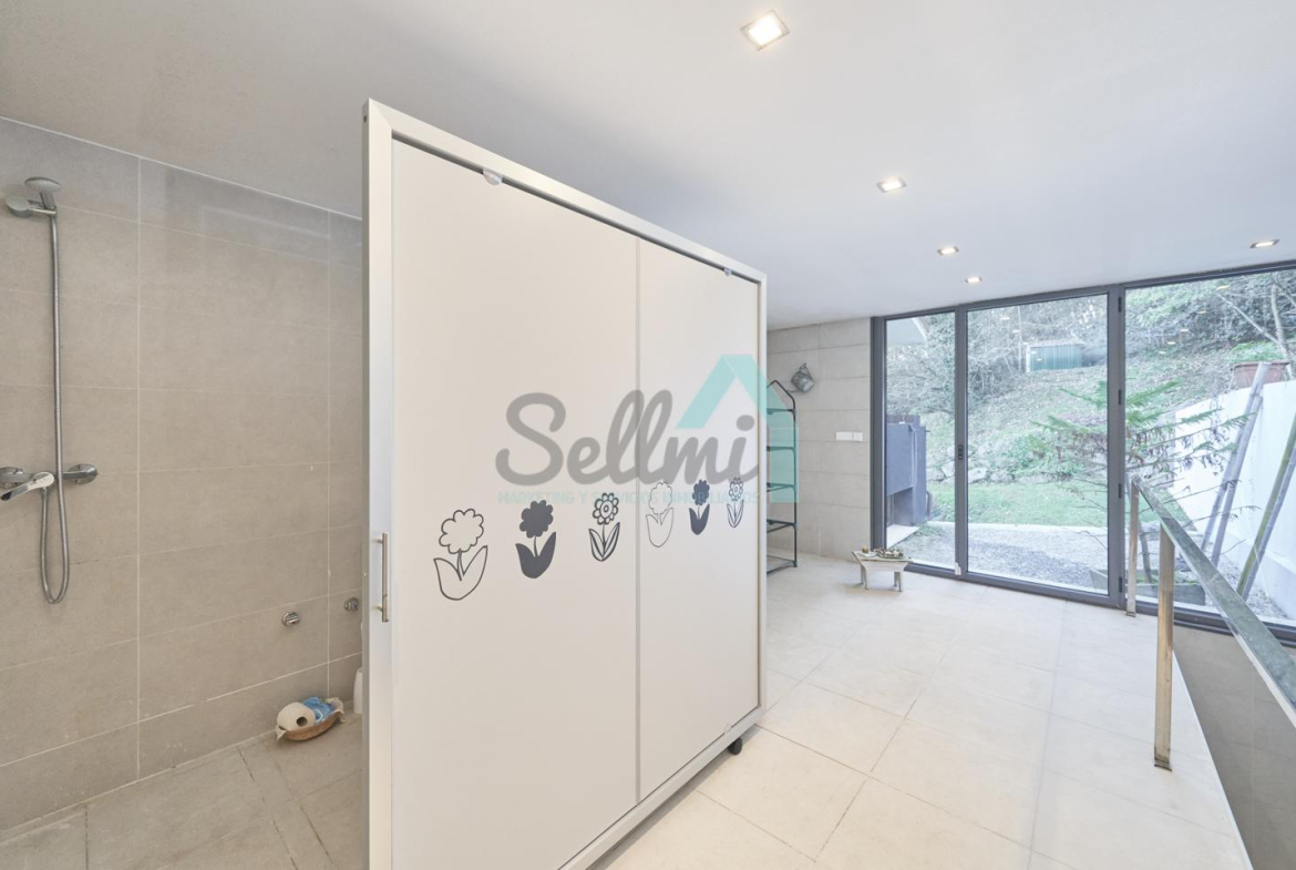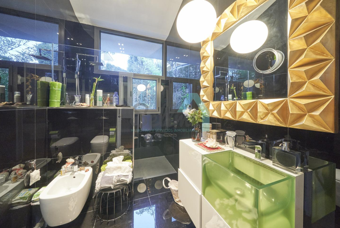 Dispone de aire acondicionado, calefacción individual de gasoil por suelo radiante (con dos depósitos de mil litros cada uno) y actualmente se está haciendo el cambio a aerotermia, suelos de madera de Ipé, baños con azulejos de polvo de mármol y grifería italiana, ventanas Technal de aluminio con cristales de seguridad y manillas ocultas antirrobo, persianas automáticas, armarios empotrados, puerta de seguridad, aspiración centralizada, etc.