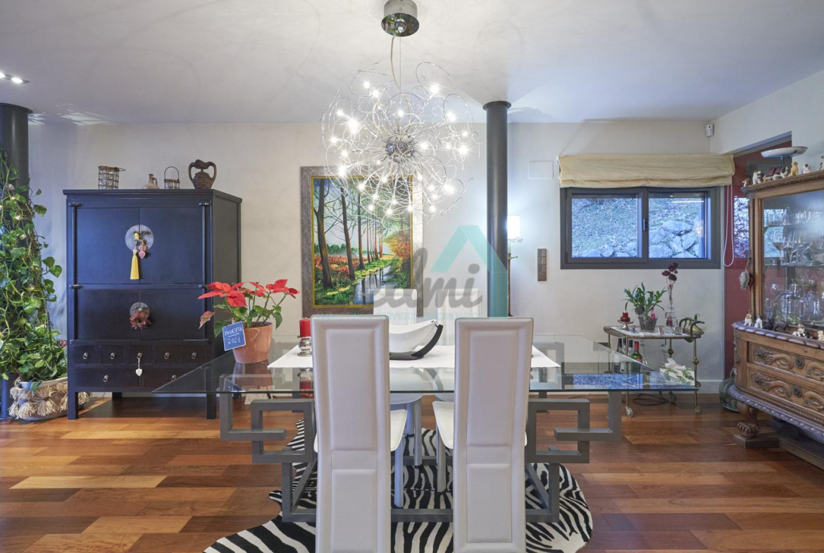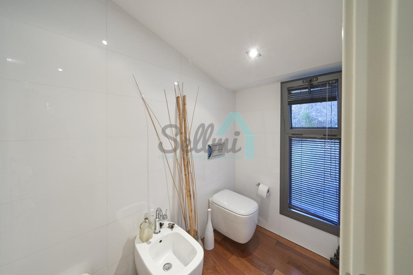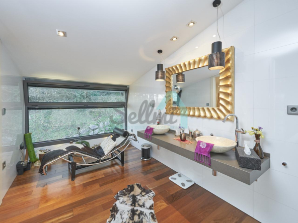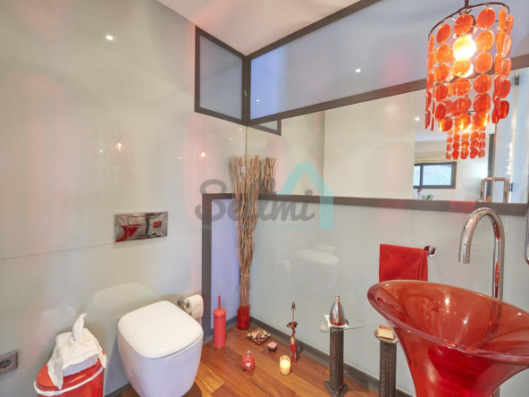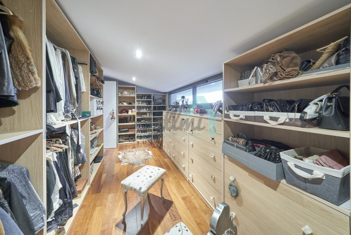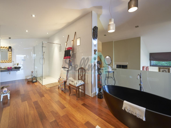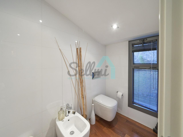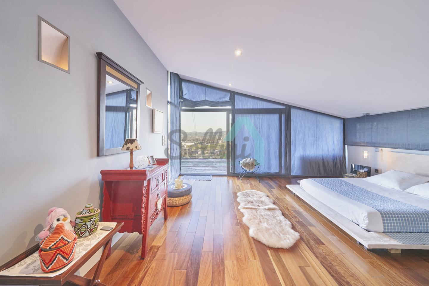 Dispone de aire acondicionado, calefacción individual de gasoil por suelo radiante (con dos depósitos de mil litros cada uno) y actualmente se está haciendo el cambio a aerotermia, suelos de madera de Ipé, baños con azulejos de polvo de mármol y grifería italiana, ventanas Technal de aluminio con cristales de seguridad y manillas ocultas antirrobo, persianas automáticas, armarios empotrados, puerta de seguridad, aspiración centralizada, etc.