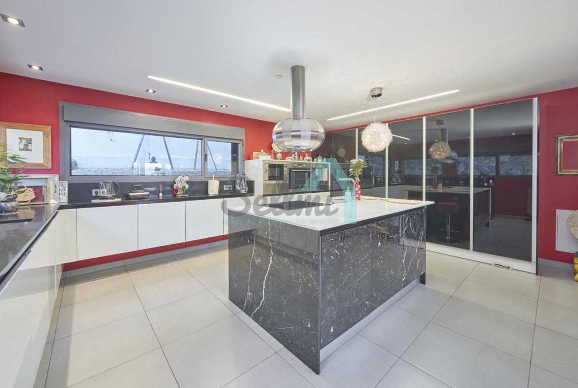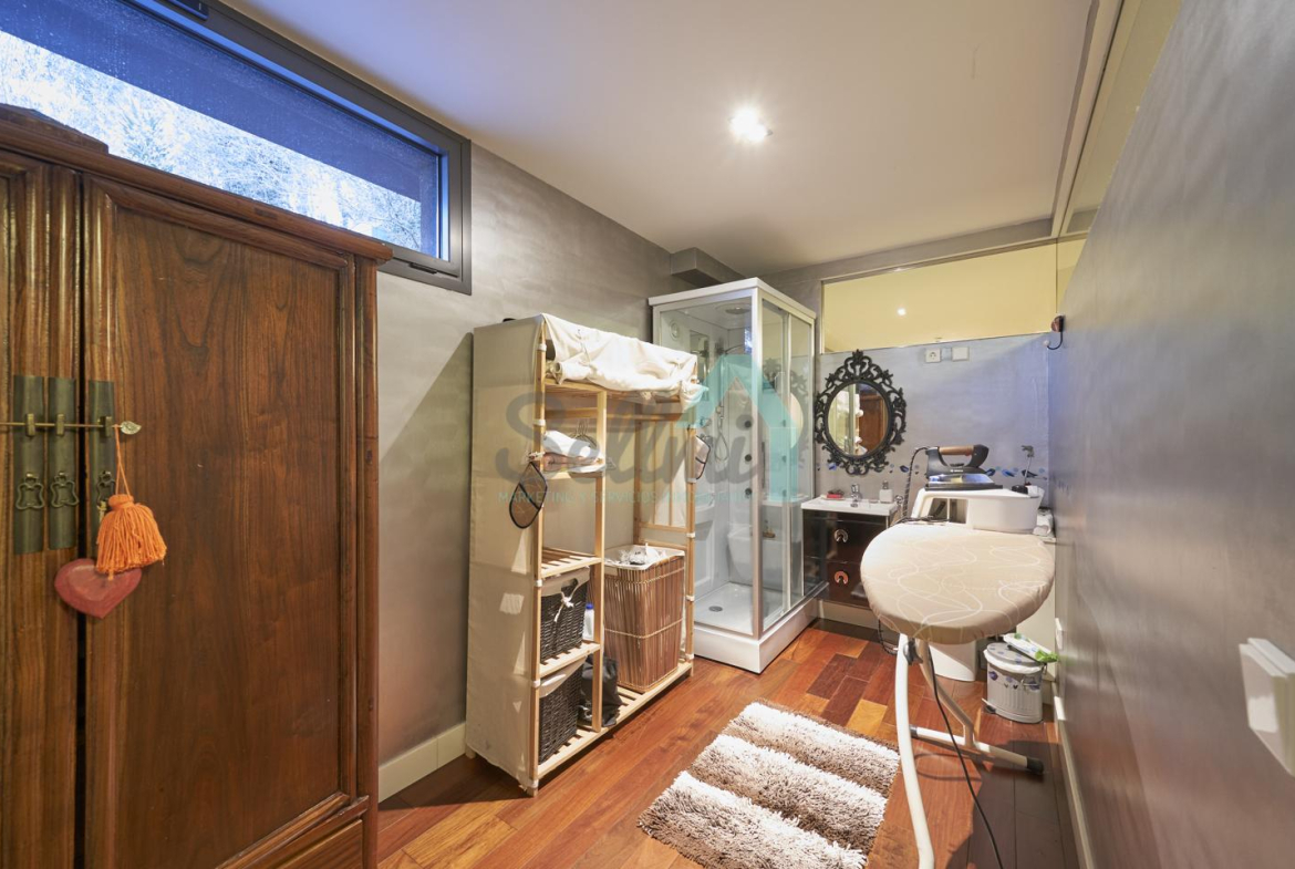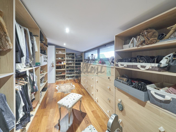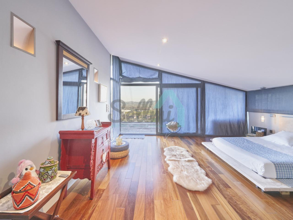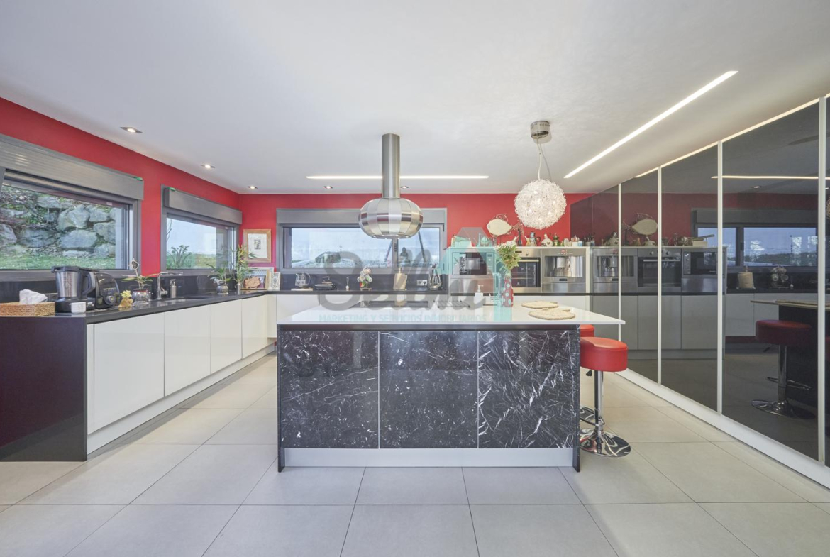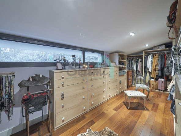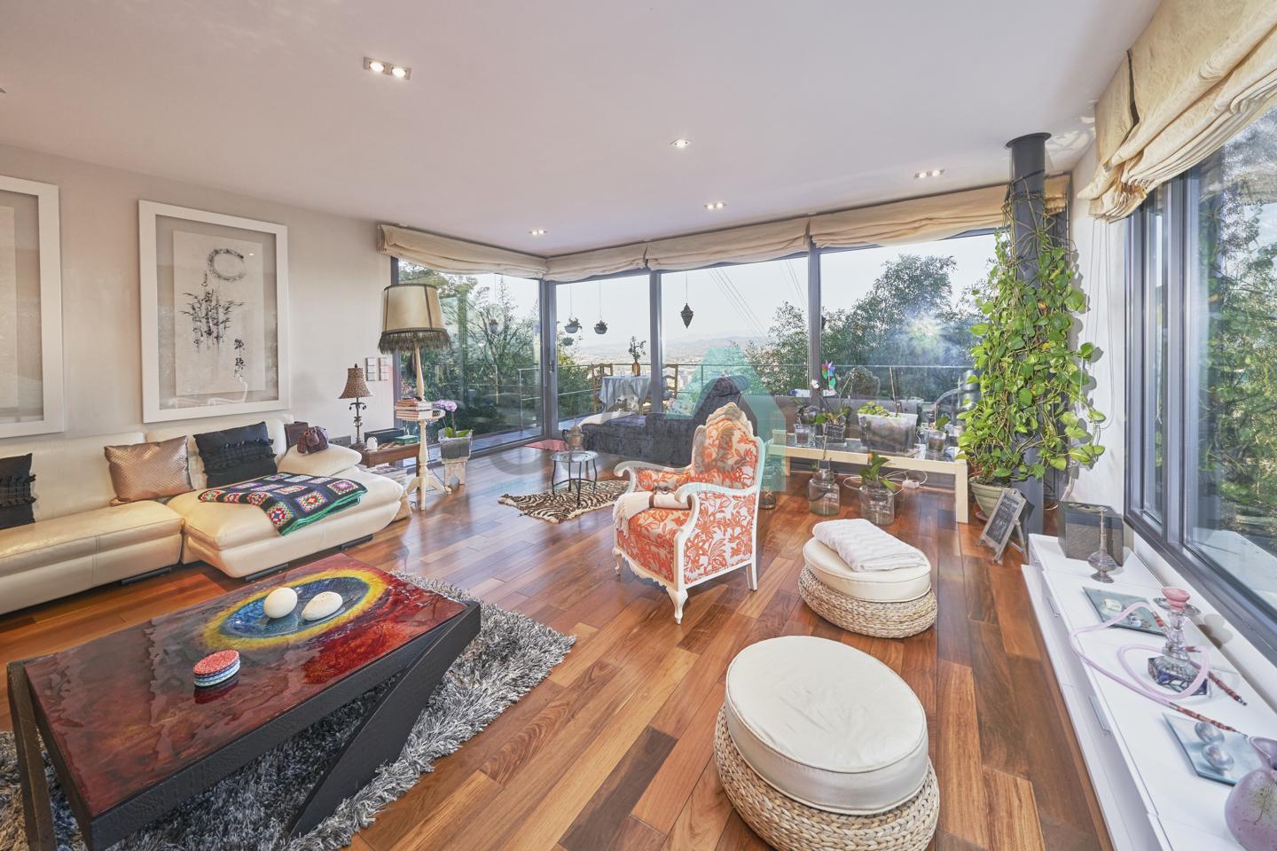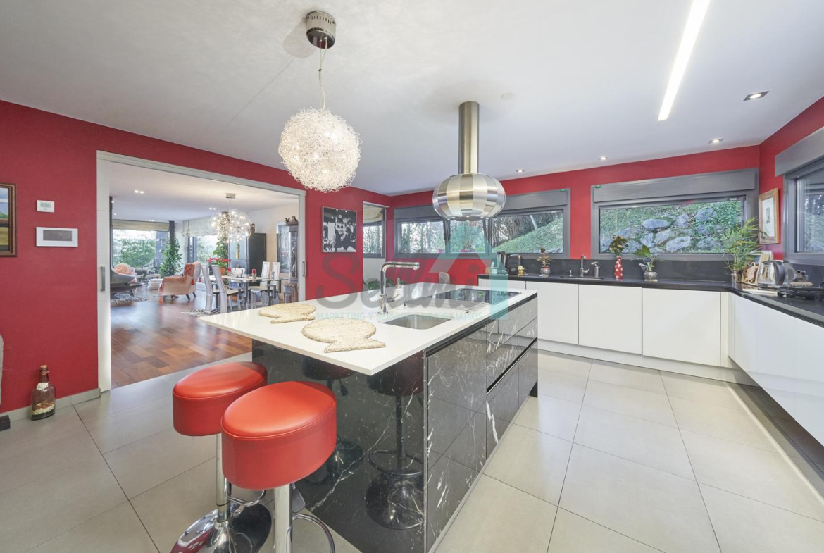 Dispone de aire acondicionado, calefacción individual de gasoil por suelo radiante (con dos depósitos de mil litros cada uno) y actualmente se está haciendo el cambio a aerotermia, suelos de madera de Ipé, baños con azulejos de polvo de mármol y grifería italiana, ventanas Technal de aluminio con cristales de seguridad y manillas ocultas antirrobo, persianas automáticas, armarios empotrados, puerta de seguridad, aspiración centralizada, etc.