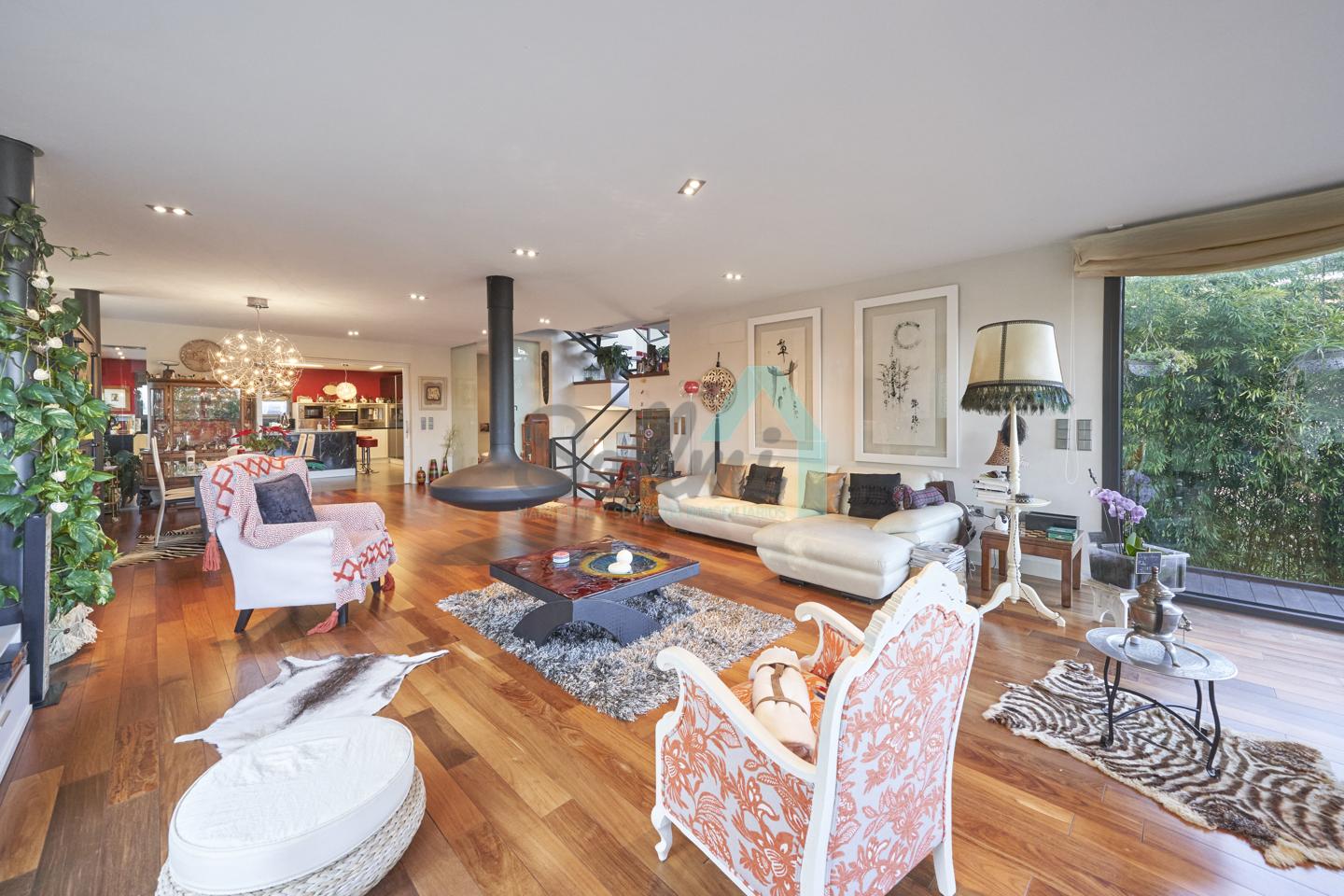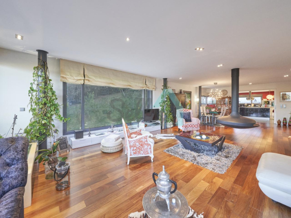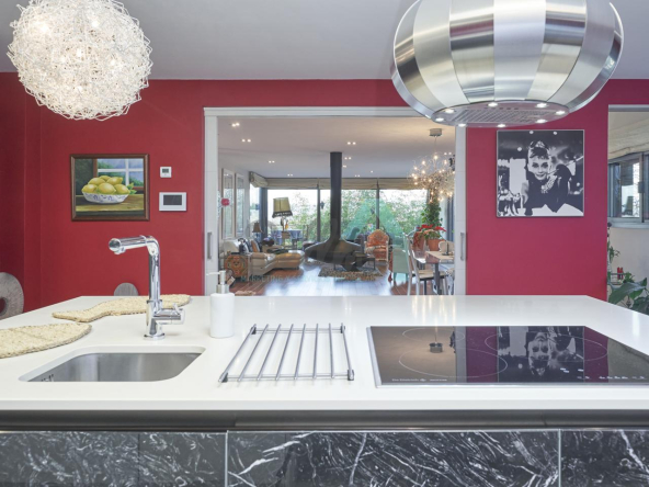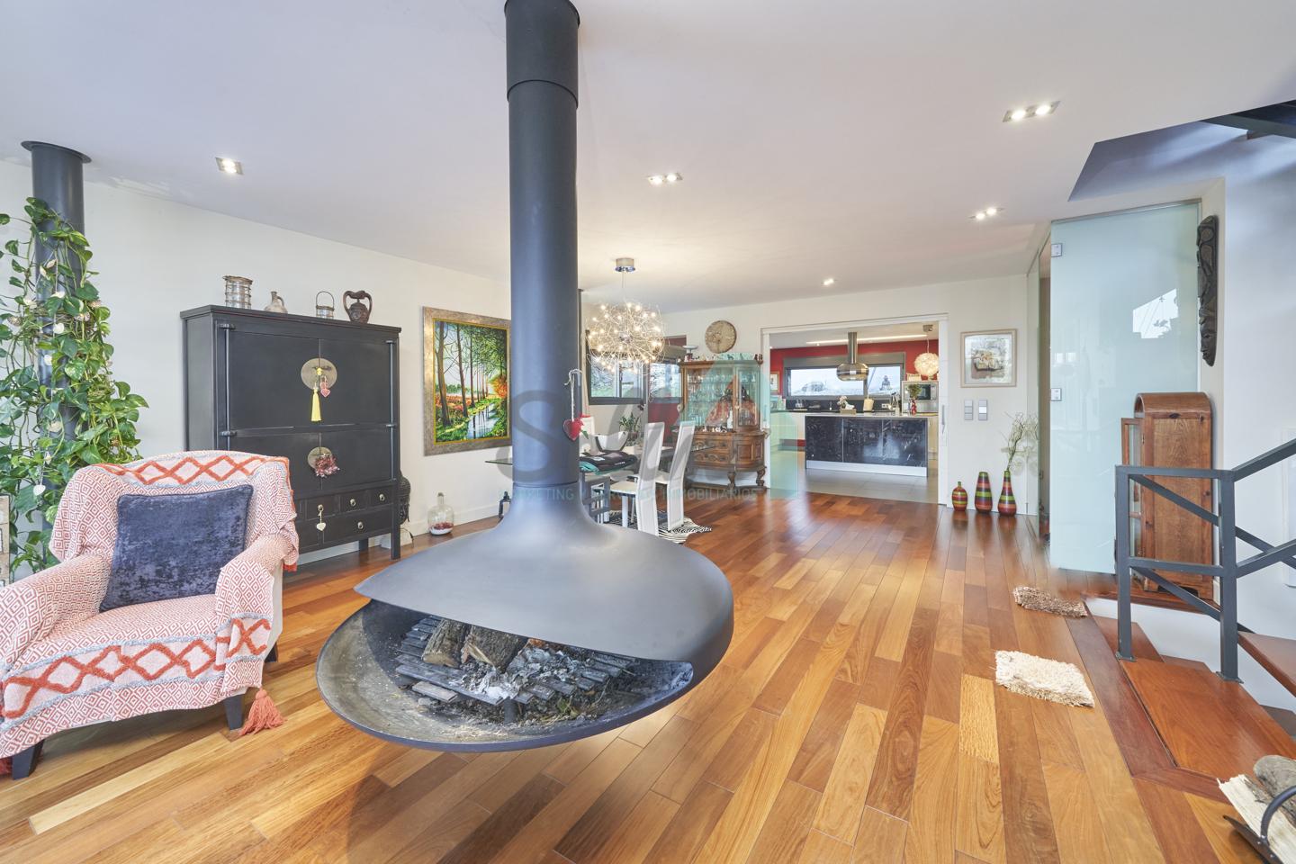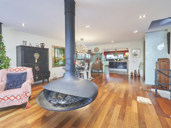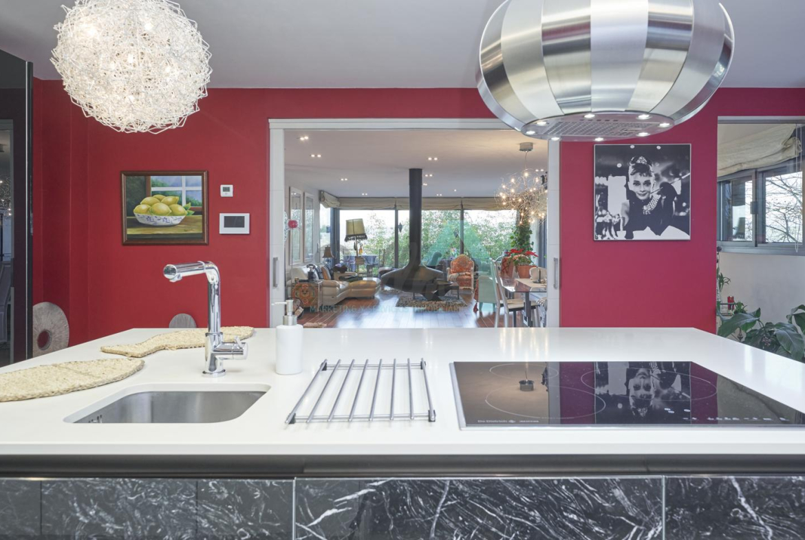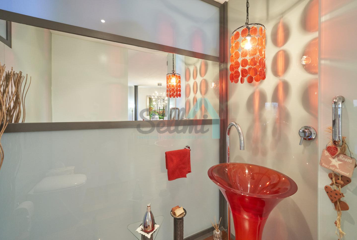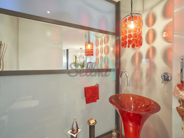 Dispone de aire acondicionado, calefacción individual de gasoil por suelo radiante (con dos depósitos de mil litros cada uno) y actualmente se está haciendo el cambio a aerotermia, suelos de madera de Ipé, baños con azulejos de polvo de mármol y grifería italiana, ventanas Technal de aluminio con cristales de seguridad y manillas ocultas antirrobo, persianas automáticas, armarios empotrados, puerta de seguridad, aspiración centralizada, etc.