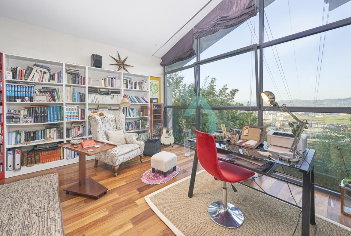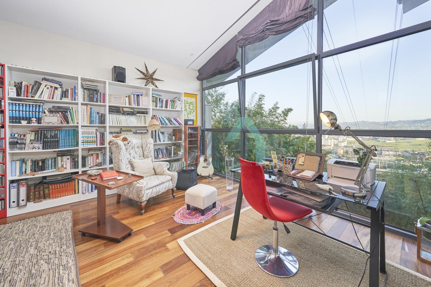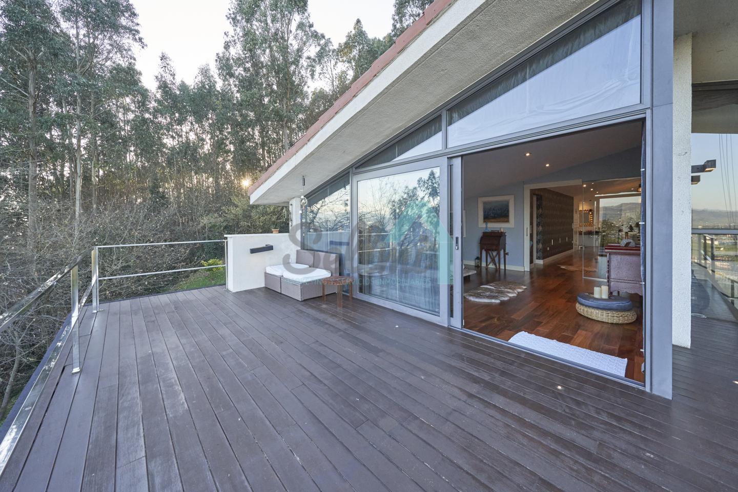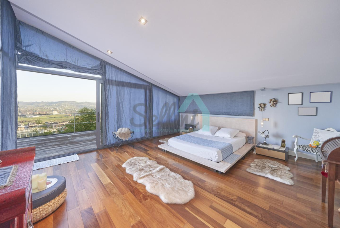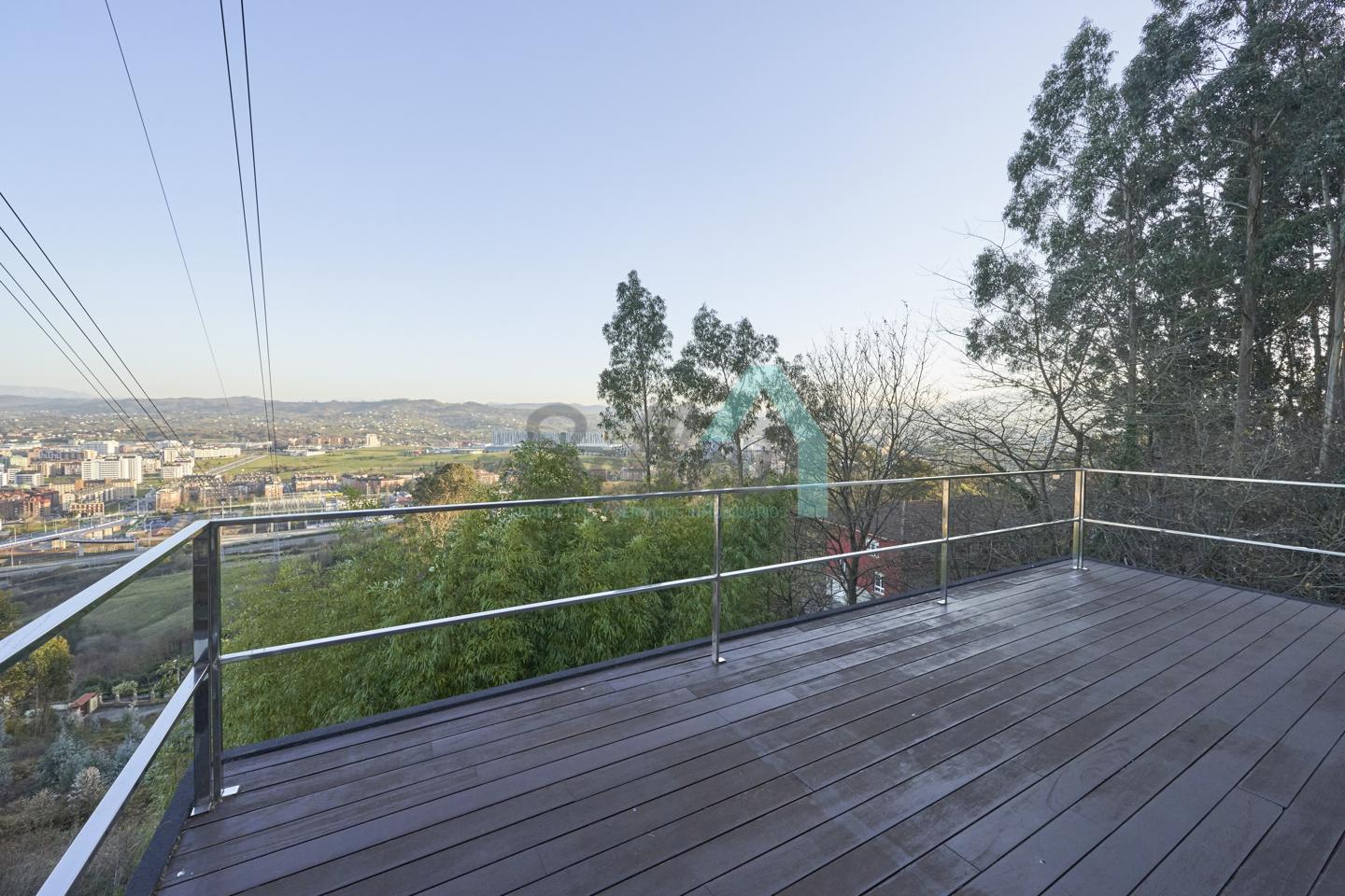 Chalet independiente en venta situado en la falda del Naranco, en la zona de Toleo. La vivienda, construida en 2010 y orientada al sureste, se encuentra ubicada en una parcela de 5.260 m², con espectaculares vistas sobre Oviedo.