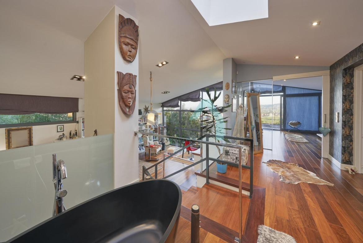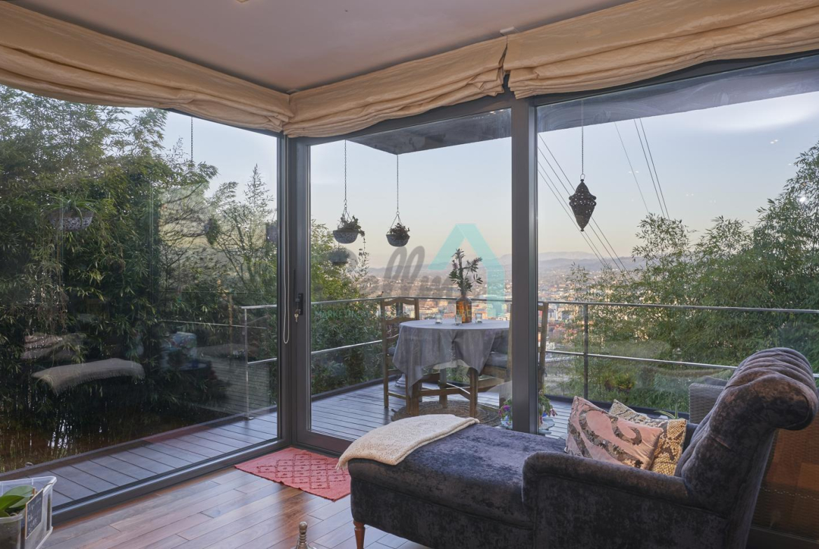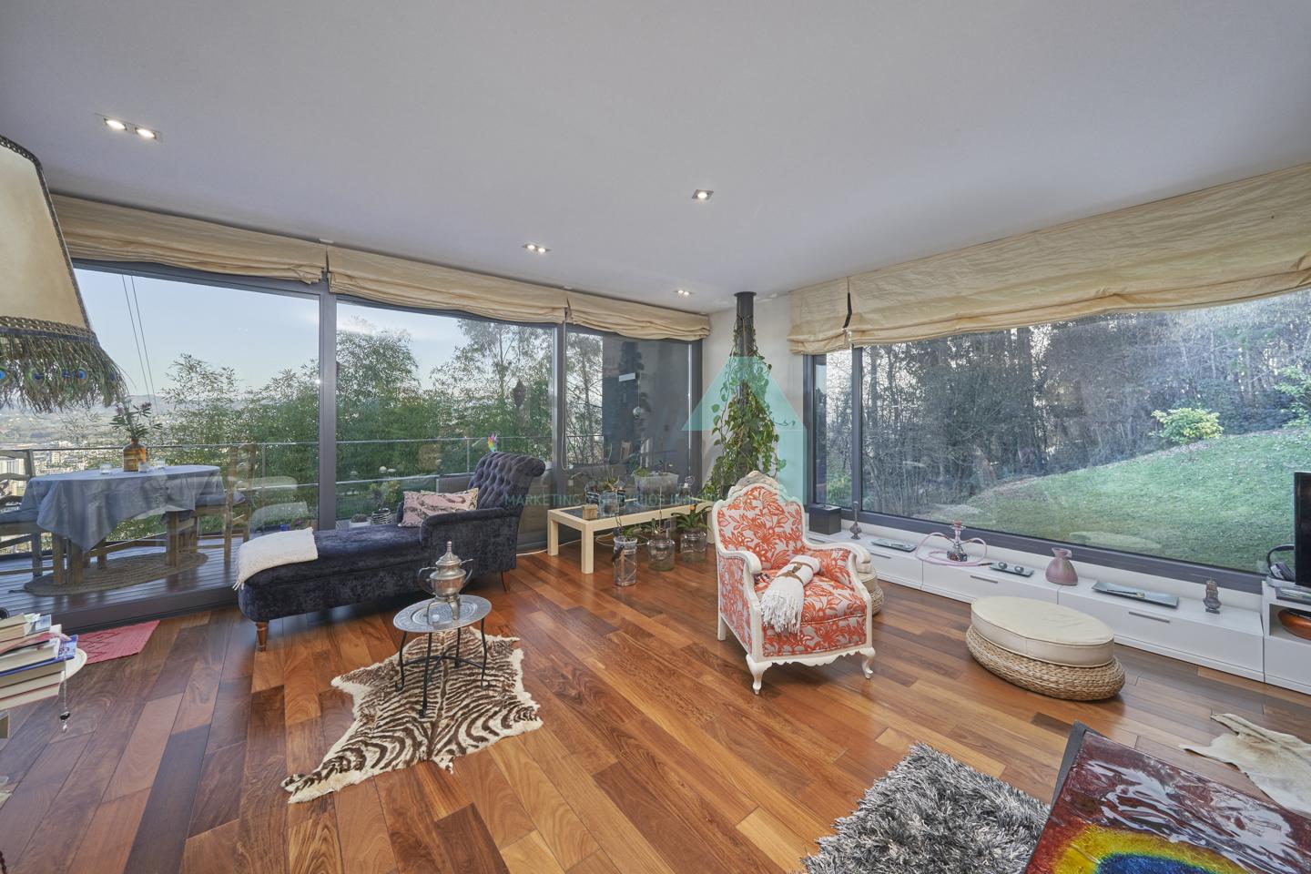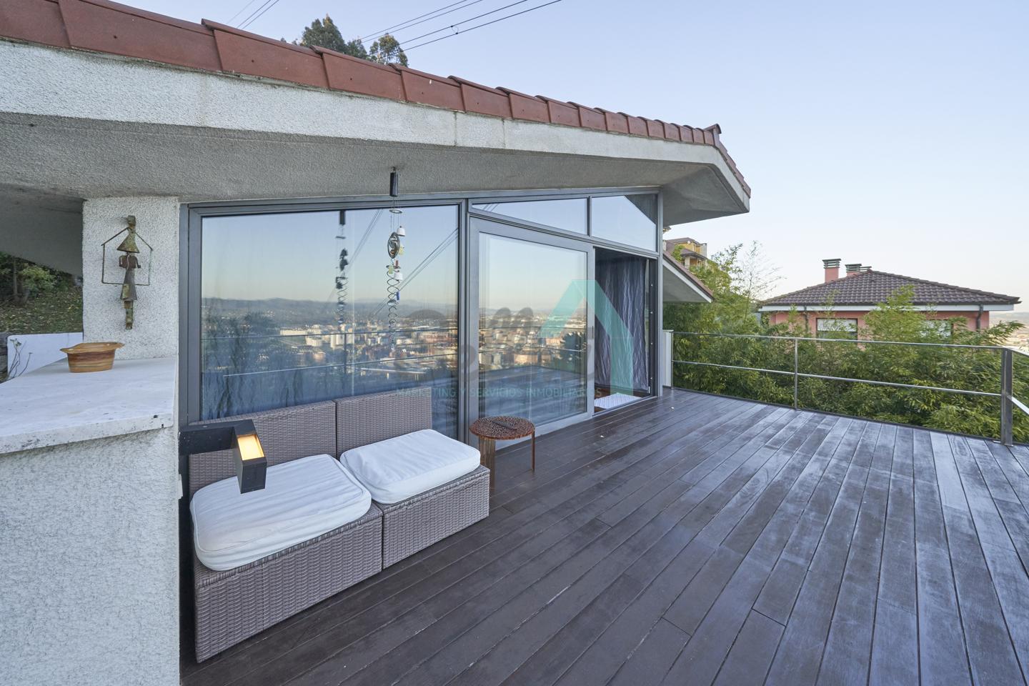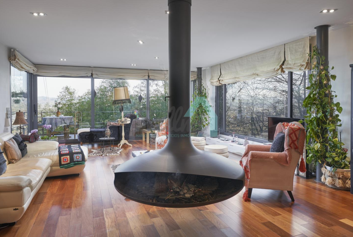 Chalet independiente en venta situado en la falda del Naranco, en la zona de Toleo. La vivienda, construida en 2010 y orientada al sureste, se encuentra ubicada en una parcela de 5.260 m², con espectaculares vistas sobre Oviedo.