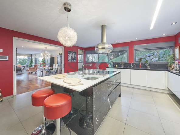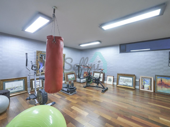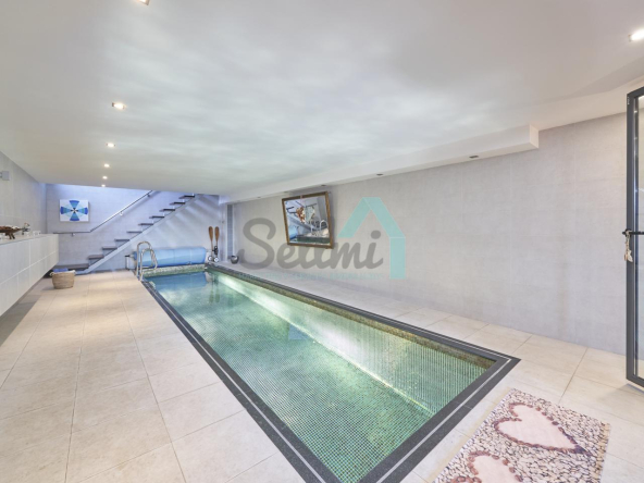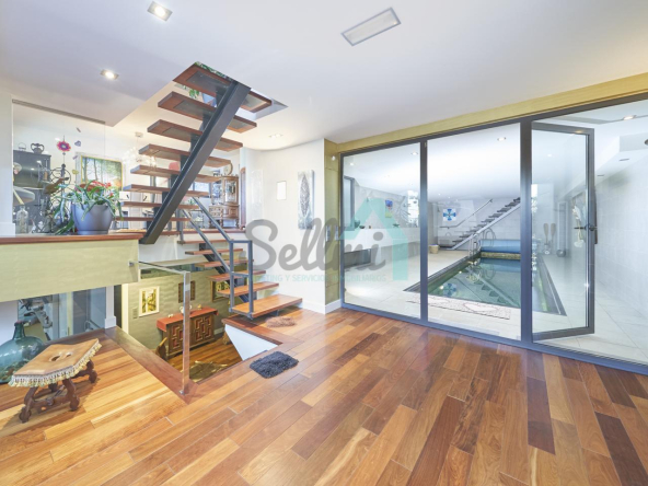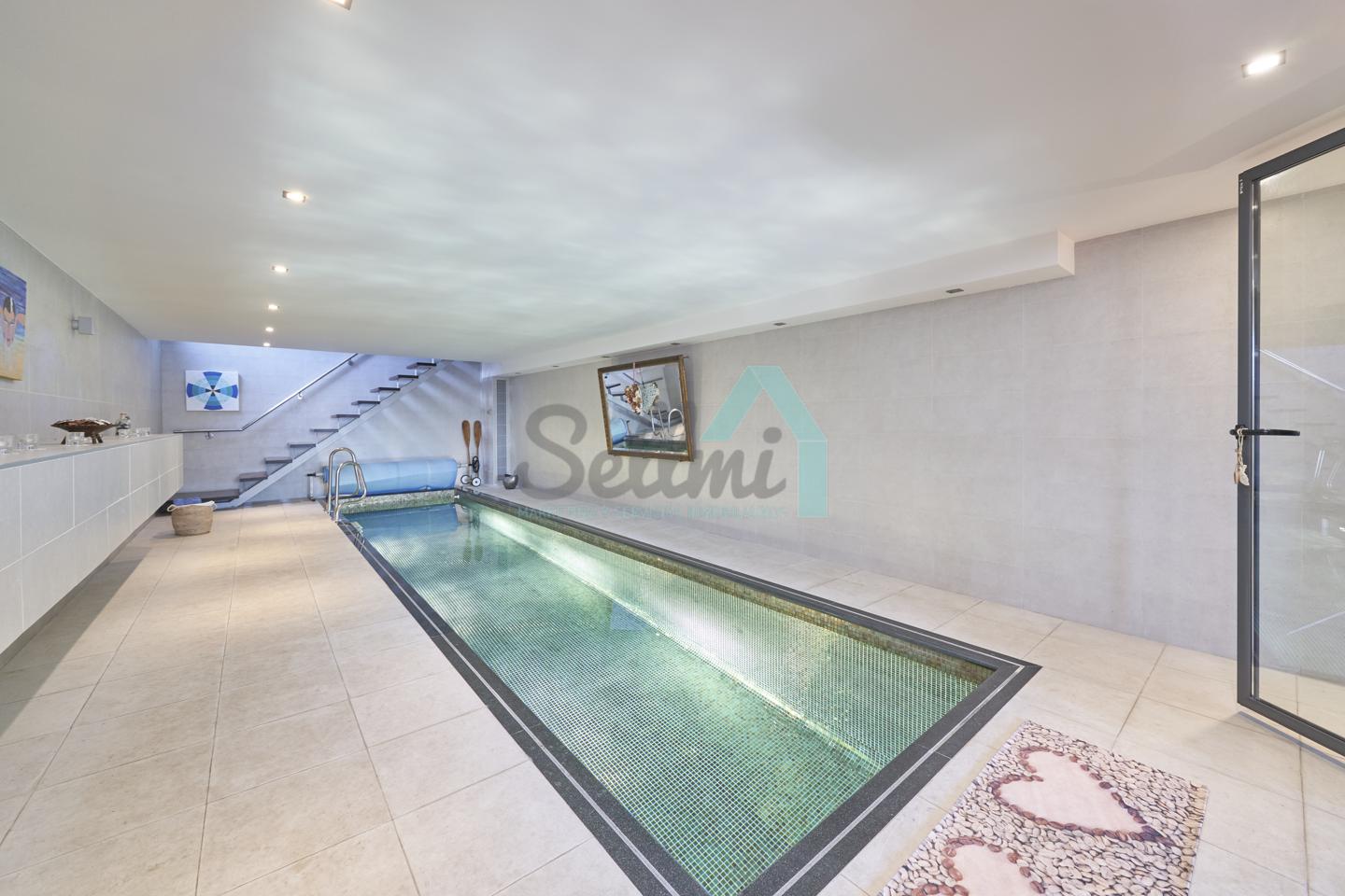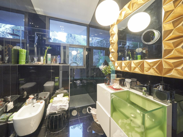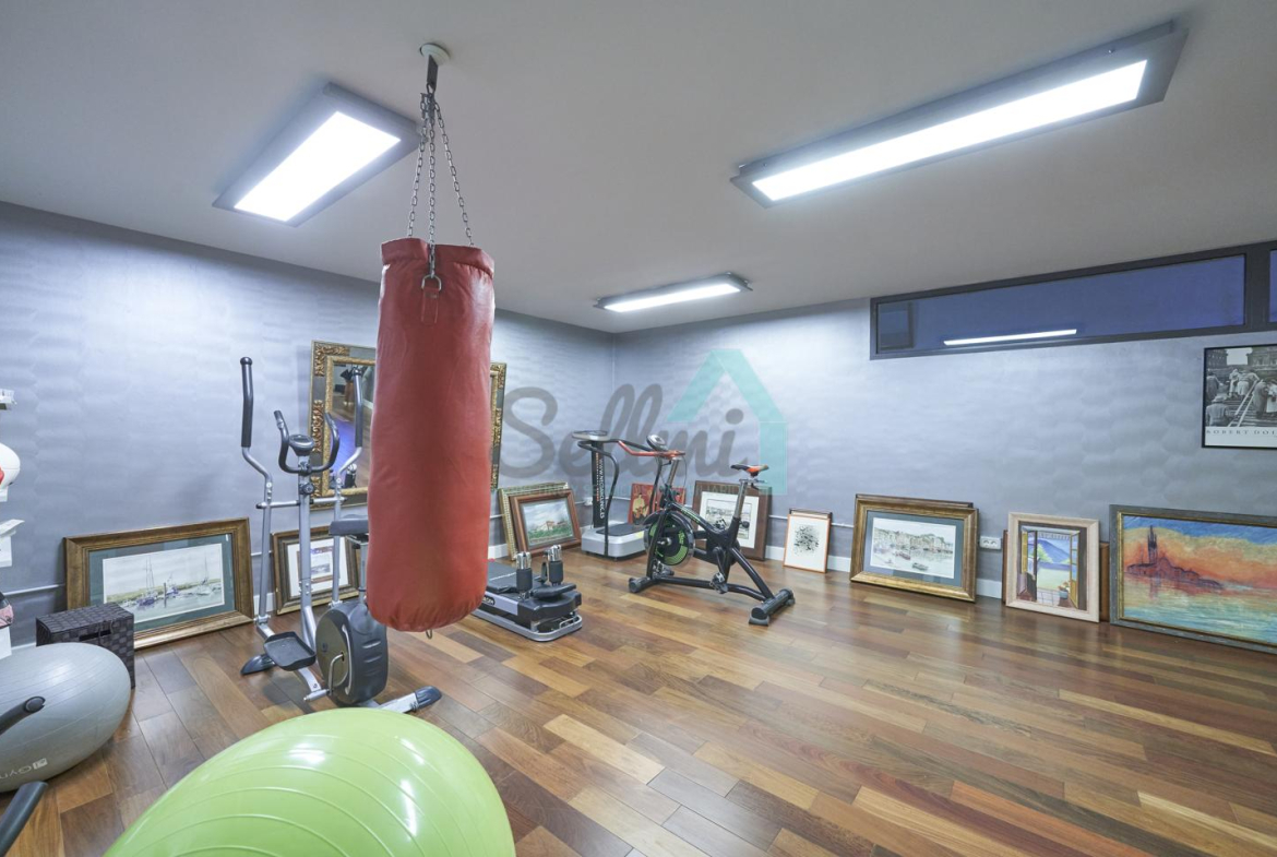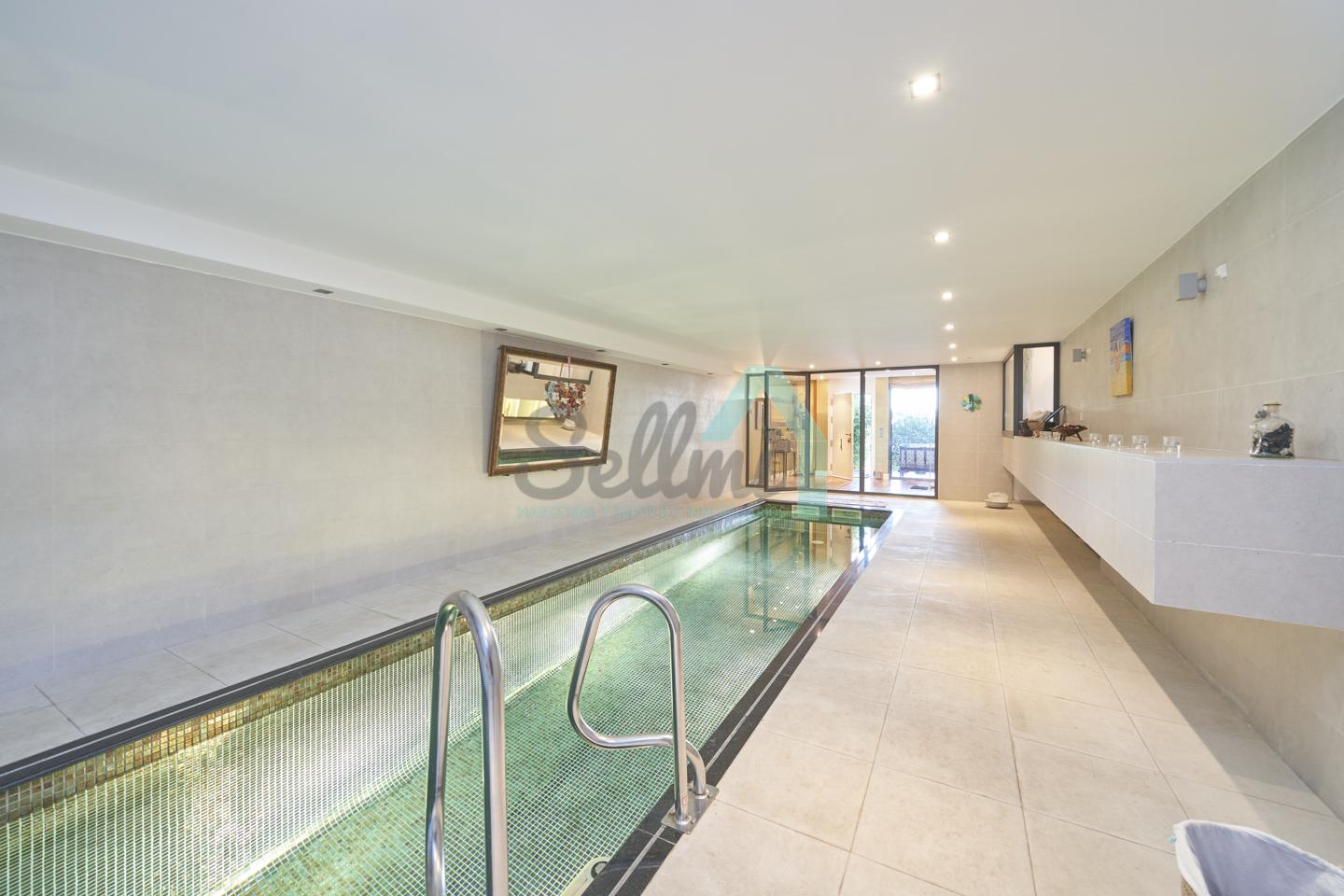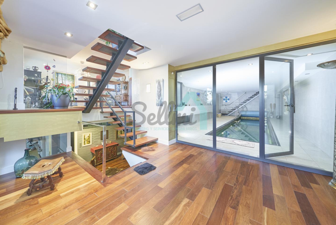 Planta baja: porche, hall de entrada, gimnasio, piscina climatizada de 12 metros de largo, garaje para dos coches, un baño-cuarto de plancha, sala de calderas.