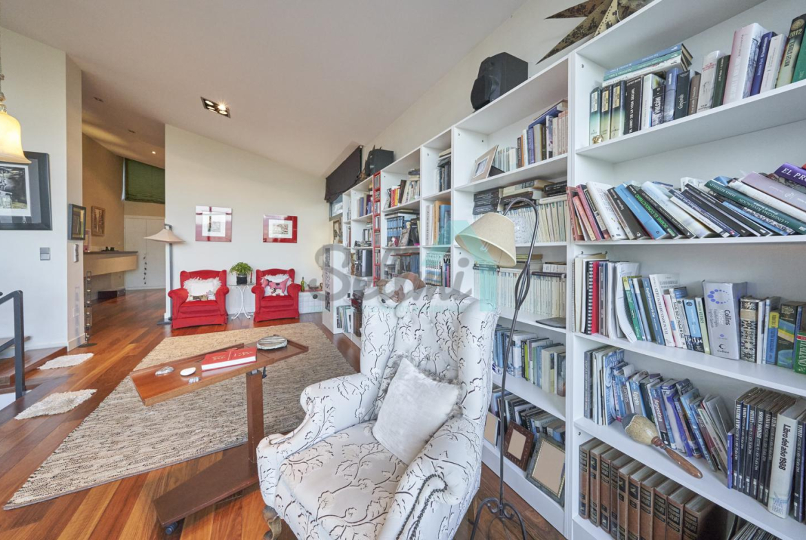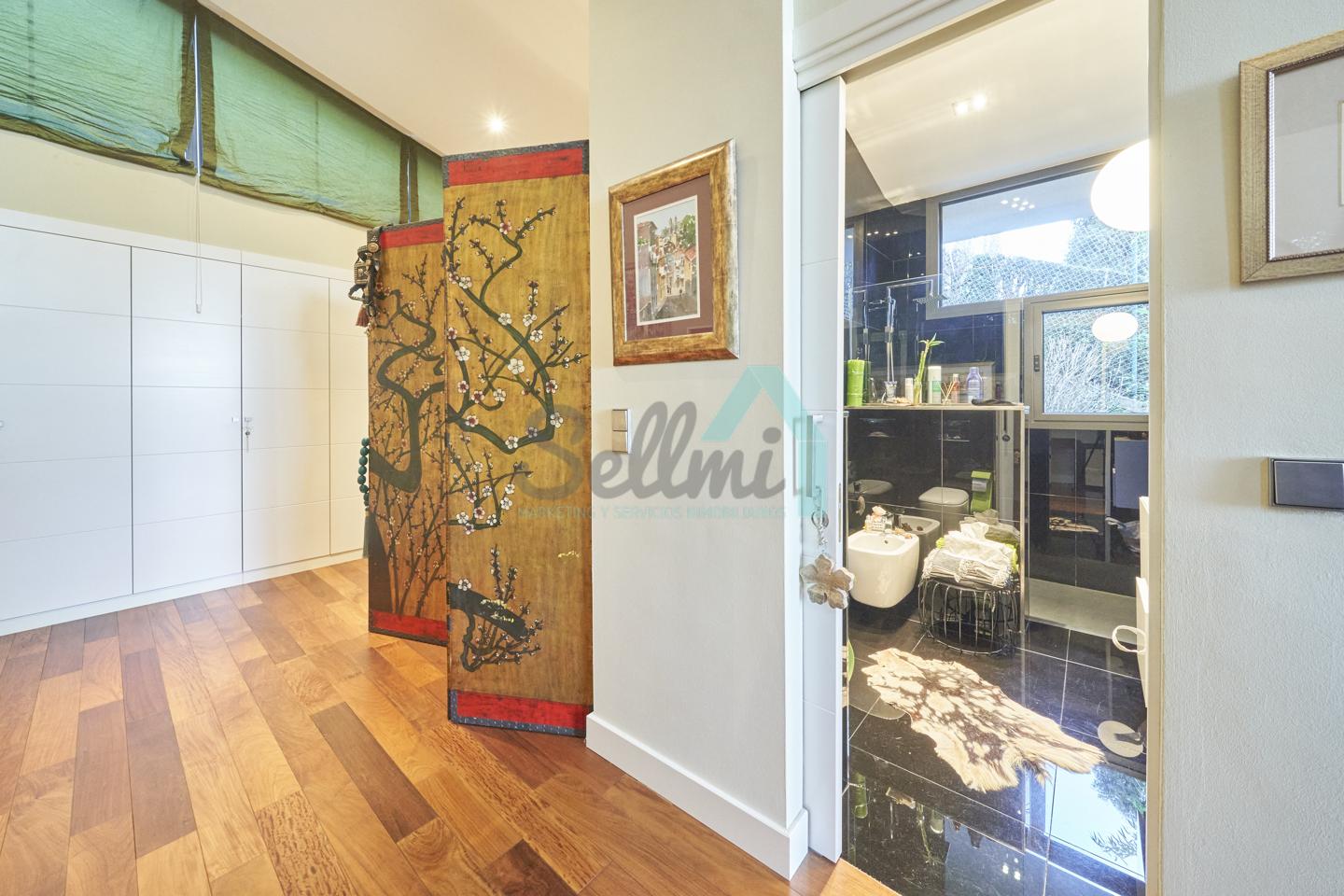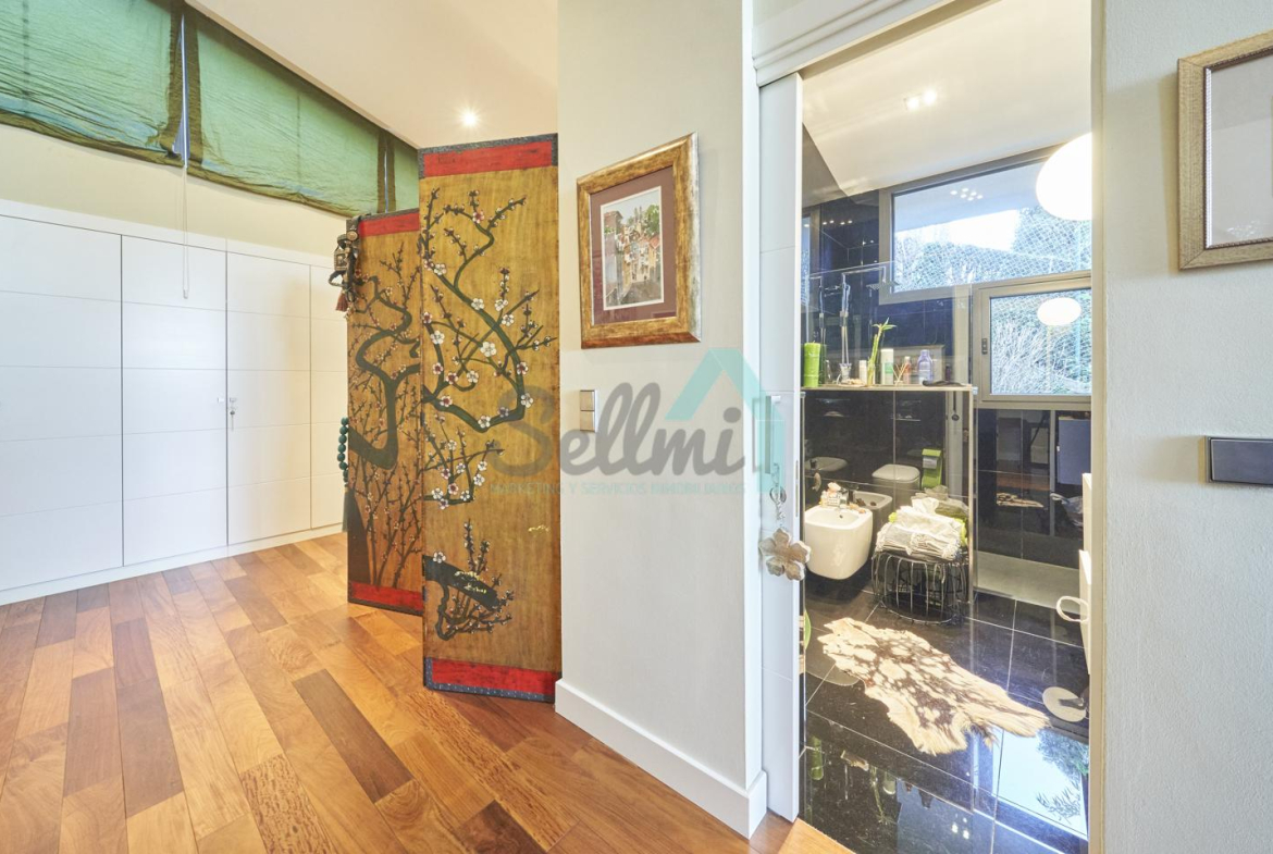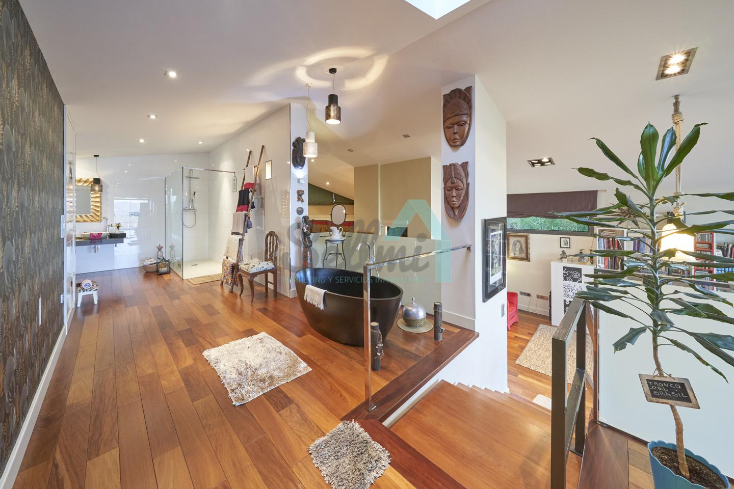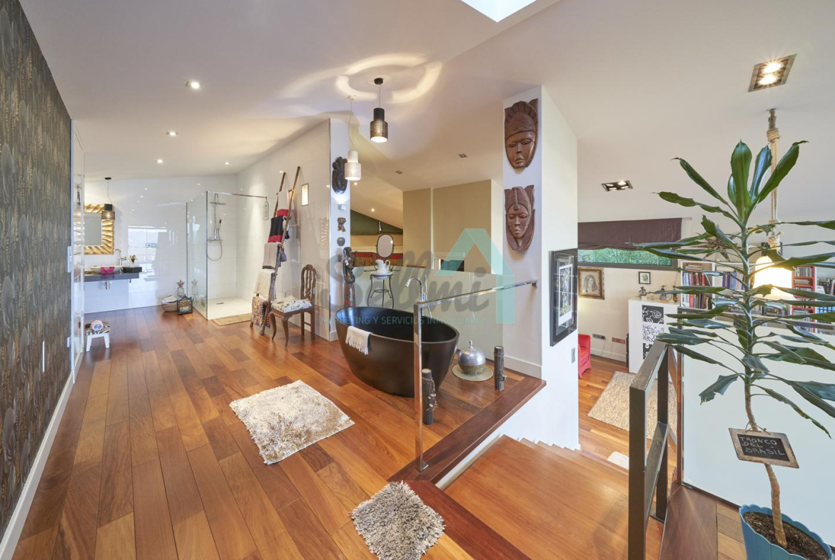 Planta segunda: despacho-biblioteca, dos habitaciones y dos baños. El dormitorio principal cuenta con terraza, vestidor y un enorme baño.