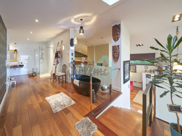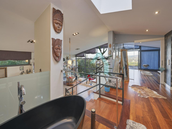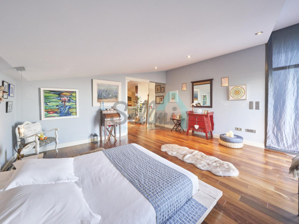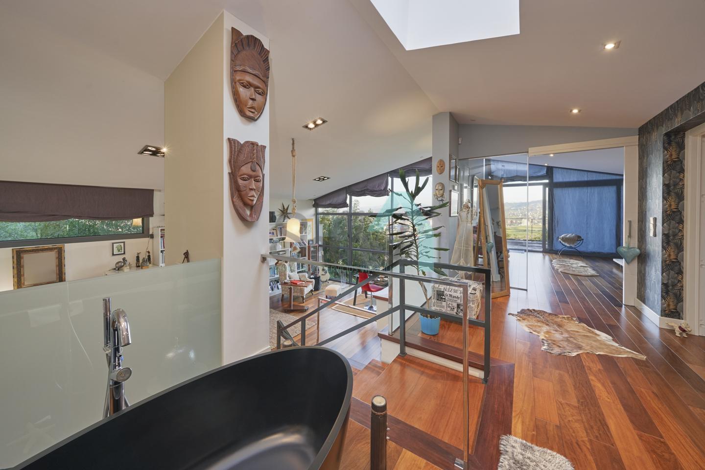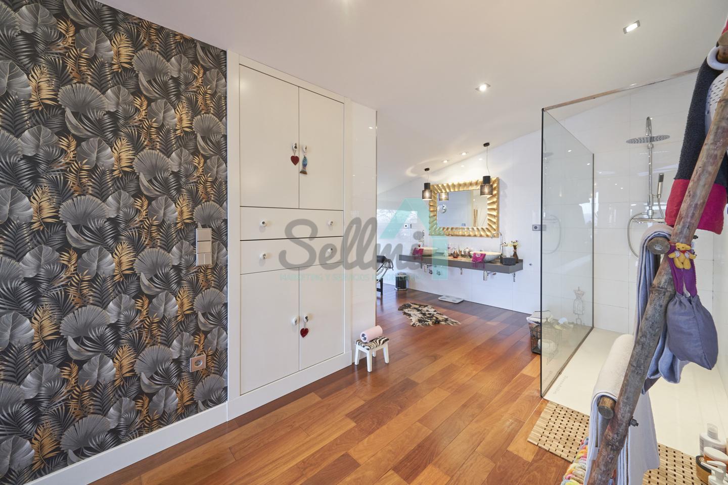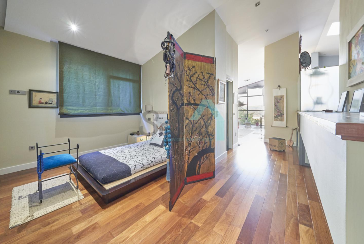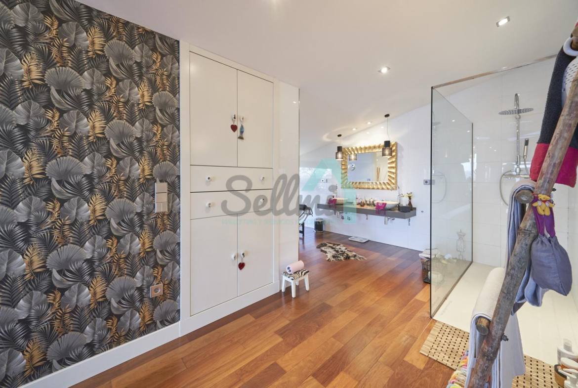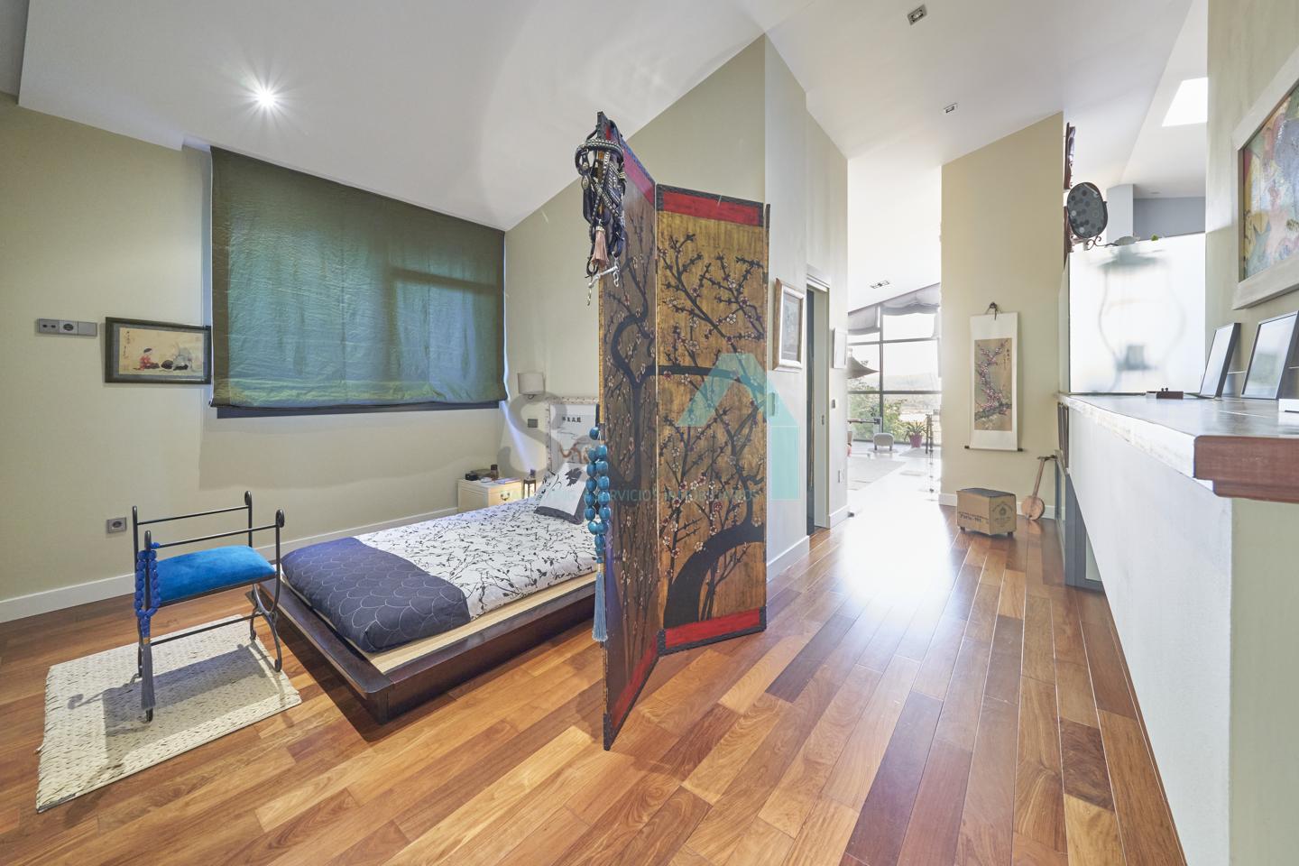 Planta segunda: despacho-biblioteca, dos habitaciones y dos baños. El dormitorio principal cuenta con terraza, vestidor y un enorme baño.