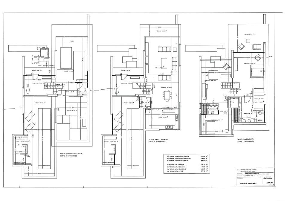 Tiene una superficie construida de 507 m² distribuidos en tres plantas.