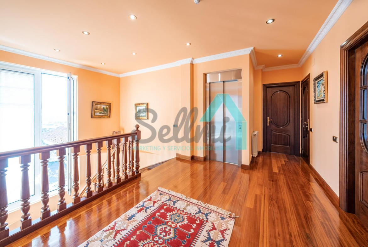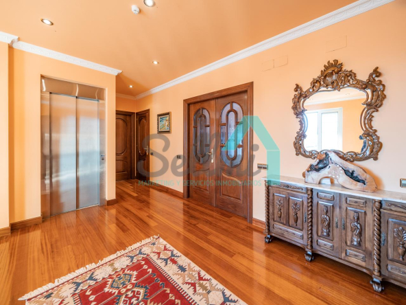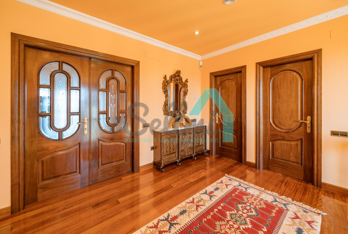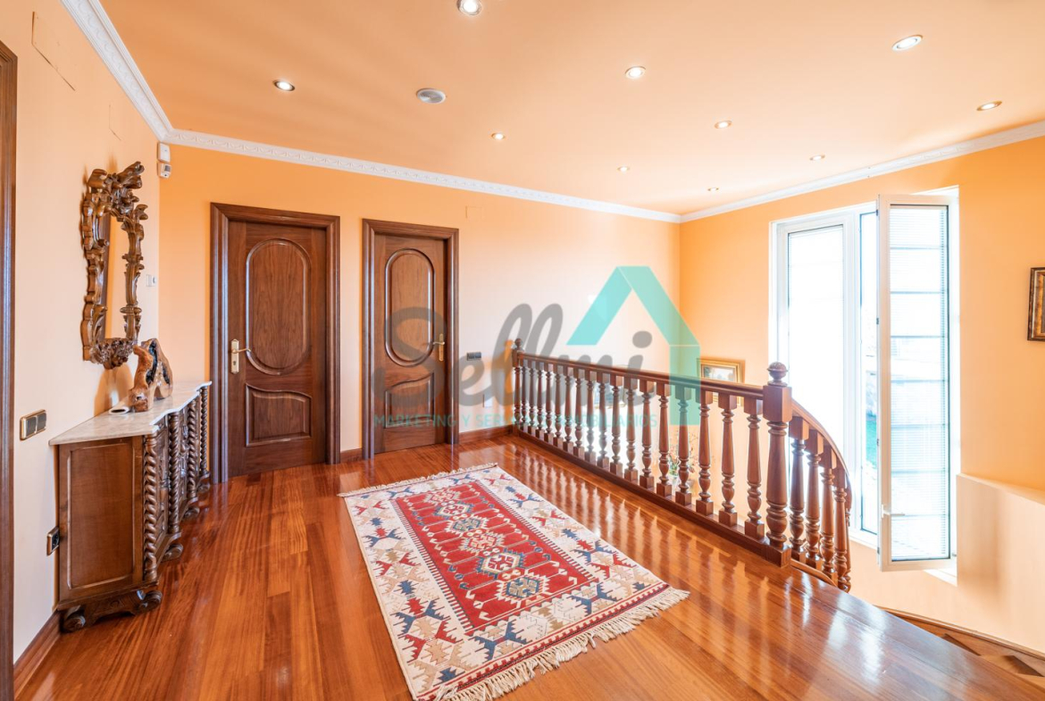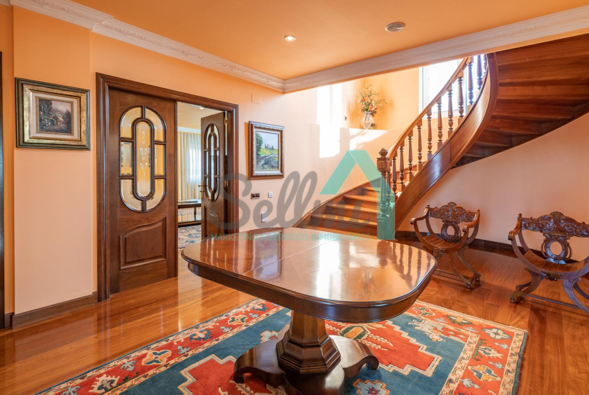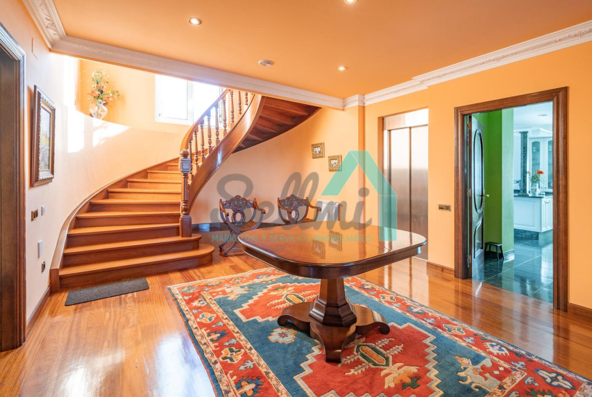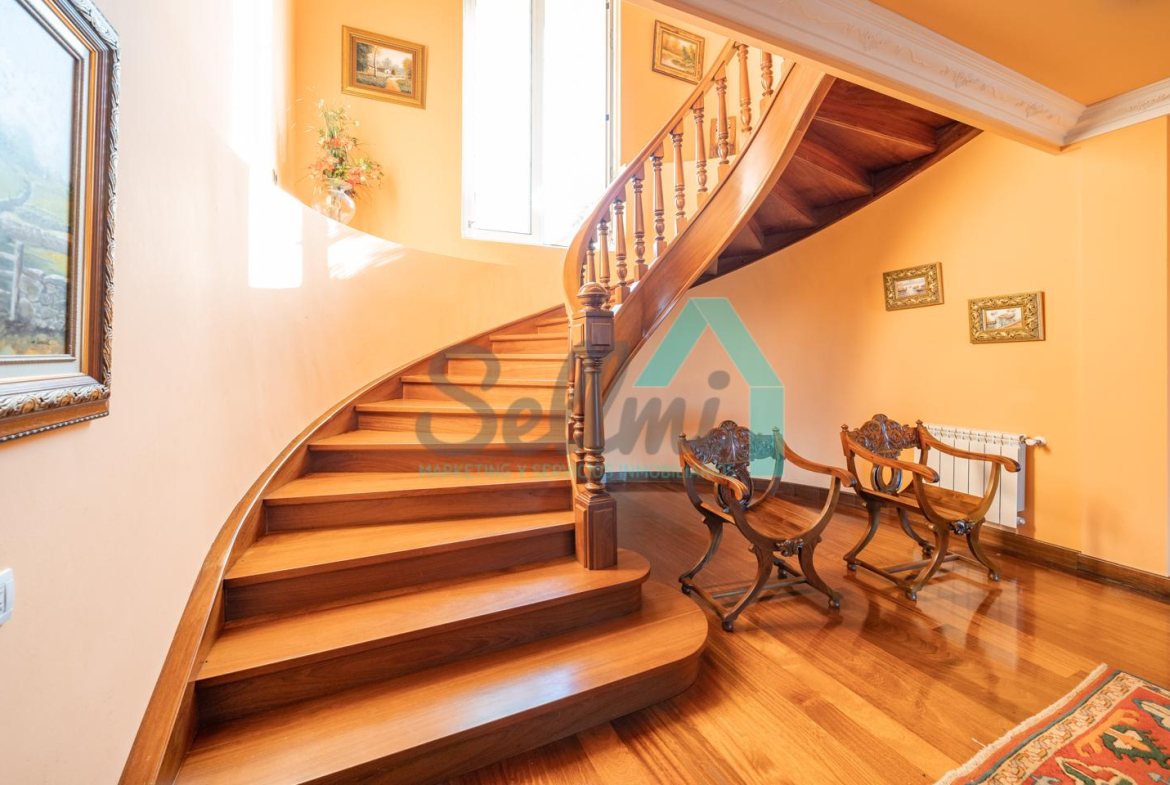 La vivienda dispone de calefacción de gasoil, suelos de madera de iroko y de gres, escalera de madera de iroko, carpintería interior de nogal, ventanas de doble acristalamiento, armarios empotrados, aspiración centralizada, domótica, hilo musical, cámaras de seguridad, alarma, puerta de seguridad, etc.