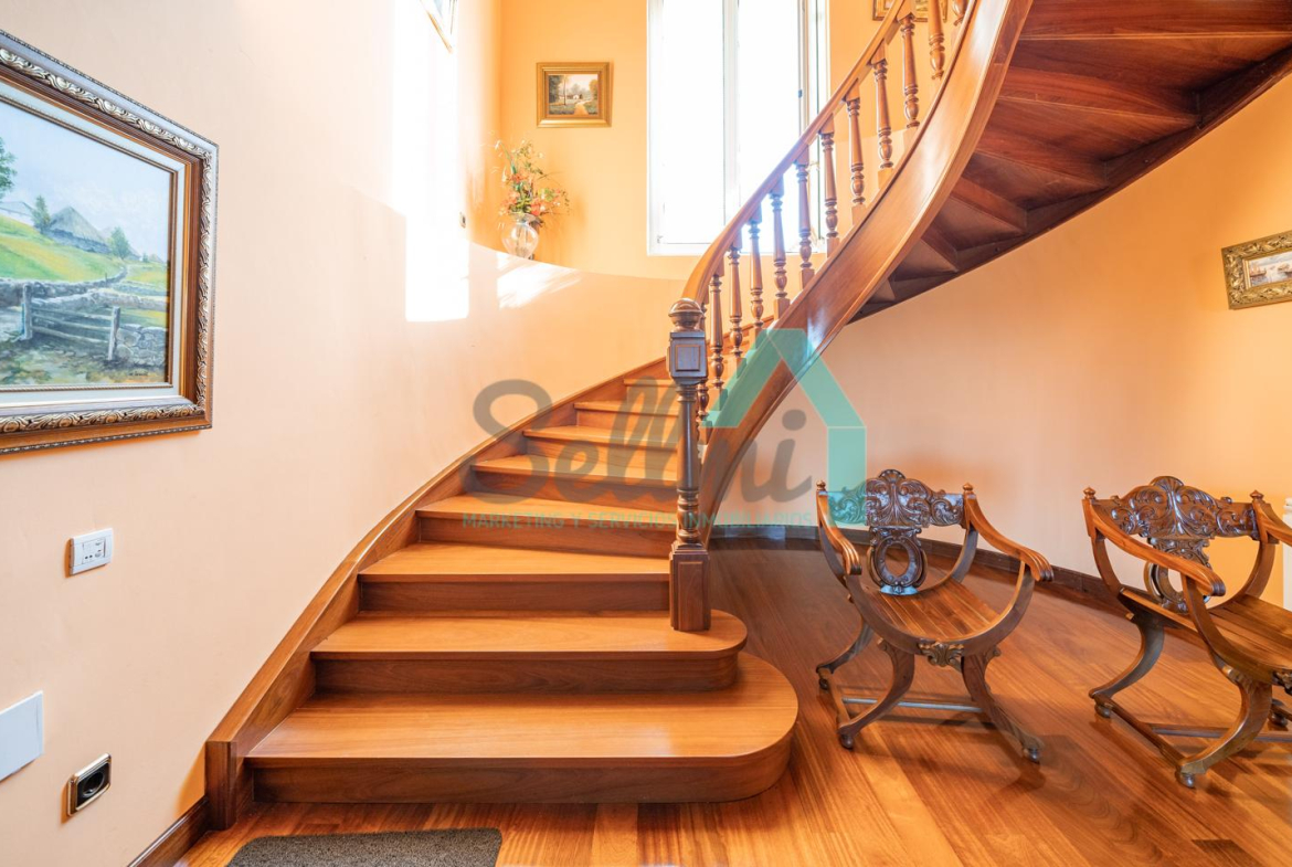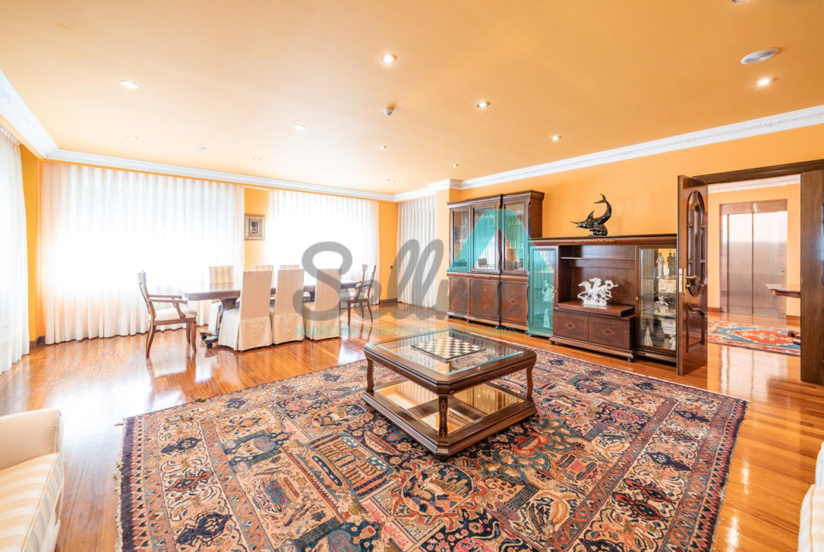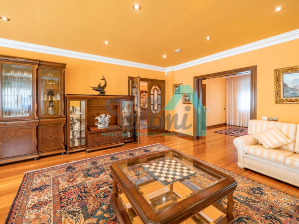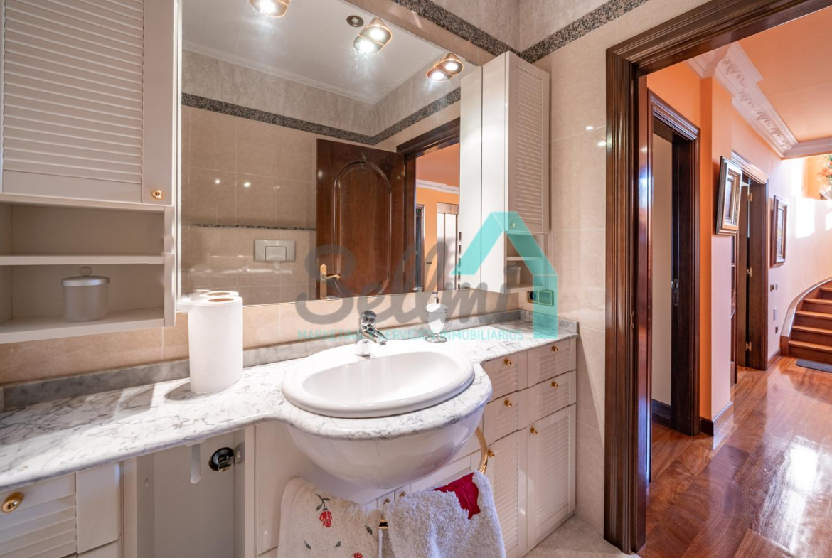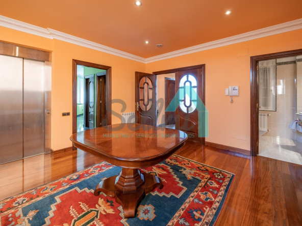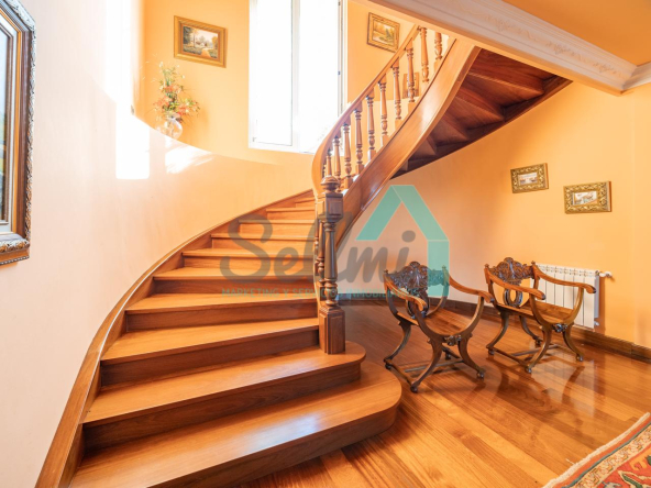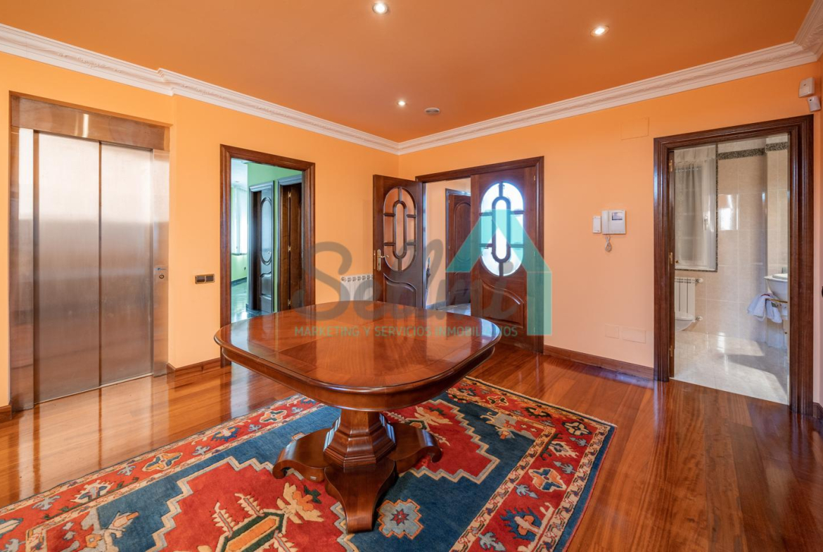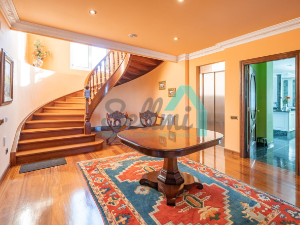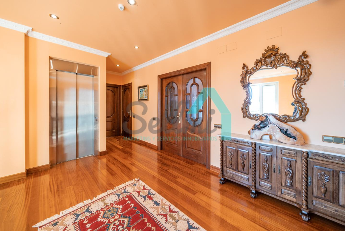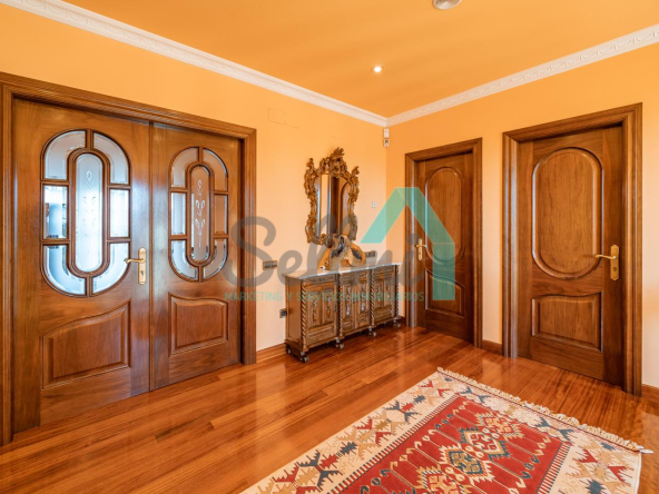 La vivienda dispone de calefacción de gasoil, suelos de madera de iroko y de gres, escalera de madera de iroko, carpintería interior de nogal, ventanas de doble acristalamiento, armarios empotrados, aspiración centralizada, domótica, hilo musical, cámaras de seguridad, alarma, puerta de seguridad, etc.