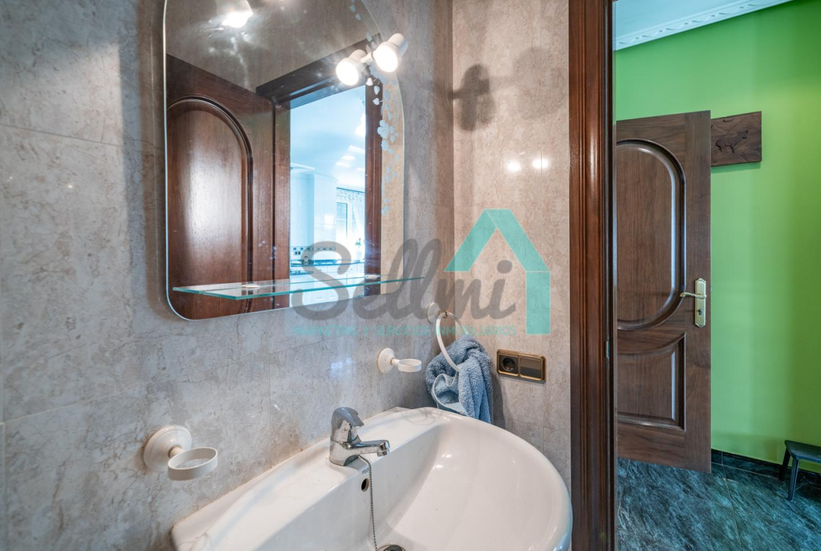 Planta principal: porche, un amplio hall de entrada, salón comedor, despacho, cocina amueblada y equipada con acceso a terraza, despensa, un baño completo y un aseo.