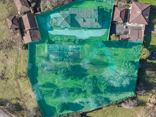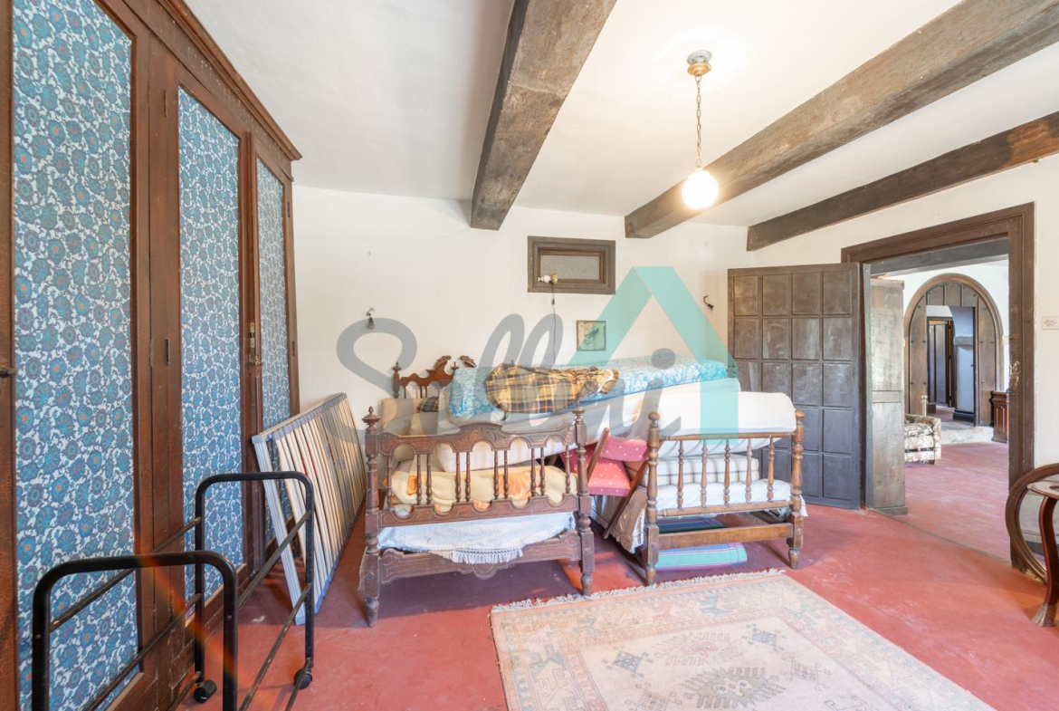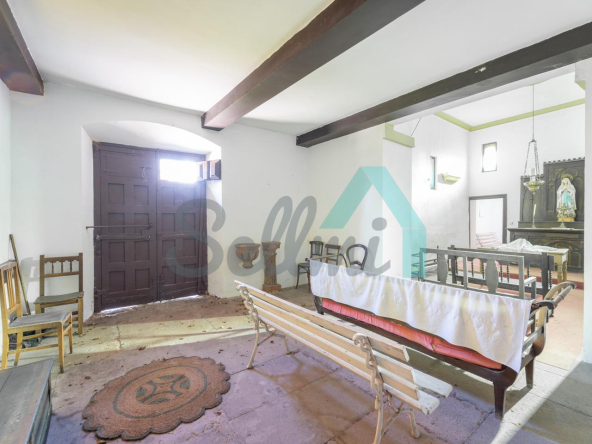 En cuanto a superficies, la planta baja, incluida la capilla, suma 336 m²; la planta principal, 315 m²; la torre, 49 m²; el garaje, 30 m²; y el bajocubierta, 250 m². En total, el inmueble —catalogado— alcanza aproximadamente 980 m² construidos. El conjunto se sitúa en una finca de casi 12.500 m², con un pórtico de entrada y un cierre perimetral de piedra que delimita los jardines.