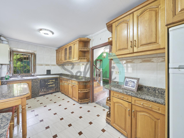 La casa tiene una superficie construida de 150 m2 distribuidos en tres plantas. Cuenta con salón, cocina, cinco habitaciones, dos baños, dos terrazas/corredores y porche.