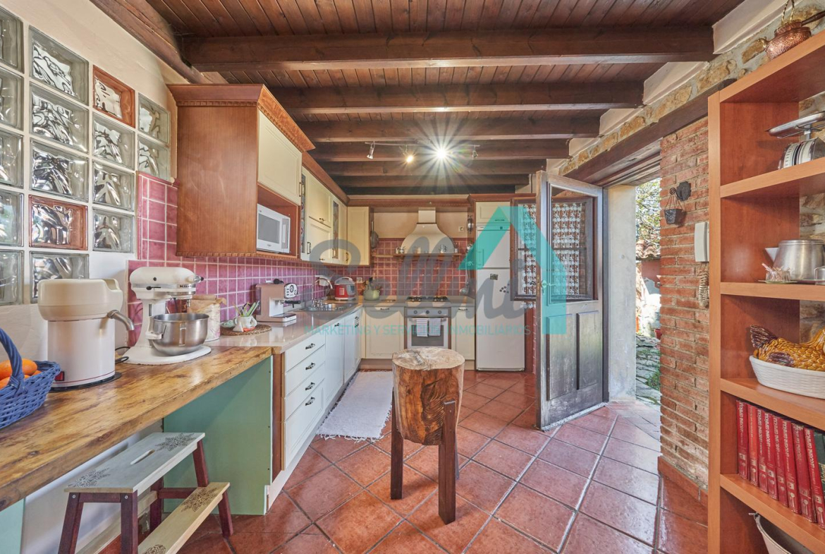 Planta principal: hall de entrada, salón comedor con chimenea, cocina amueblada, dos habitaciones y un baño completo.