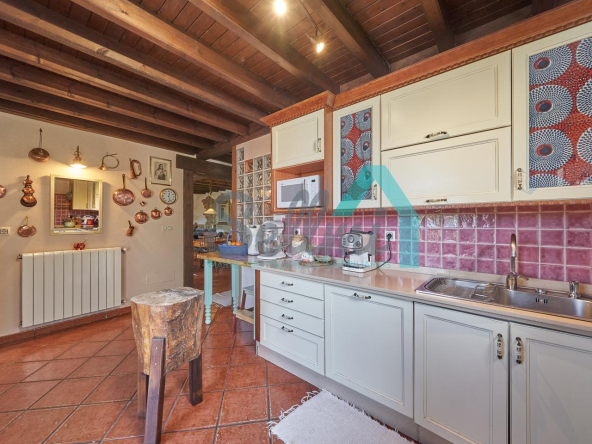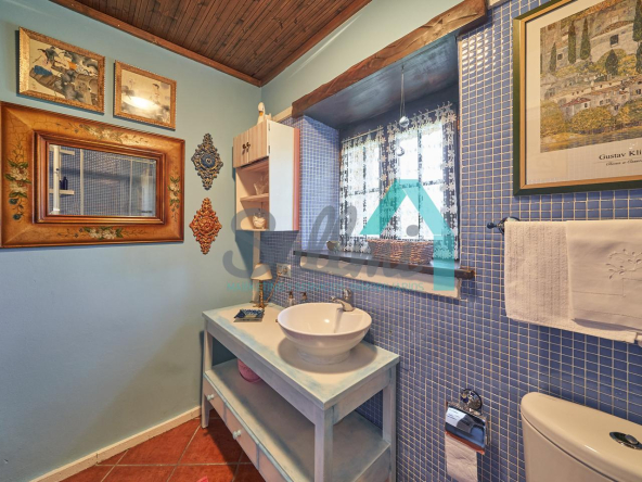 Dispone de suelos de parquet y gres, ventanas de madera de castaño con contraventanas, calefacción individual de gasoil (depósito de 1.000 litros), etc.
