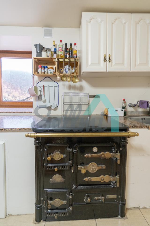 La vivienda, que ha sido reformada y se encuentra en muy buen estado, tiene una superficie construida de 140 m2 distribuidos en dos plantas. Cuenta con porche cerrado, cocina-comedor con chimenea, dos habitaciones, un baño completo, amplio trastero/almacén con estufa de pellets y garaje.