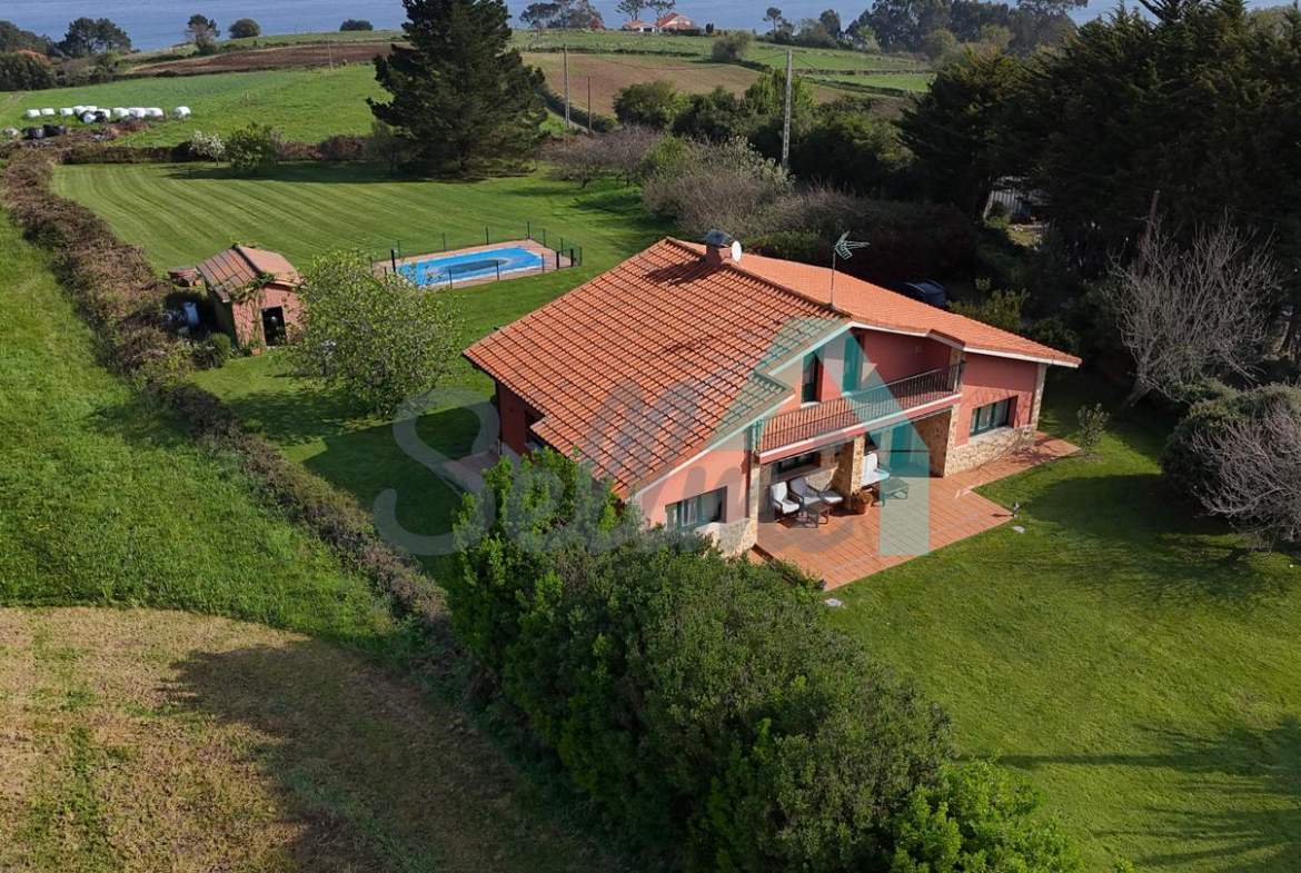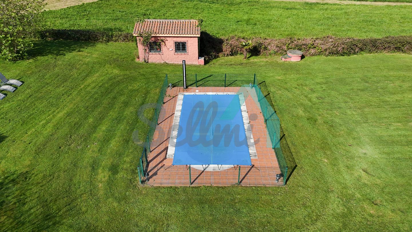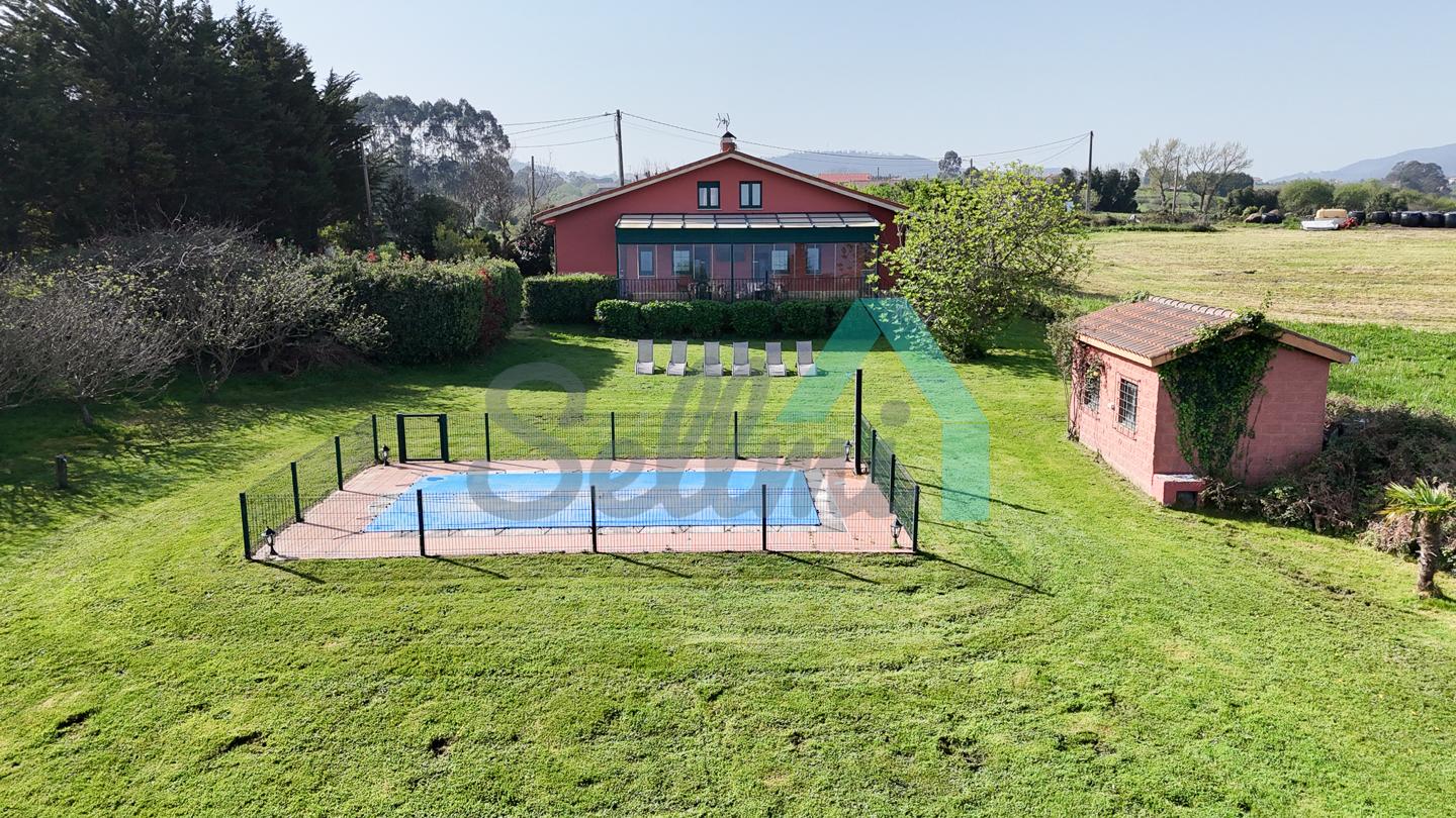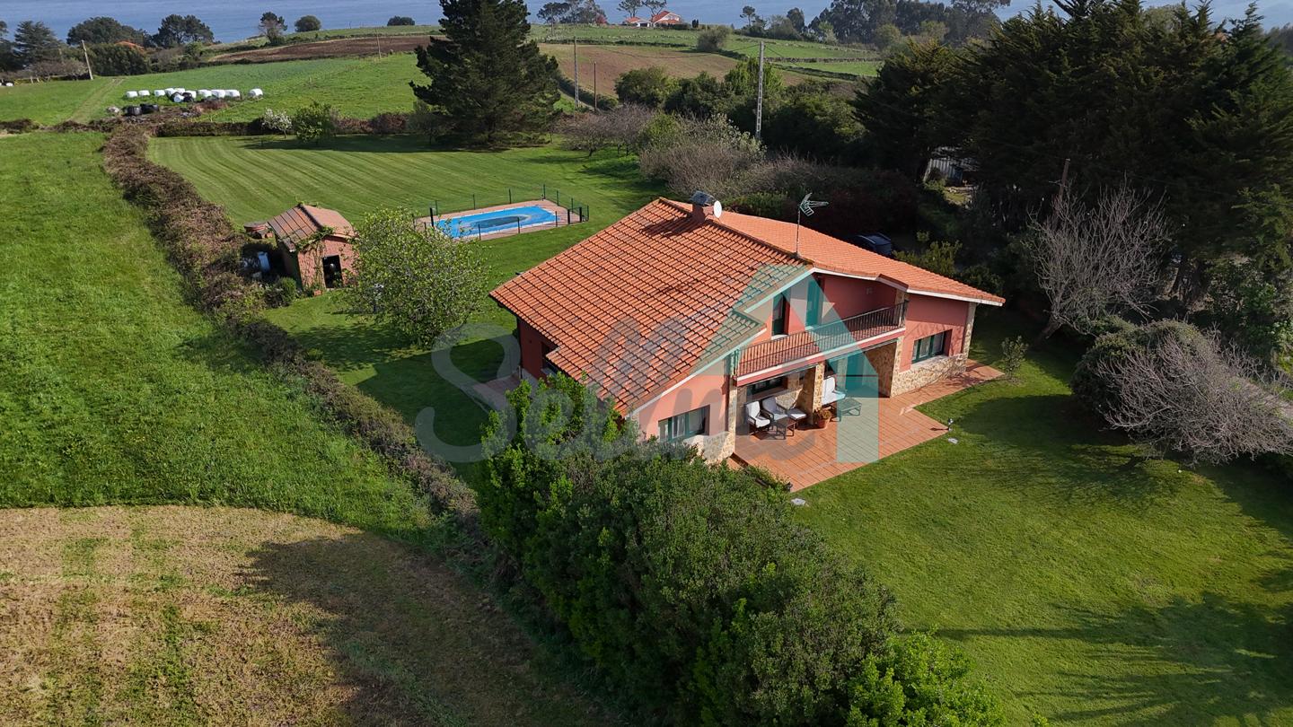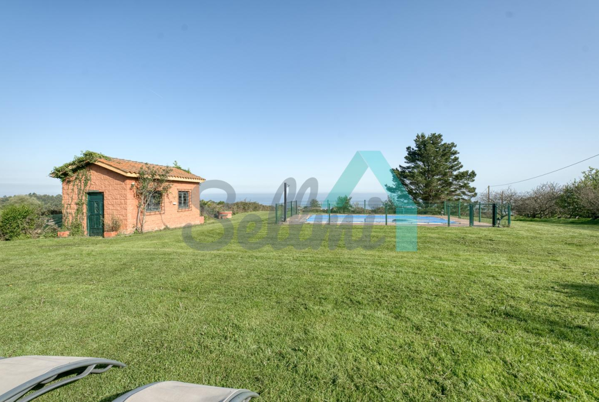 Chalet independiente en venta en San Feliz, Villaviciosa. Se ubica en una parcela cerrada de 4.036 m2, con vistas al mar, amplia zona ajardinada con árboles frutales, aparcamiento para cuatro coches, pozo propio con agua, riego automático, caseta de aperos y piscina de seis metros por tres con depuradora y caseta para albergar la maquinaria.