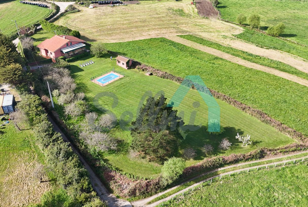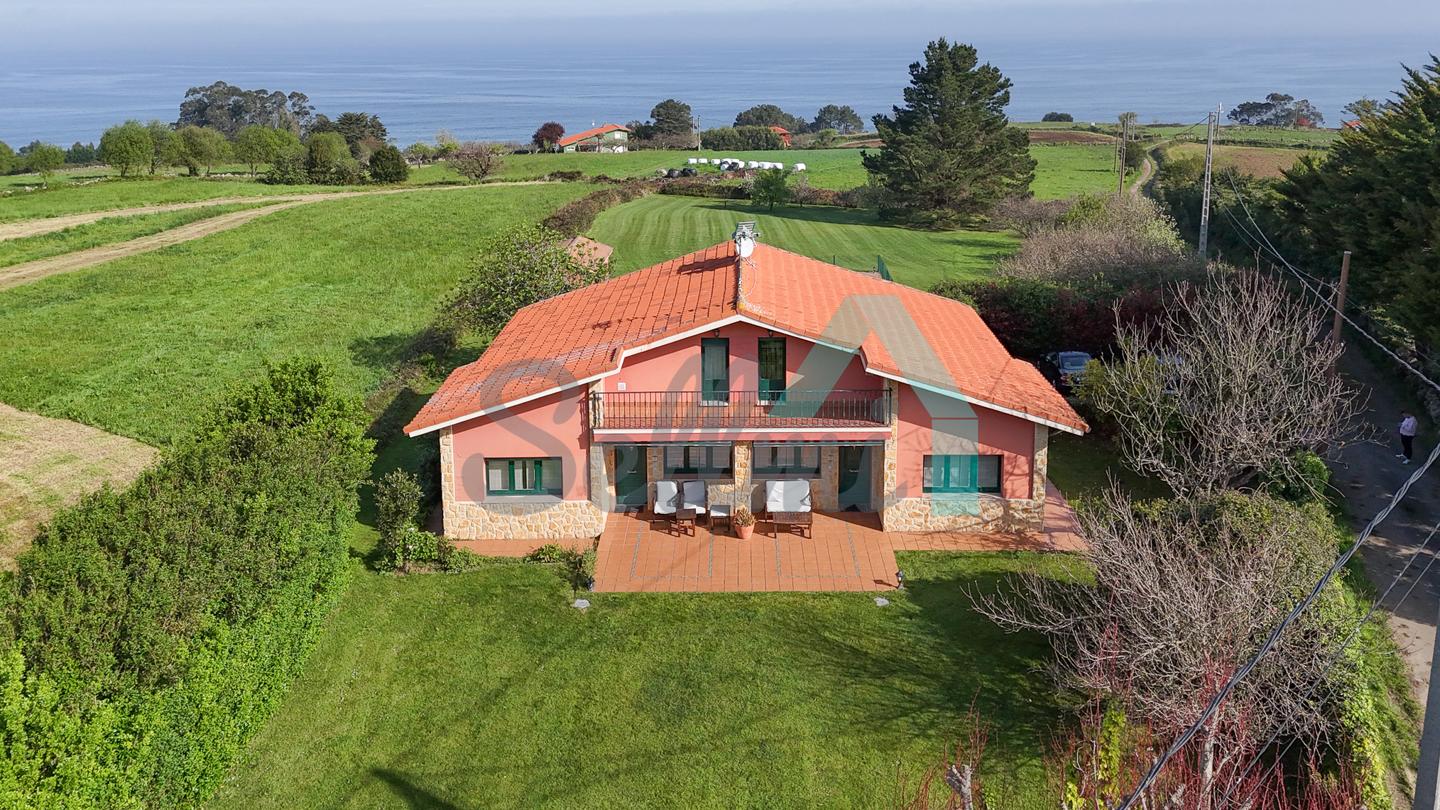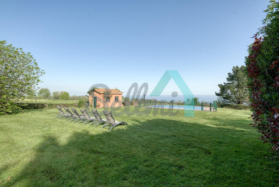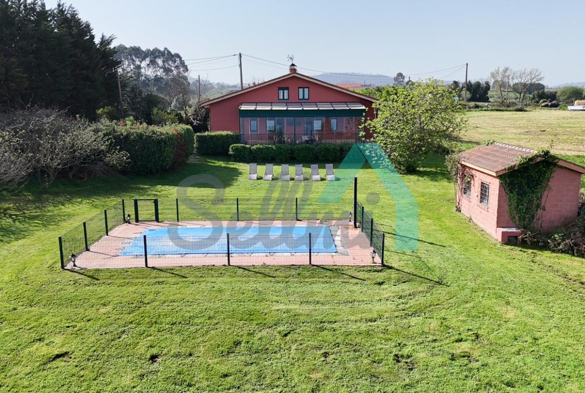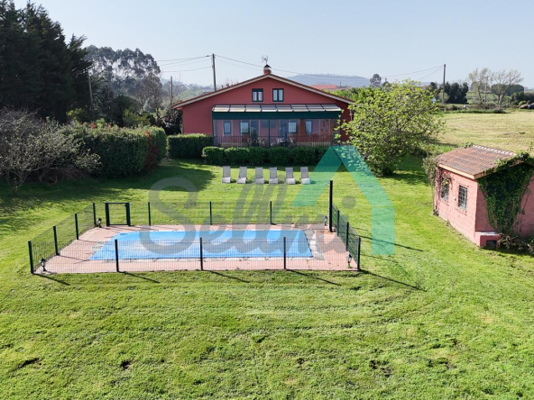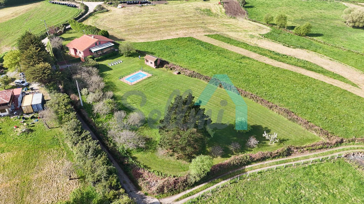 Chalet independiente en venta en San Feliz, Villaviciosa. Se ubica en una parcela cerrada de 4.036 m2, con vistas al mar, amplia zona ajardinada con árboles frutales, aparcamiento para cuatro coches, pozo propio con agua, riego automático, caseta de aperos y piscina de seis metros por tres con depuradora y caseta para albergar la maquinaria.