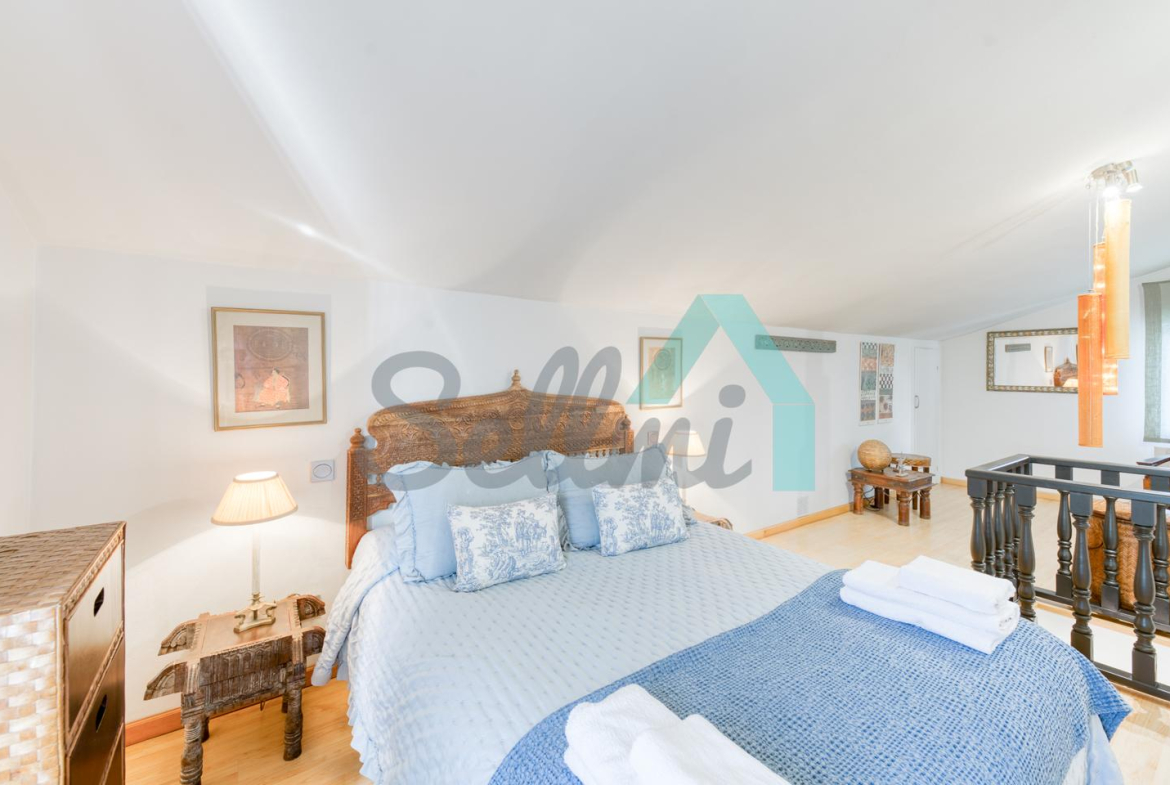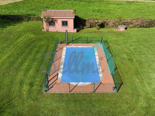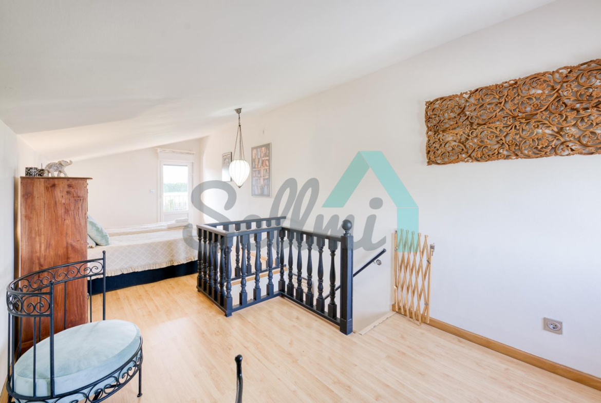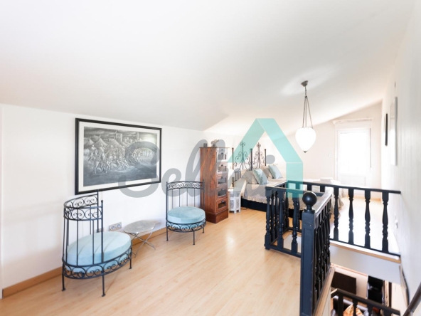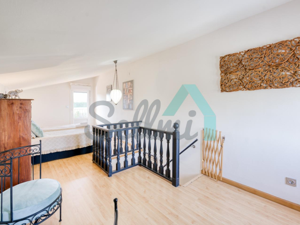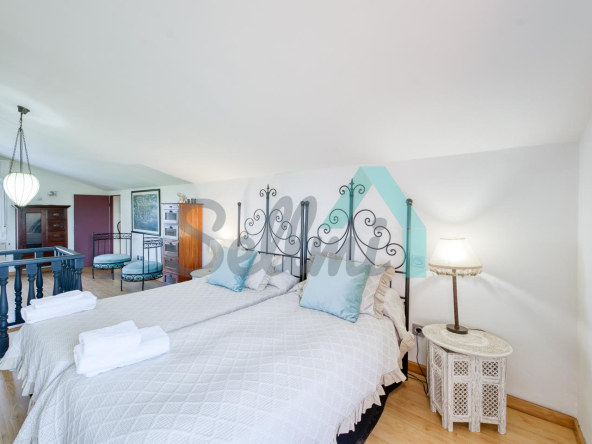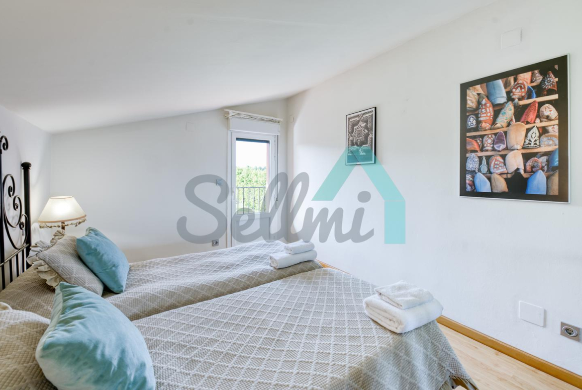 La vivienda, construida en 1978 y que ha sido totalmente reformada, tiene una superficie de 255 m2 distribuidos en dos plantas. Actualmente se encuentra dividida en dos viviendas independientes y simétricas.