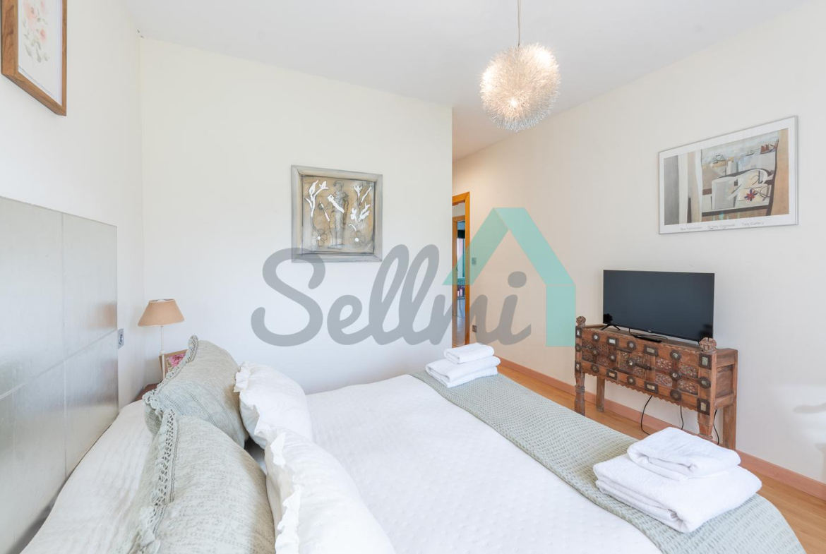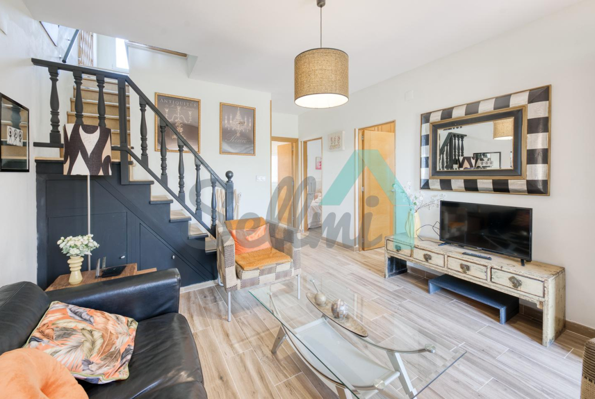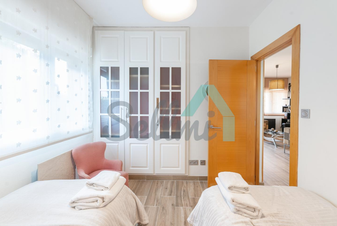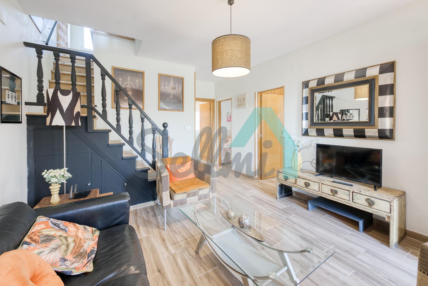 Cada parte cuenta con salón comedor, cocina amueblada y equipada, dos habitaciones (una de ellas con baño en suite) y dos baños completos en planta baja y con terraza, una habitación y trastero en planta alta.