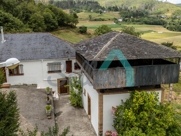 Casa independiente en venta en San Pedro de Paredes, una pequeña localidad perteneciente a Valdés. Se ubica sobre una parcela de 16.191 m² que cuenta también con una panera.