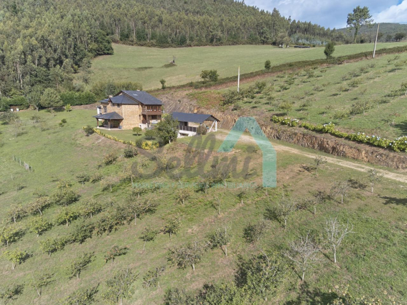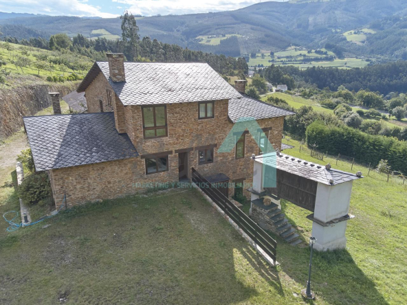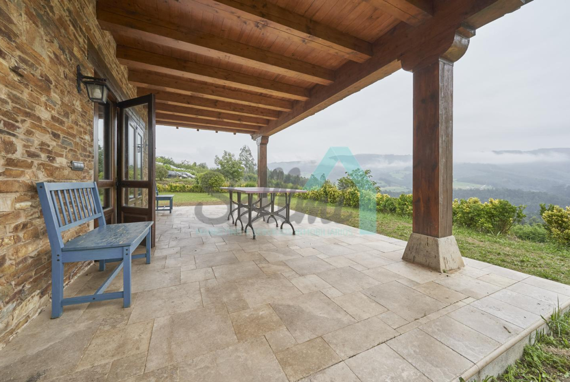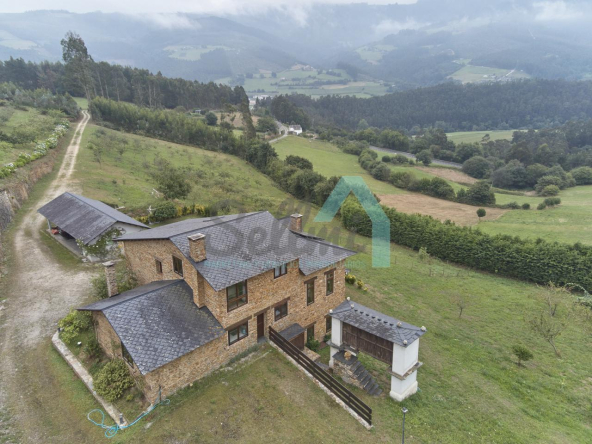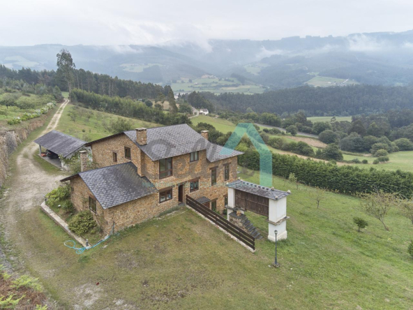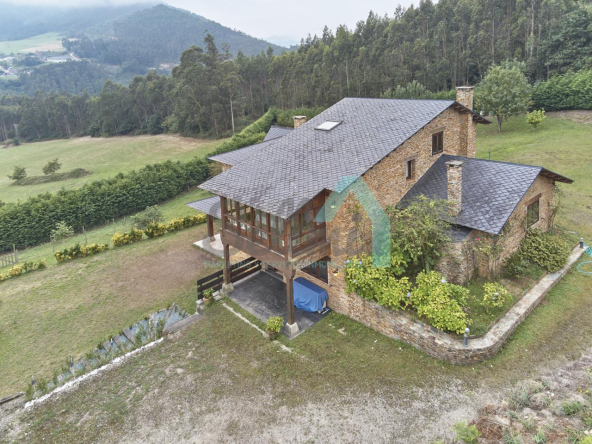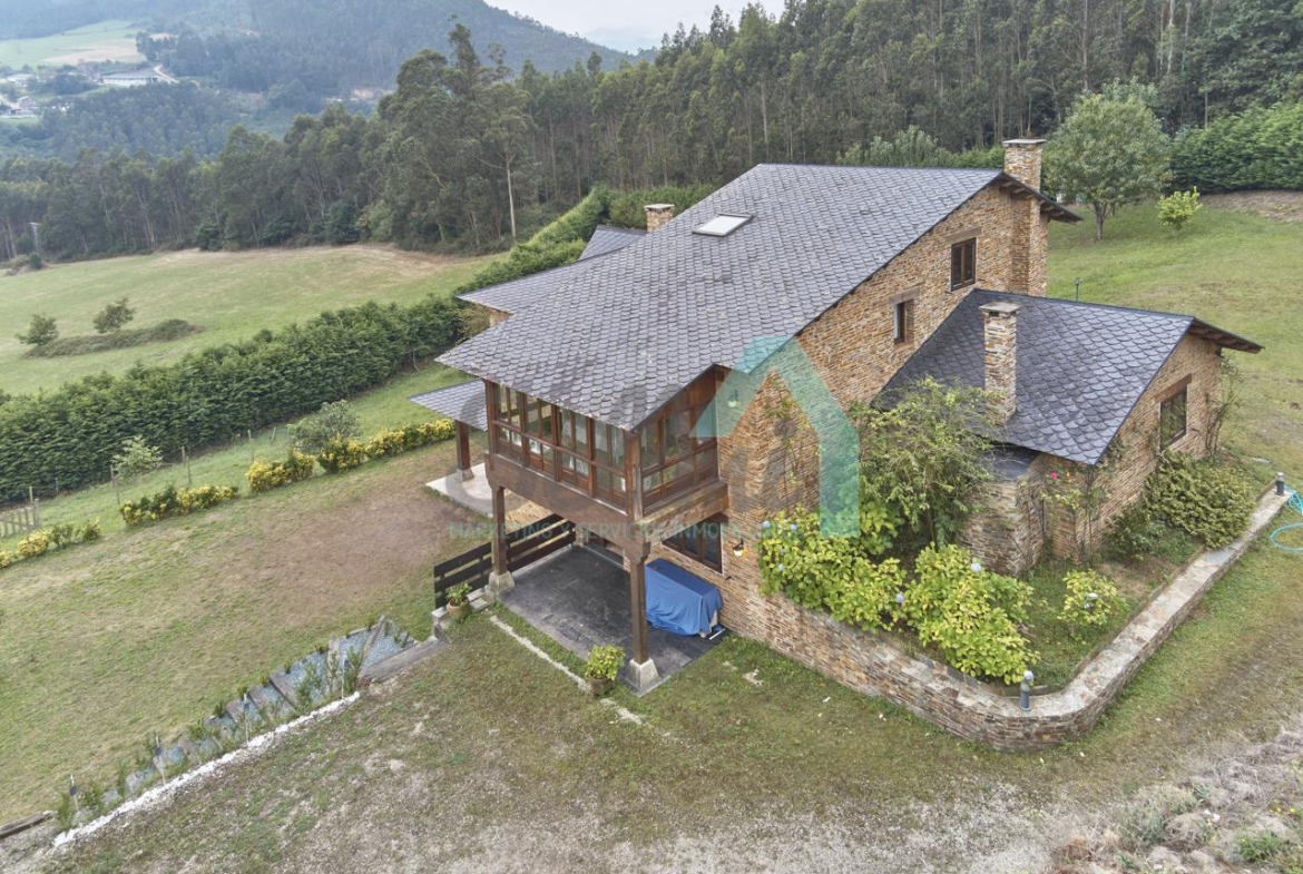Exclusiva casa en venta situada en San Tirso de Abres, Asturias. Cuenta con una parcela de 25.000 m2, con zona ajardinada, plantación de manzanos y un bosque.