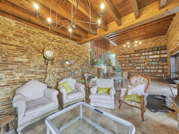 Cuenta con hall de entrada, salón comedor con chimenea, cocina amueblada y equipada (con electrodomésticos de primeras marcas y horno de leña), despensa, lavandería, comedor independiente, cinco habitaciones, seis baños, galería, cuarto trastero/ropero y un sótano dividido en varias estancias.