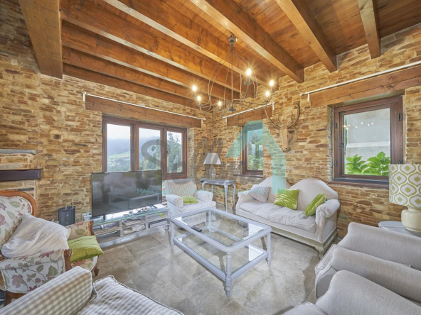 La casa se construyó empleando materiales de primera calidad y dispone de suelos de tarima y gres, ventanas de doble acristalamiento con contraventanas, armarios empotrados, alarma, domótica controlada por móvil, paneles solares para ACS, calefacción por suelo radiante, estanterías de castaño en el salón, puerta de seguridad, etc.