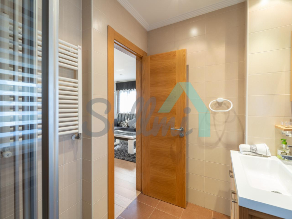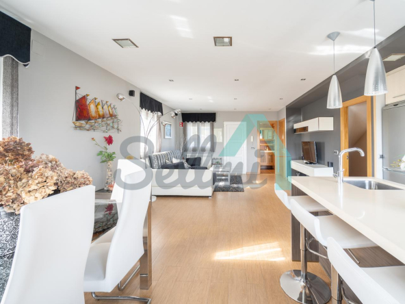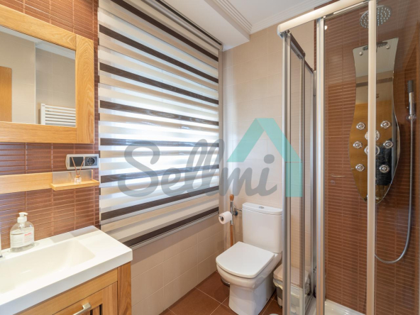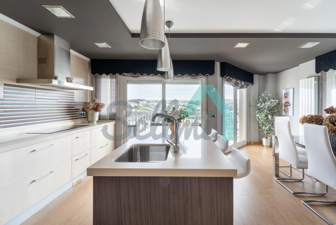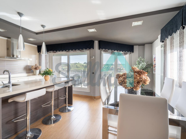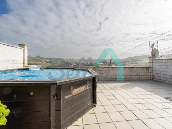 Se vende amueblada y dispone de armarios empotrados, ventanas de PVC con doble acristalamiento y oscilobatientes, suelos de tarima y gres, aspiración centralizada, calefacción individual de gasoil con depósito de 1.000 litros, puerta de seguridad, etc. Cuenta con licencia de Vivienda de Uso Turístico (V.U.T.).