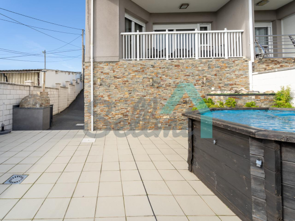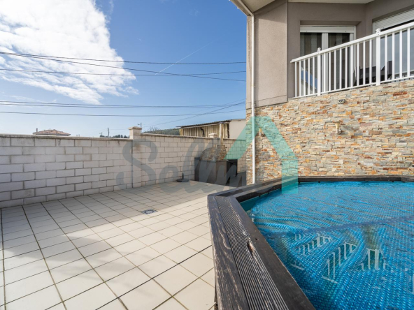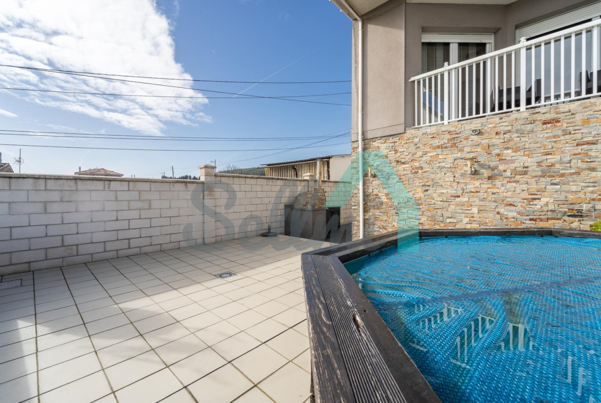 Se ubica sobre una parcela de 214 m2 con portón automático, zona de aparcamiento exterior, horno de leña, porche delantero y terraza con piscina.