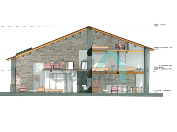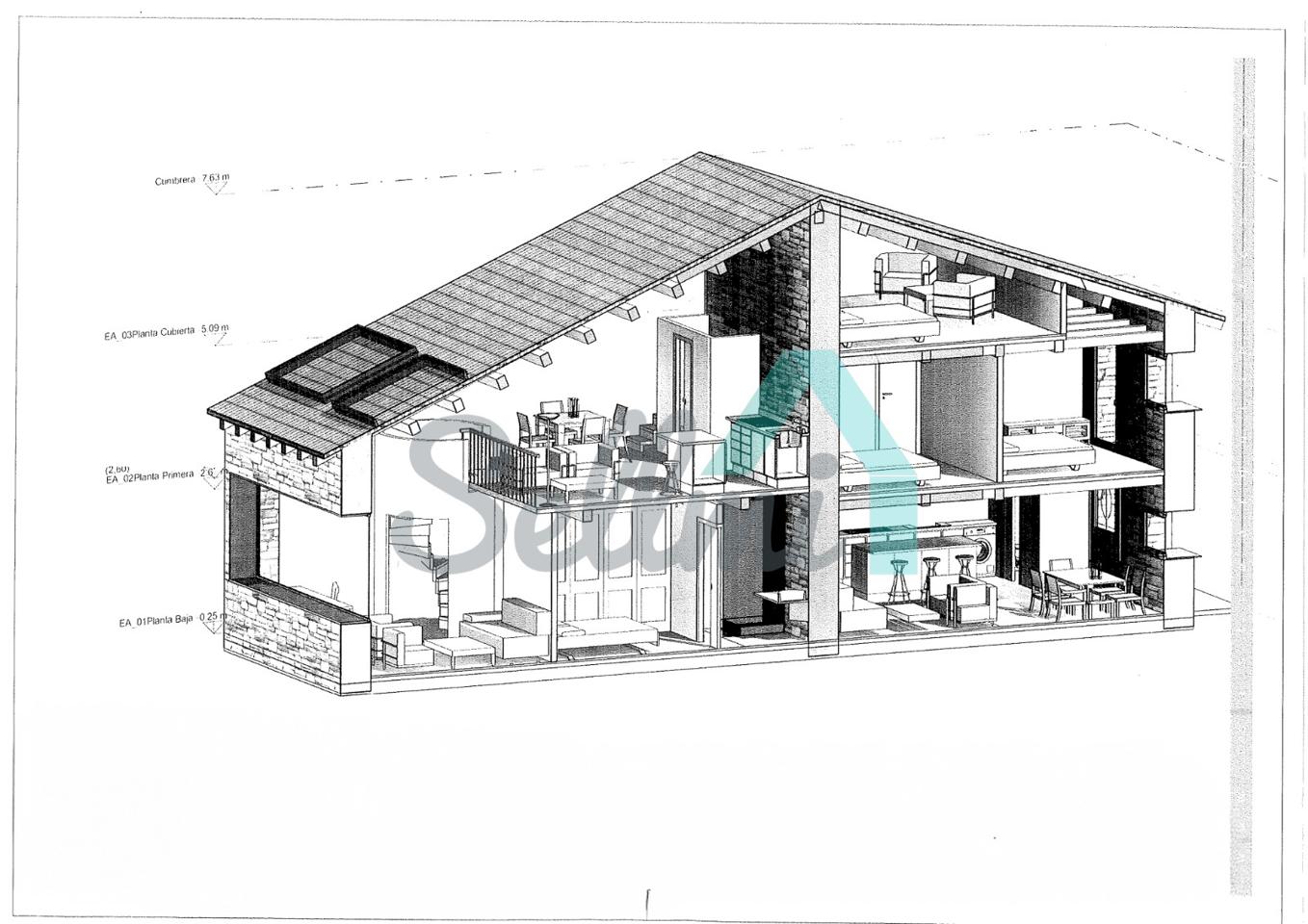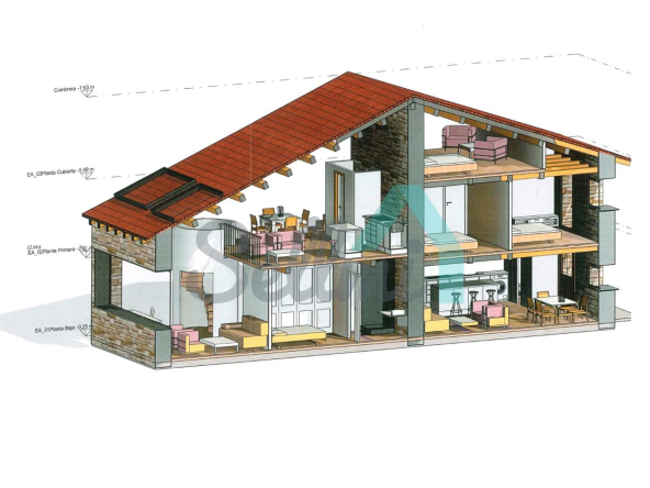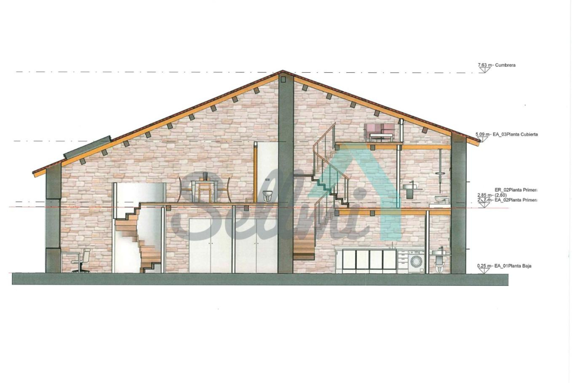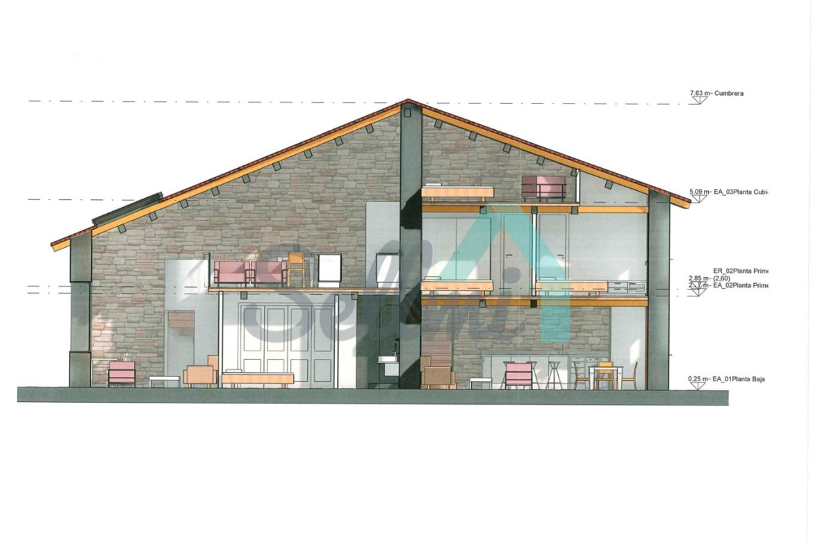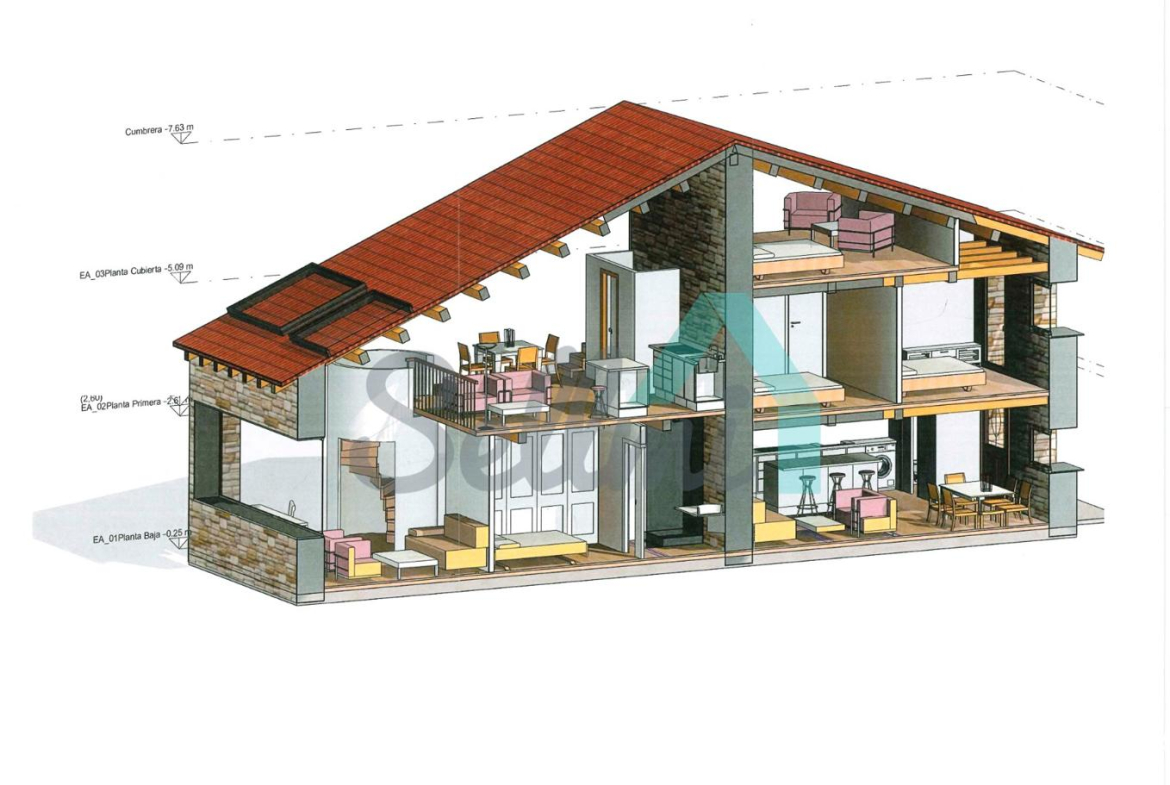 La casa, construida en piedra en 1830, tiene una superficie de 103 m2 distribuidos en dos plantas más una buhardilla y se encuentra en estado de reforma integral. La fachada se encuentra en buen estado y el tejado es nuevo.