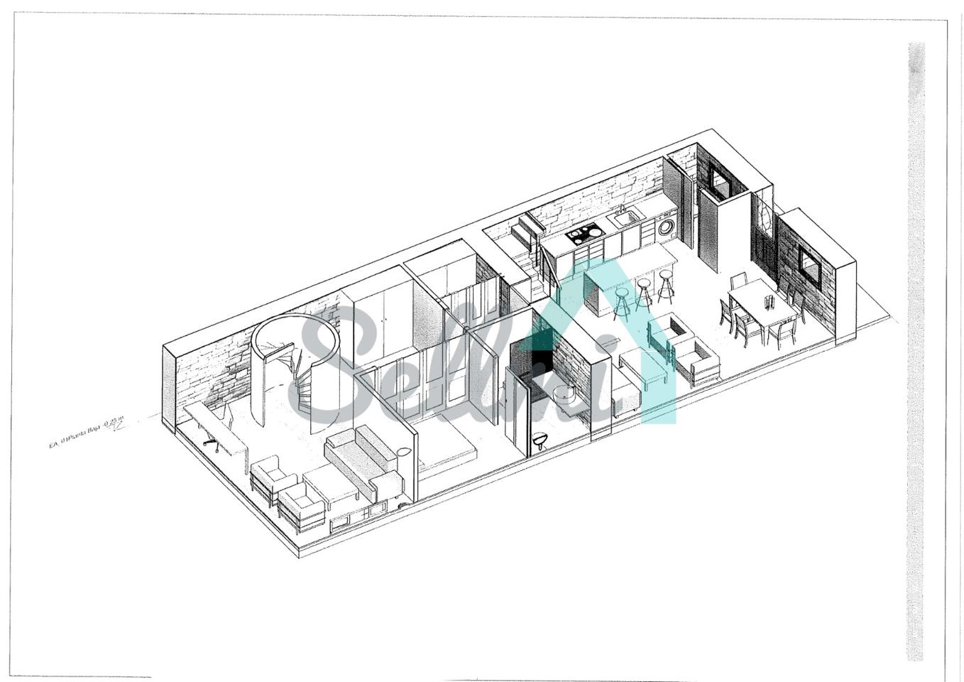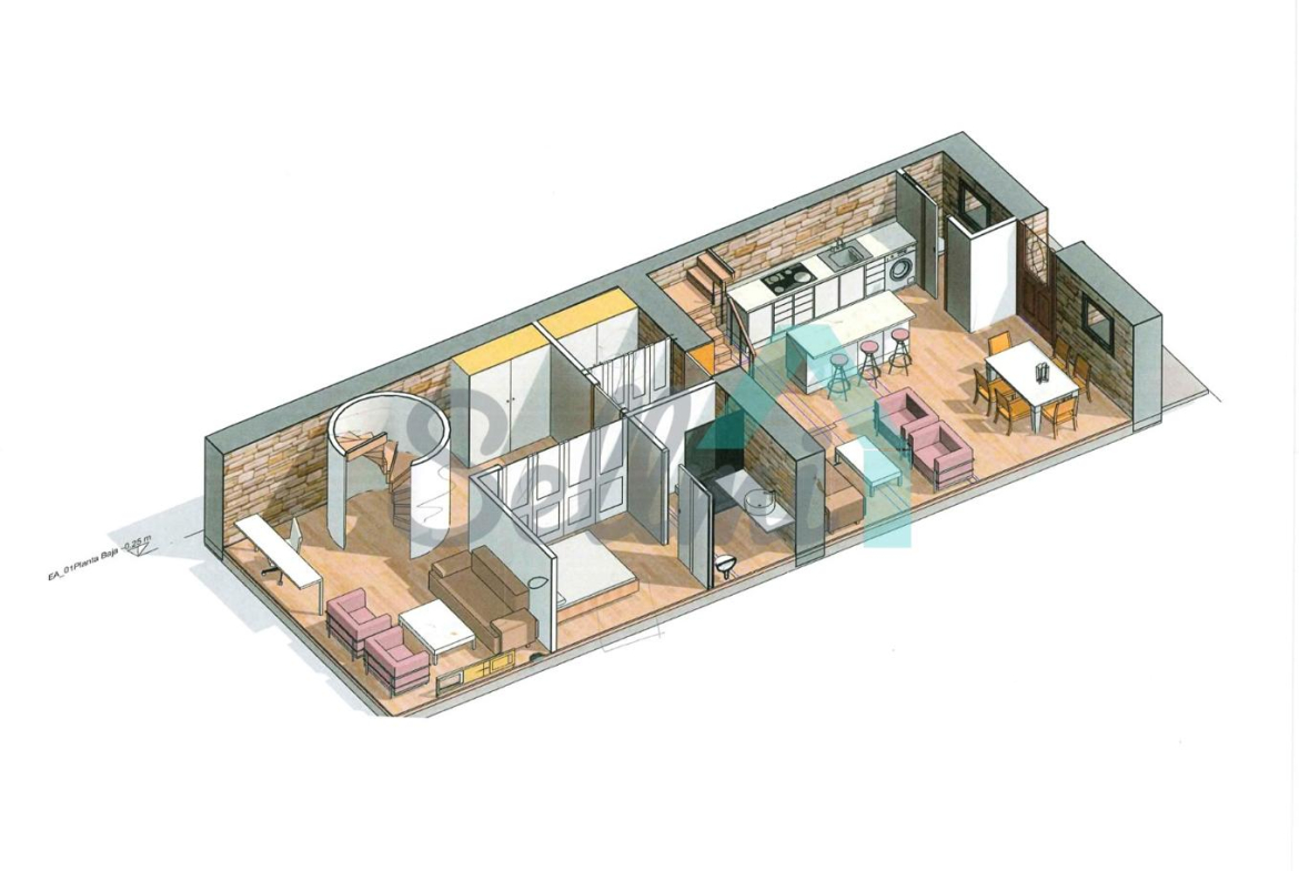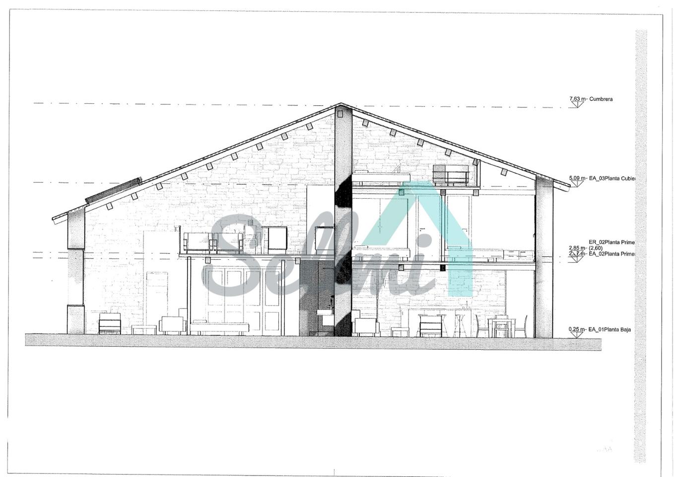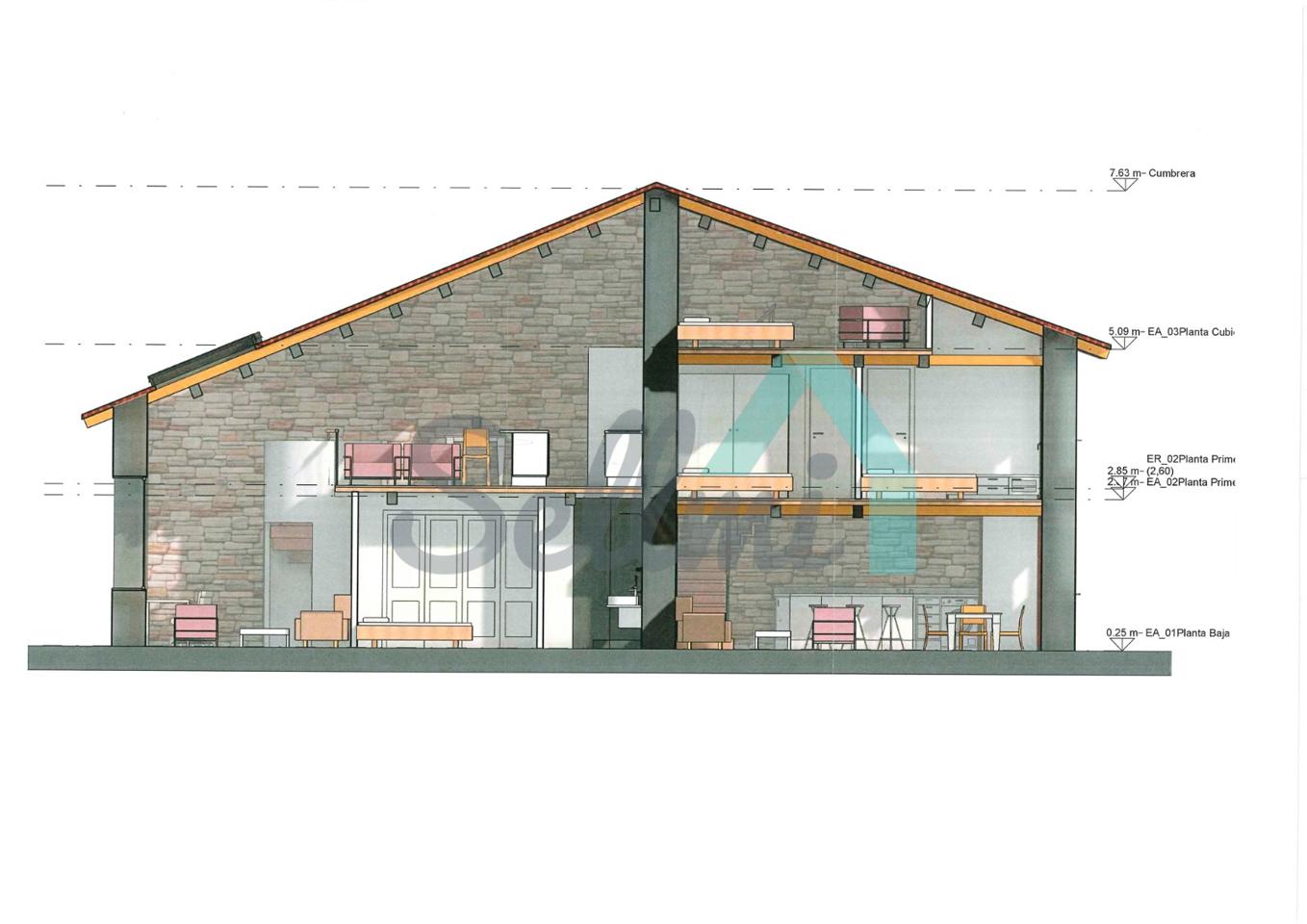 La casa, construida en piedra en 1830, tiene una superficie de 103 m2 distribuidos en dos plantas más una buhardilla y se encuentra en estado de reforma integral. La fachada se encuentra en buen estado y el tejado es nuevo.