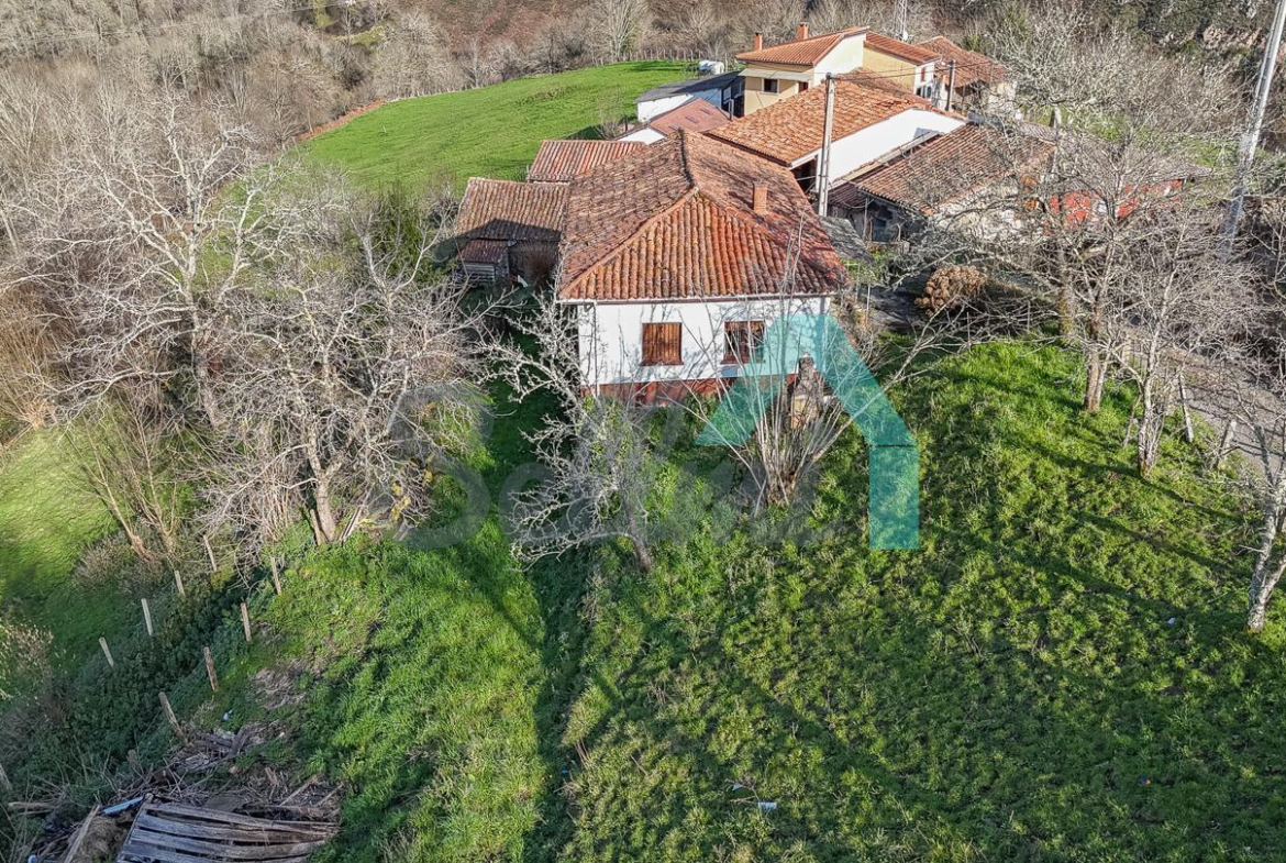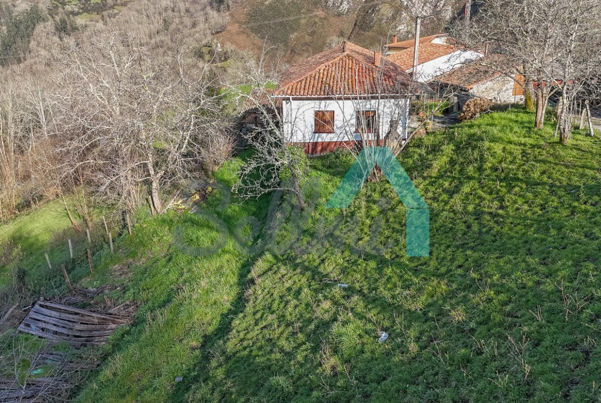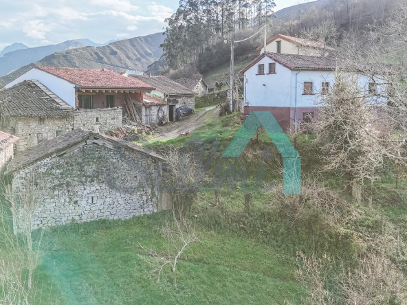 Conjunto de varias edificaciones y parcelas en venta situadas en Aldea Xerra, una pequeña localidad perteneciente a Piloña.