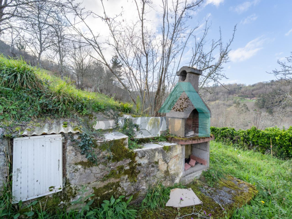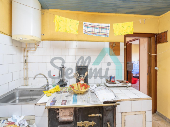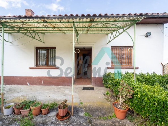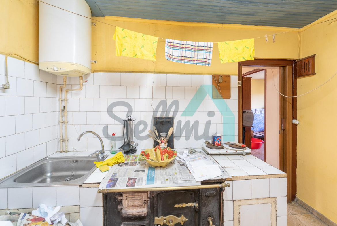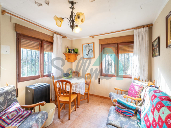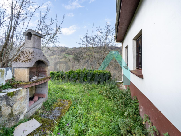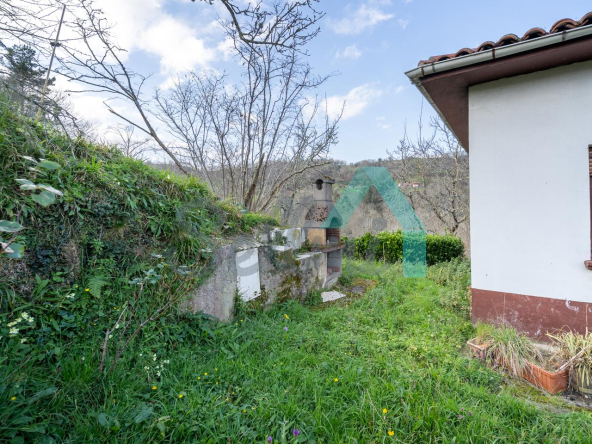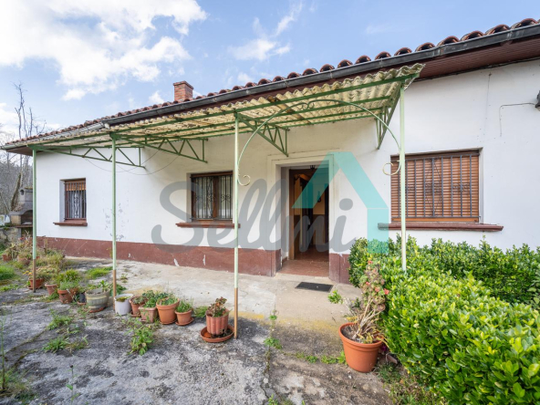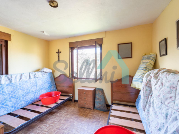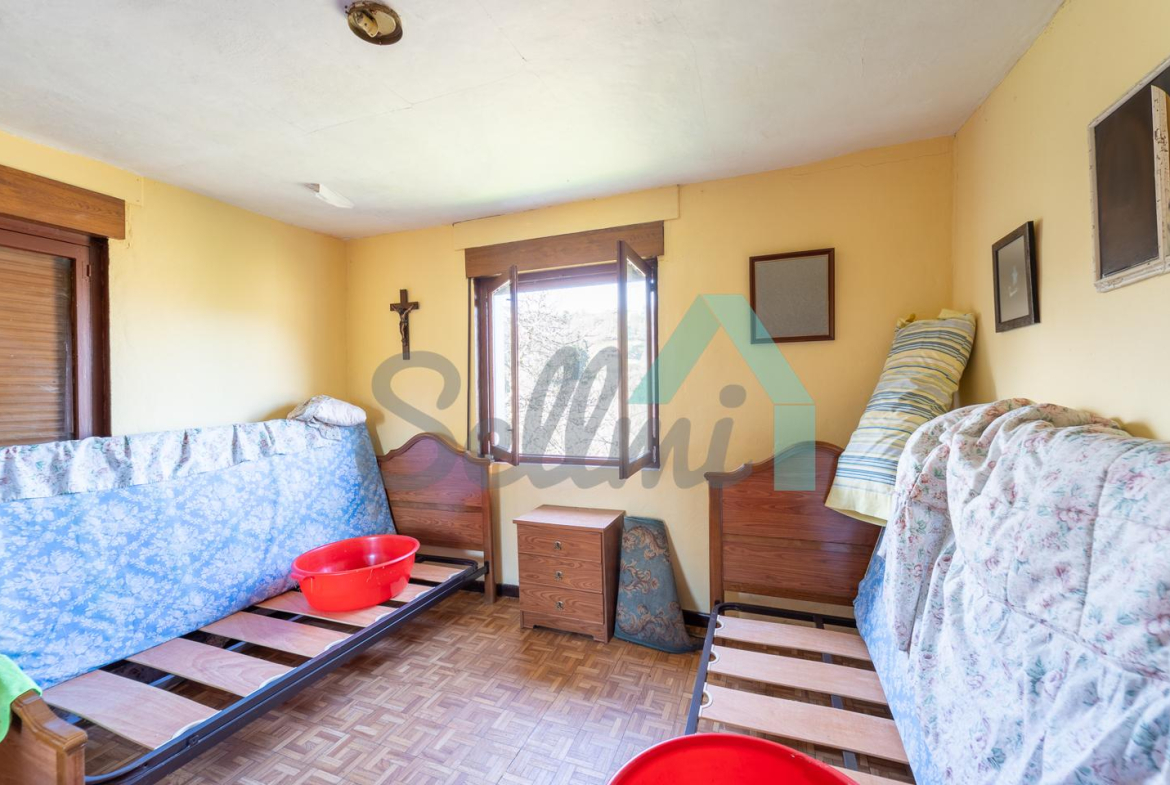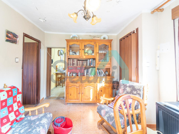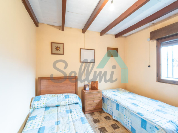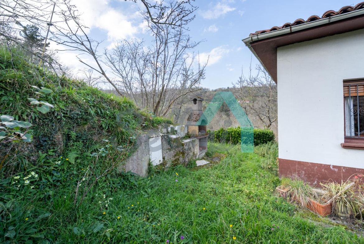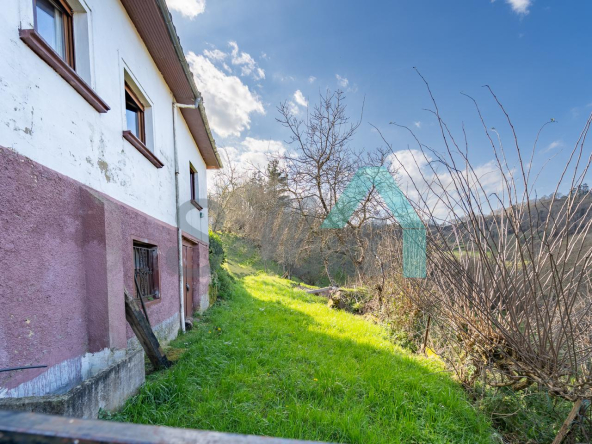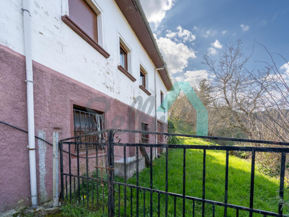 La vivienda, construida en 1941 y que necesita reforma, tiene una superficie de 184 m2 distribuidos en tres plantas. Planta principal, a la que se accede desde la calle, cuenta con salón, cocina, cuatro habitaciones y un baño. Bajo cubierta destinado a trastero. Planta baja, a la que se accede desde el terreno con un acceso desde el este al garaje y otro al norte a un espacio destinado a taller. La parte de abajo es de piedra, pero la casa es de ladrillo. El tejado se reparó en noviembre de 2024. Hubo una gotera y se movieron algunas tejas, pero no se cambió nada más. Ventanas de climalit en todas las habitaciones, menos tres ventanas que siguen siendo las antiguas de madera. Suelos de gres. Luz y agua datos de alta. El agua es de un manantial propio cuyo depósito se encuentra en una finca que hay más arriba. La fachada principal está orientada al sur. Se ubica sobre una parcela de 601 m2. En la parte baja del terreno está el pozo negro.