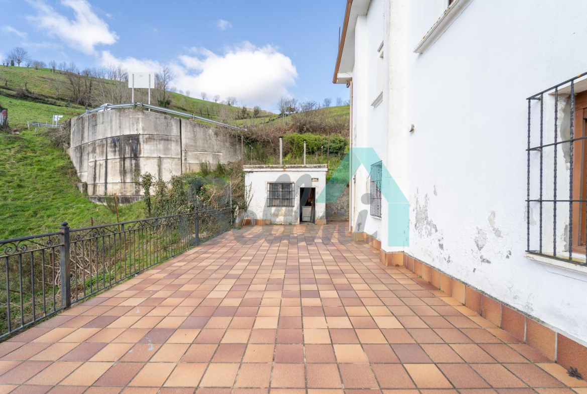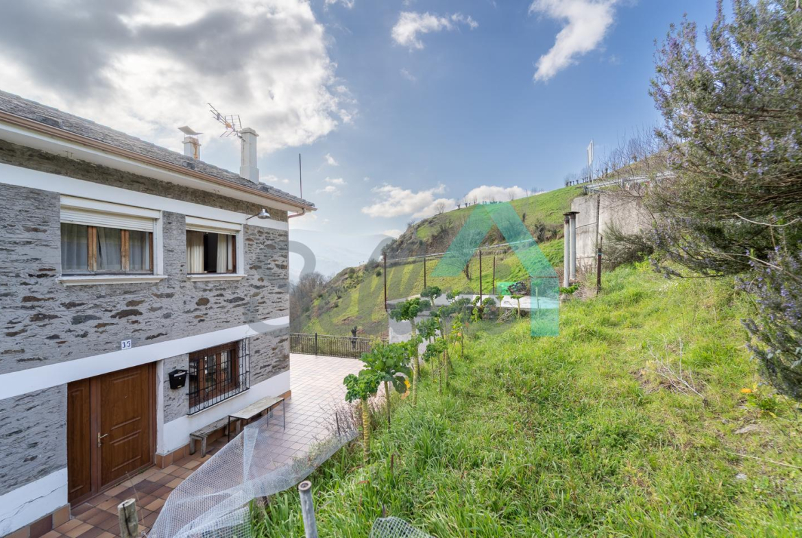 En el exterior cuenta con una amplia terraza, aparcamiento exterior, un almacén, dos huertas y una parcela grande.