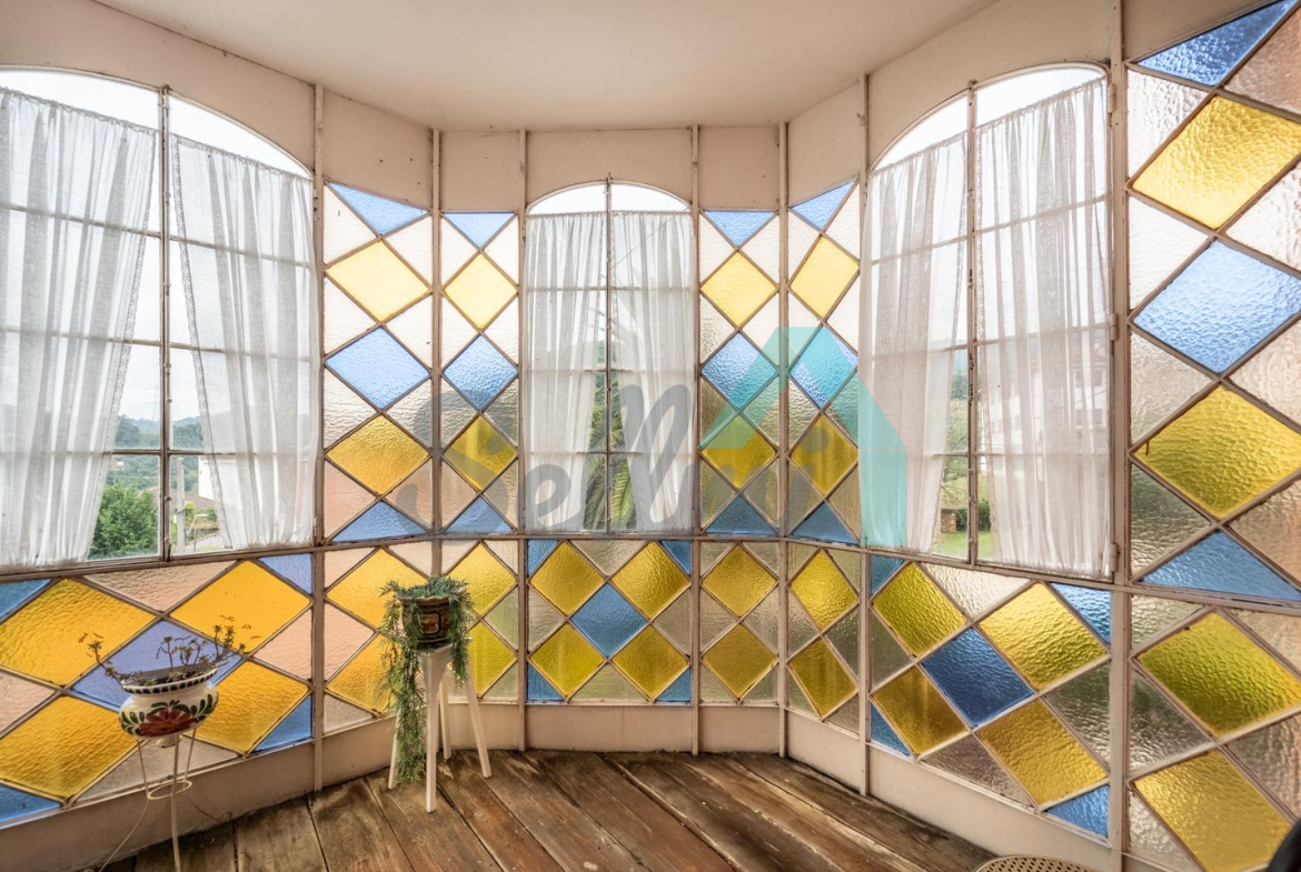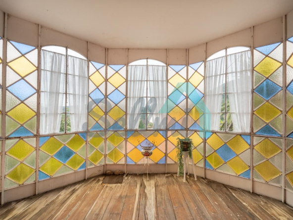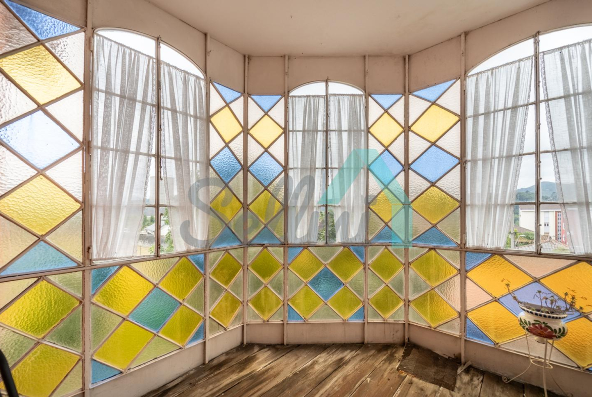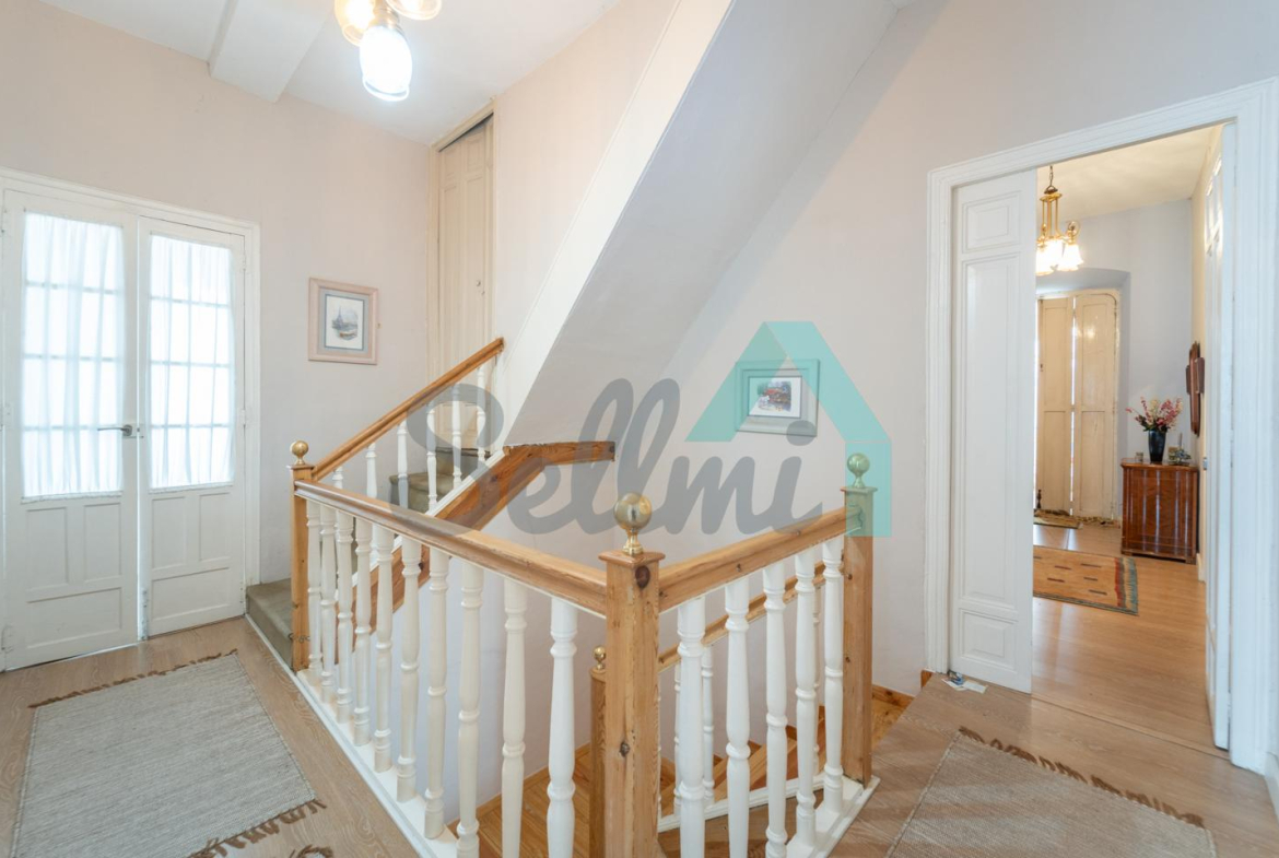 Planta alta: distribuidor, galería con cristalera de hierro, seis habitaciones y un baño completo.