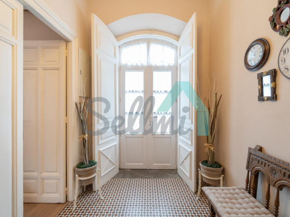 Dispone de suelos de tarima y gres, ventanas de madera, balcones, techos altos, etc.