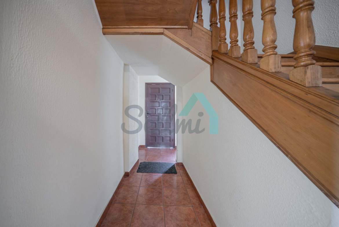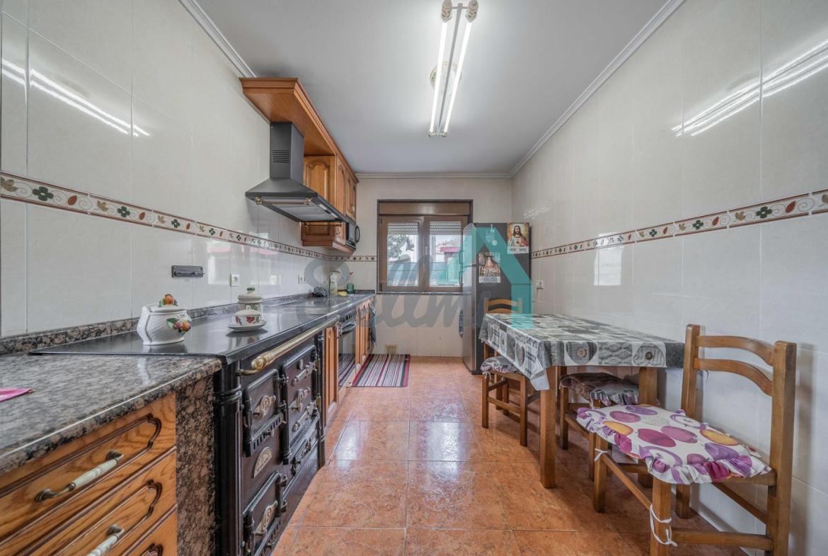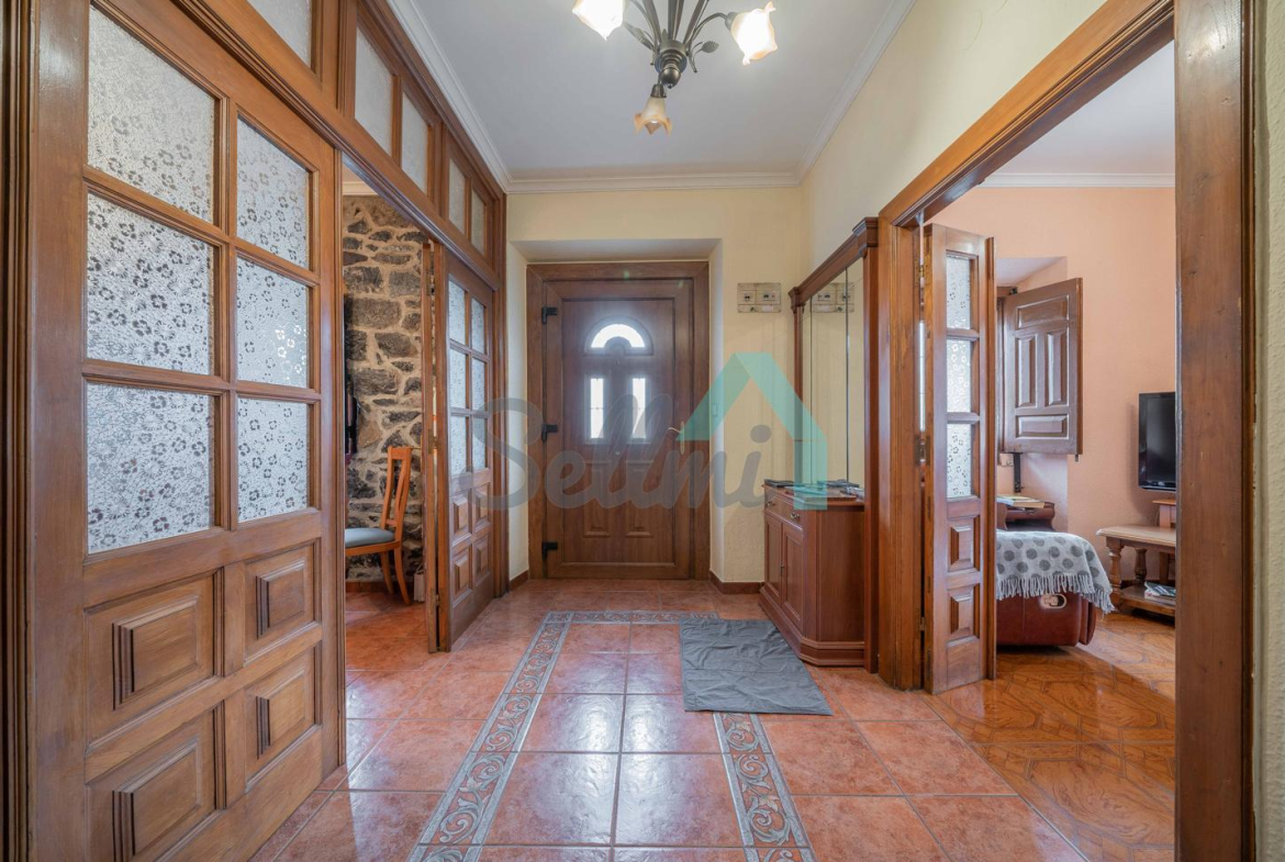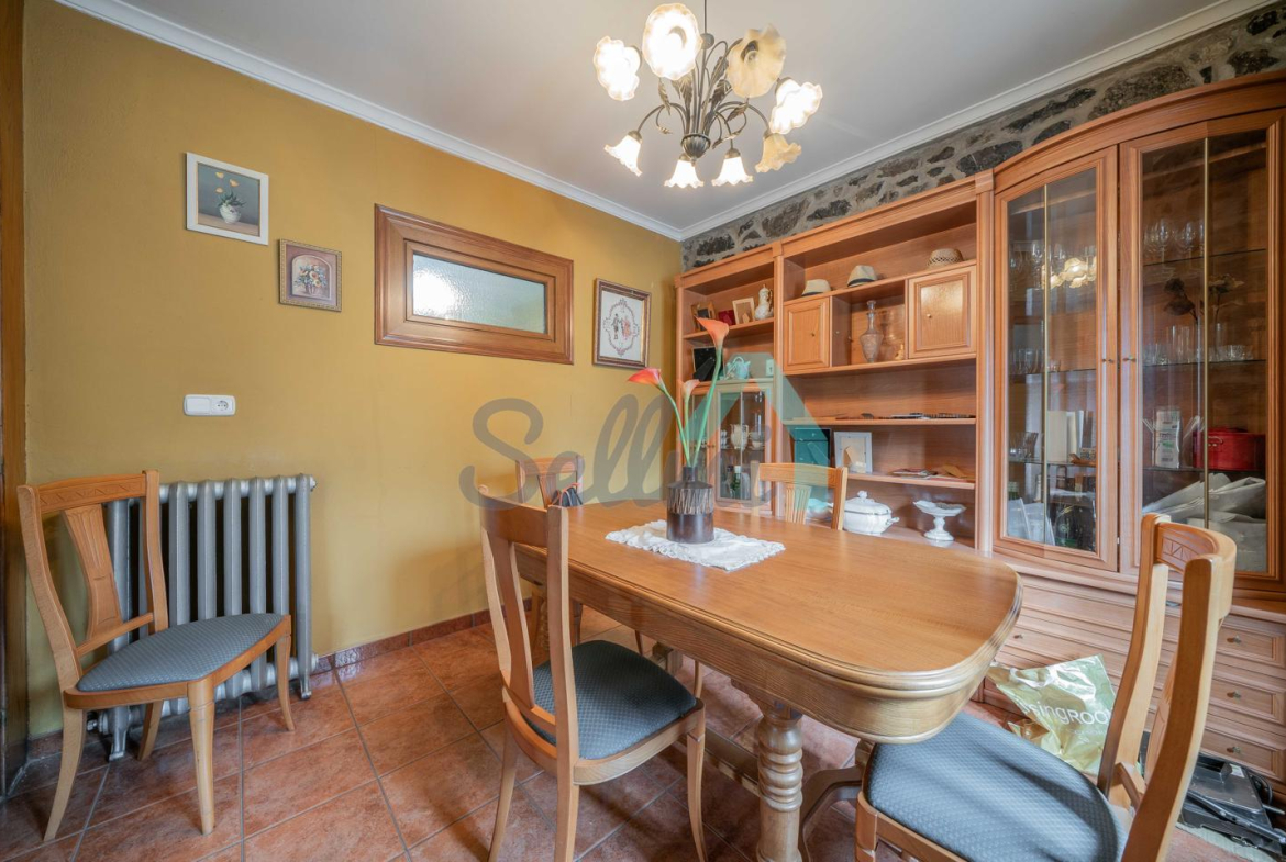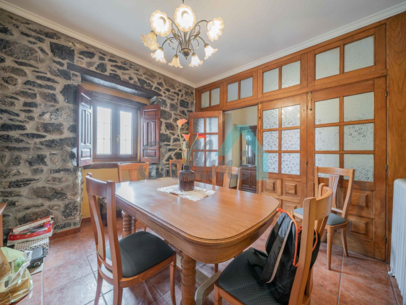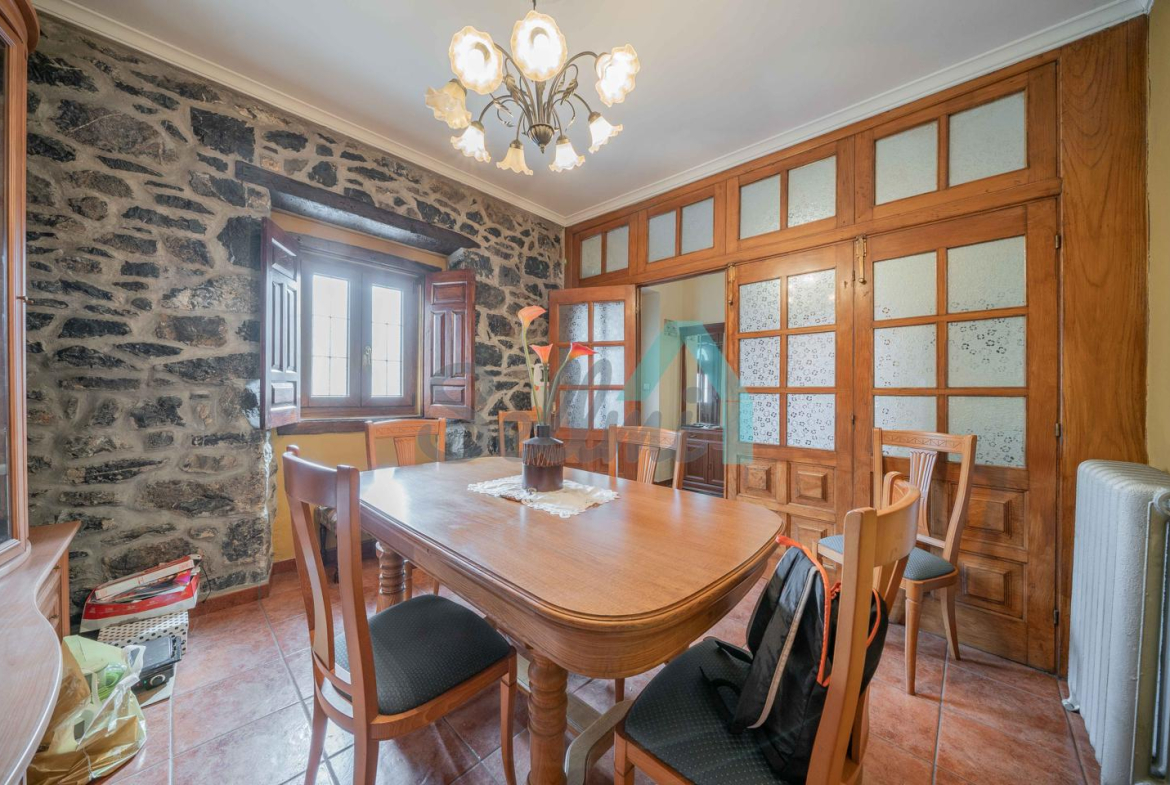 Dispone de suelos de parquet y gres, ventanas de madera, armarios empotrados, calefacción y agua caliente por caldera de gasoil y de leña, radiadores de hierro fundido, puerta de seguridad, etc. El tejado se reformó en 2018.