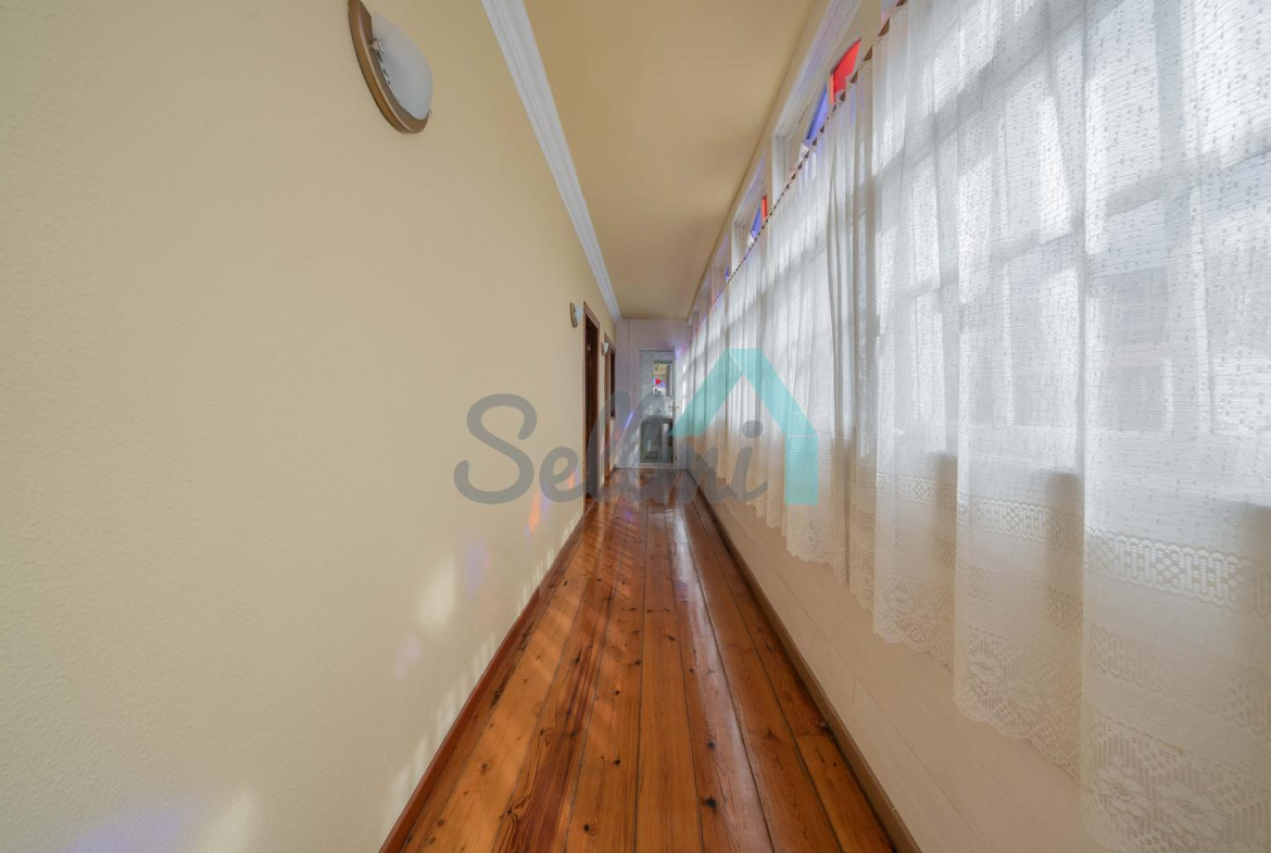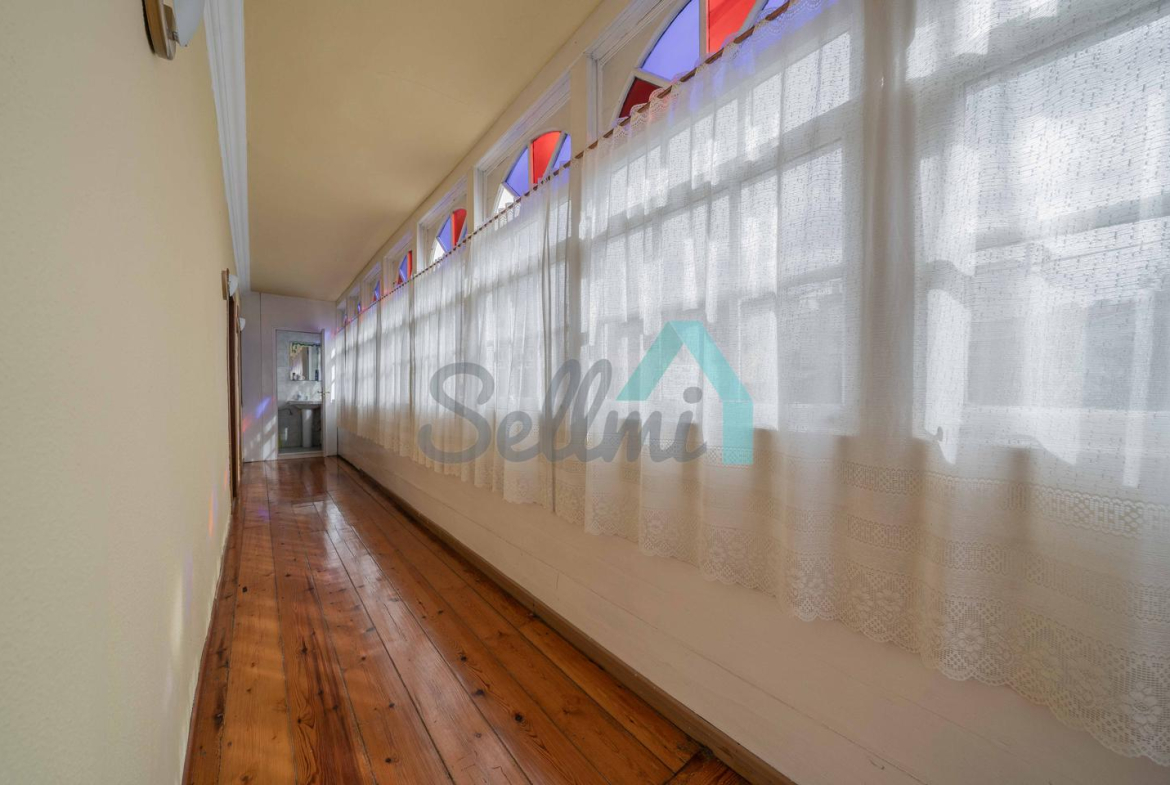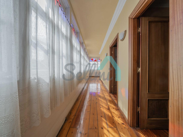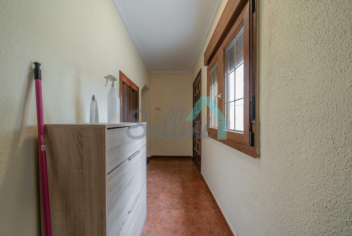 Planta alta: gran distribuidor que comunica con la galería, cuatro habitaciones (tres de ellas con salida a la galería), un baño completo y dos aseos.
