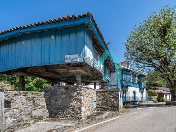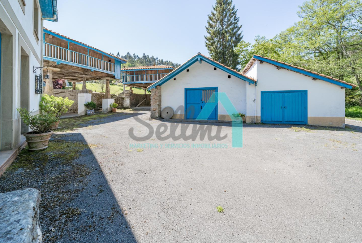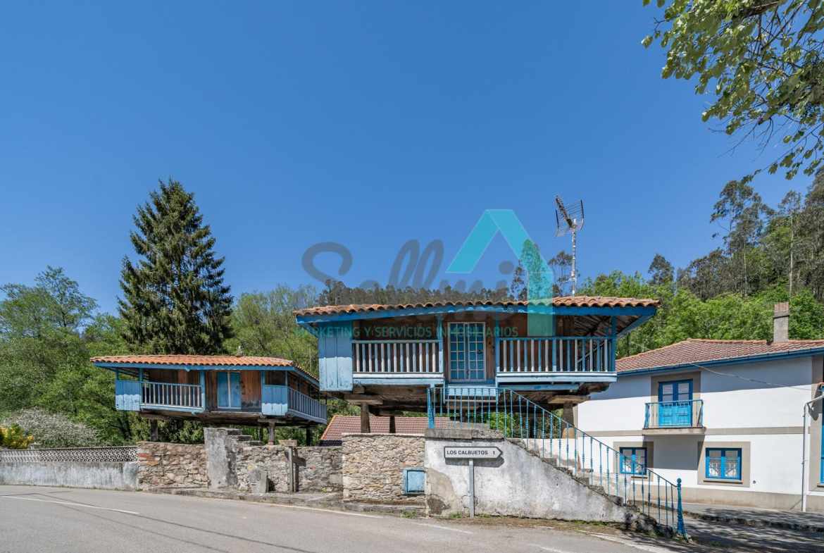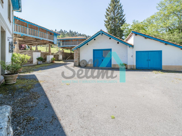 El conjunto está compuesto por casa, dos hórreos y tres grandes garajes, sumando en total 576 m² construidos.