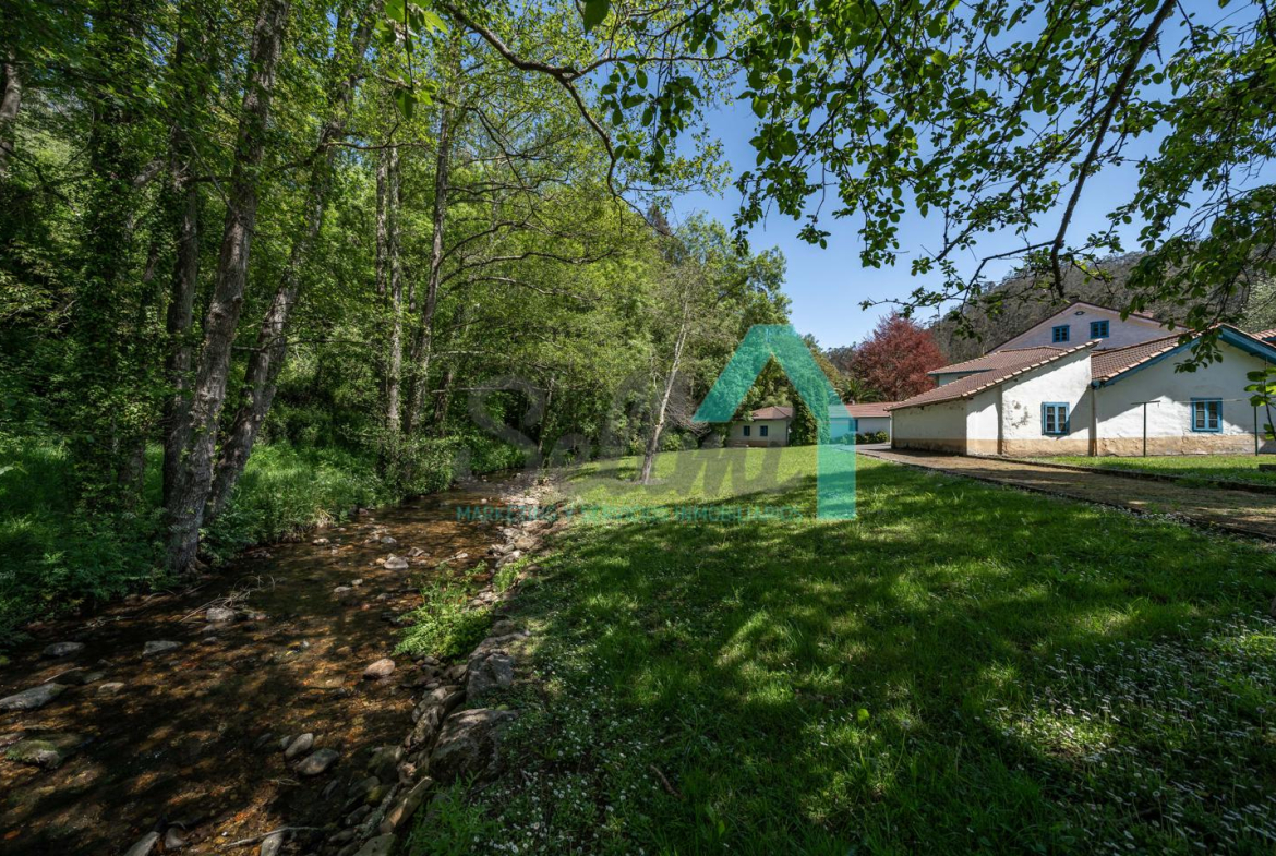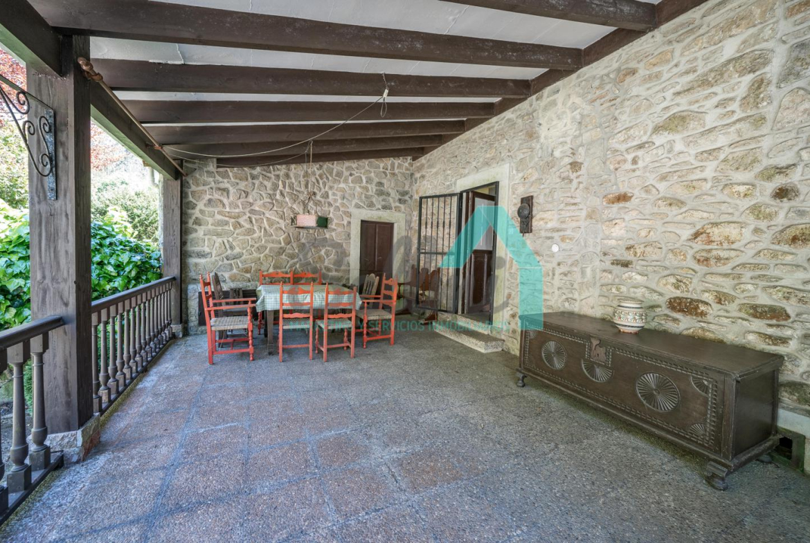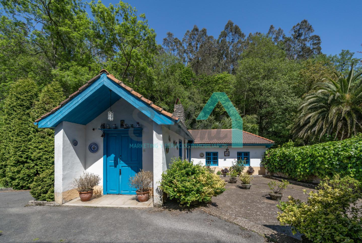 En el exterior cuenta con jardín privado, amplio porche y “La casa del Forno”, con horno artesanal de leña. Por la parcela transcurre el río La Ferrería (río truchero), de poco caudal y agradable sonar, que desemboca en la playa de Santa María del Mar.