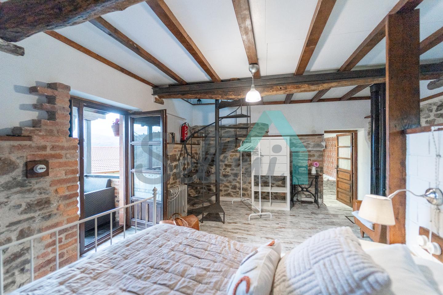 Dispone de suelos de tarima, ventanas de madera, escalera interior de hierro, pueta de seguridad, etc.